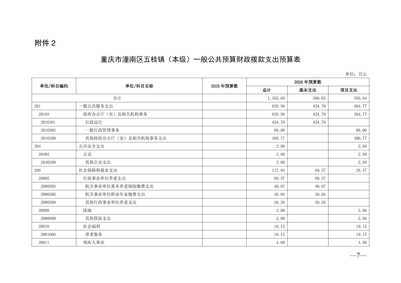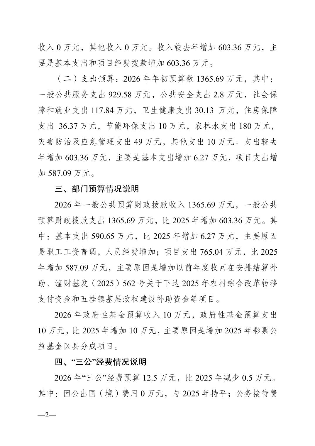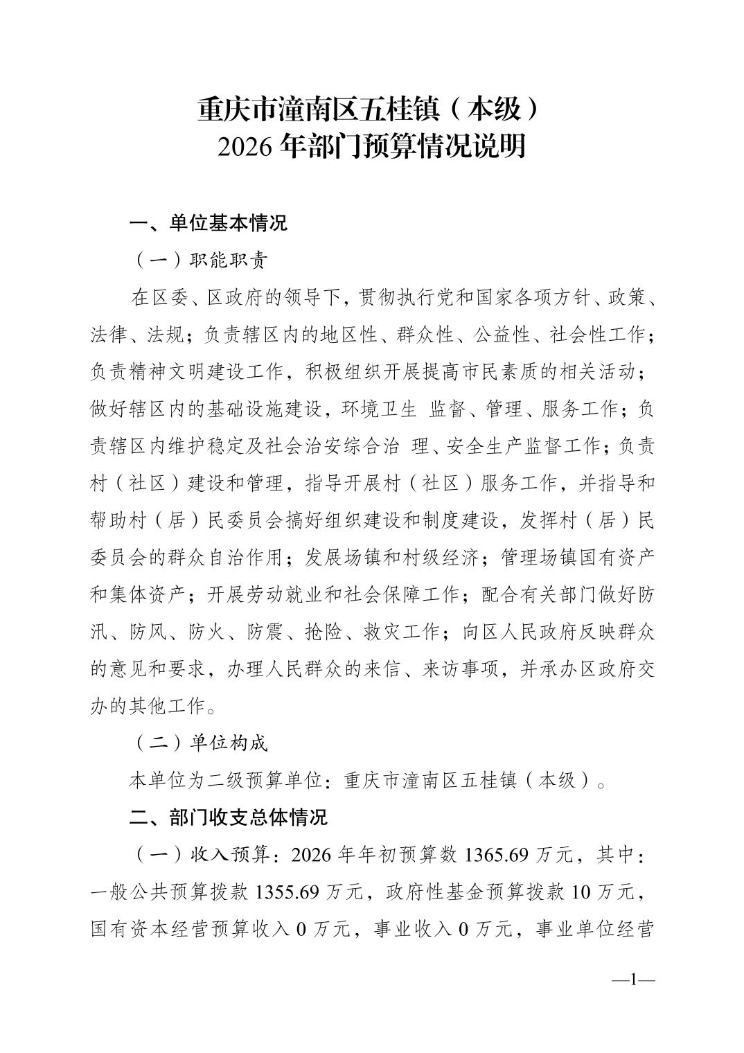 重庆市潼南区五桂镇(本级)2026年部门预算情况说明