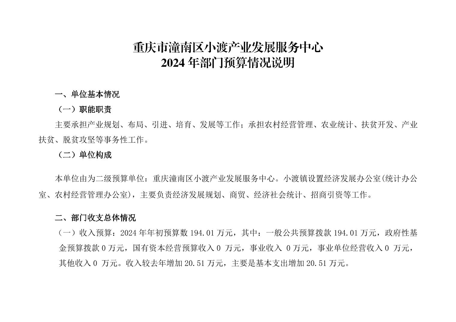 重庆市潼南区小渡产业发展服务中心2024年部门财政预算公开