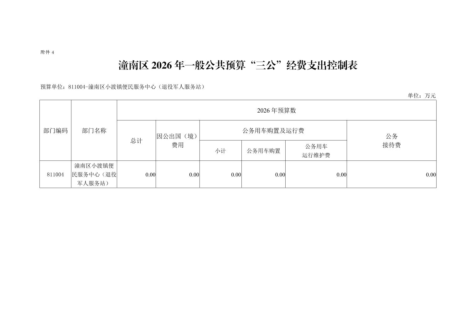 重庆市潼南区小渡镇便民服务中心(退伍军人服务站)2026财政预算公开