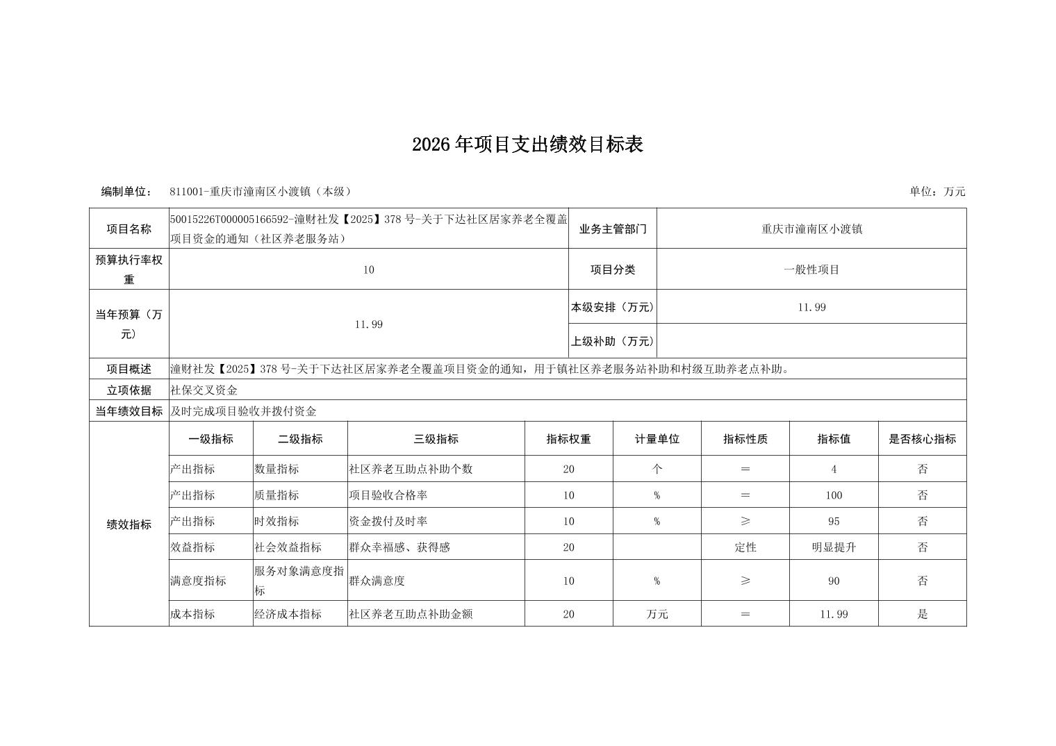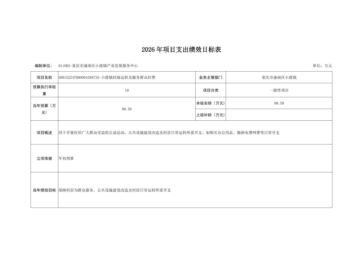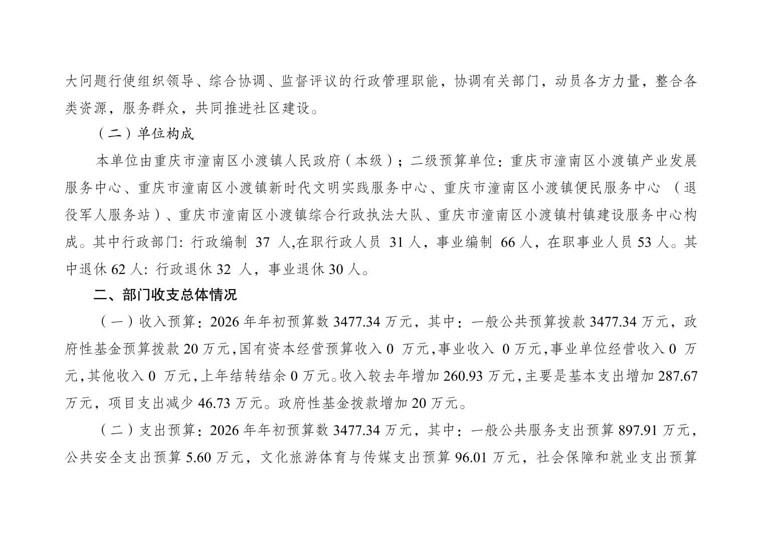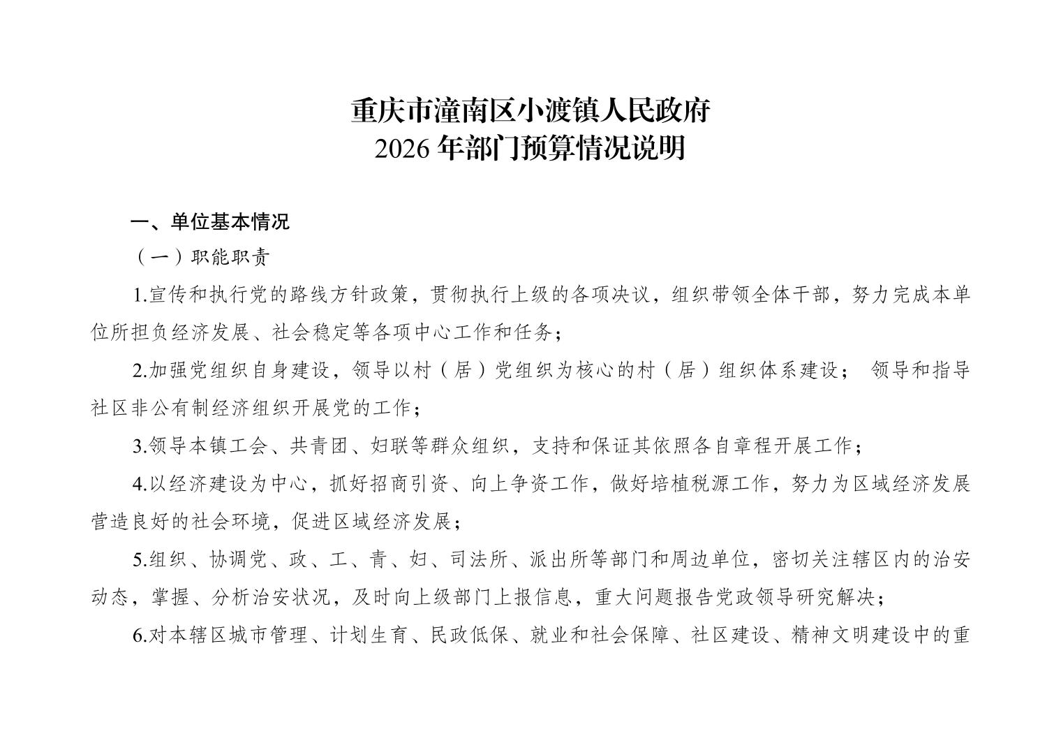 重庆市潼南区小渡镇人民政府2026财政预算公开