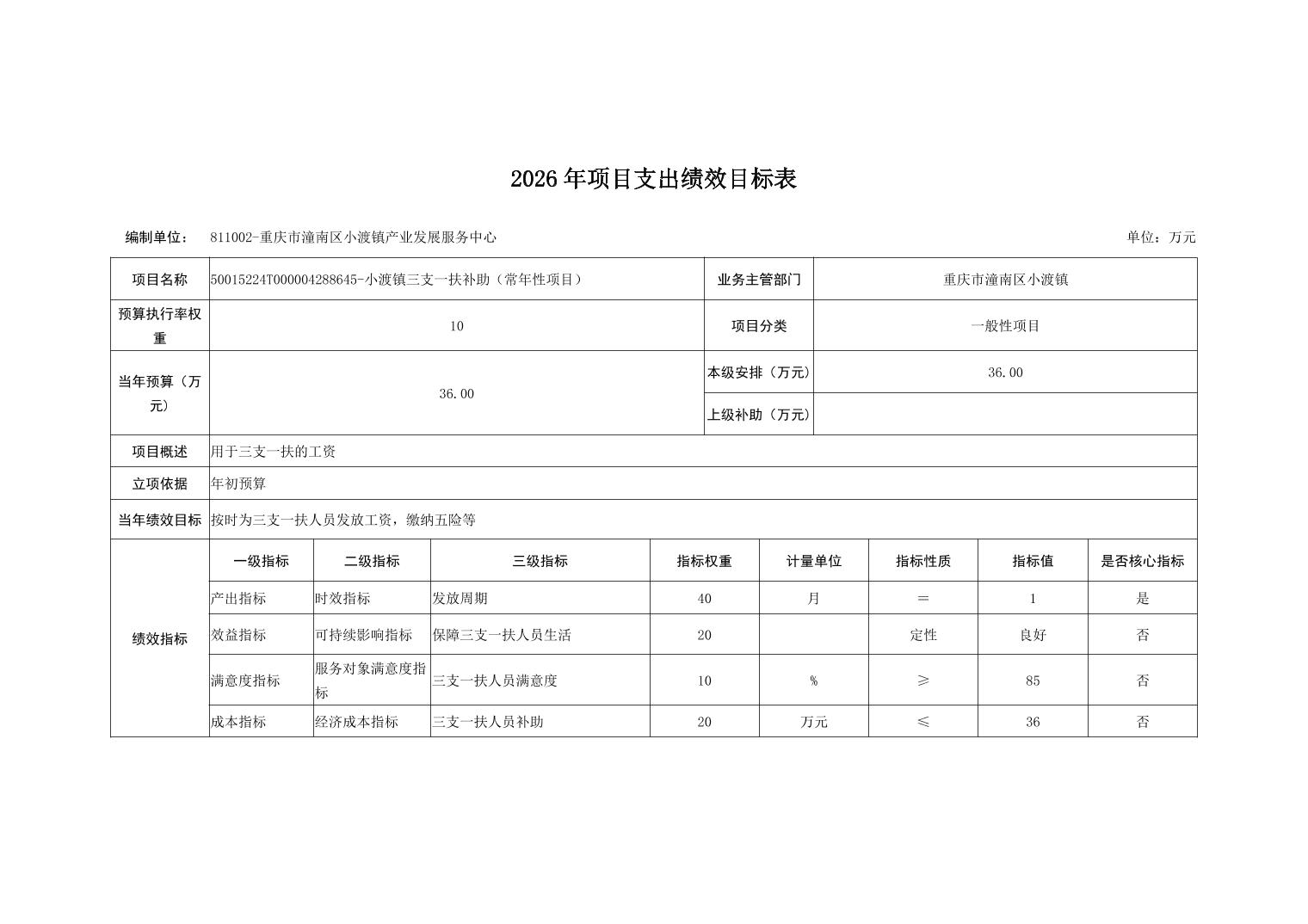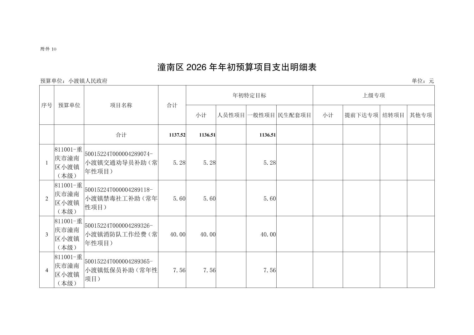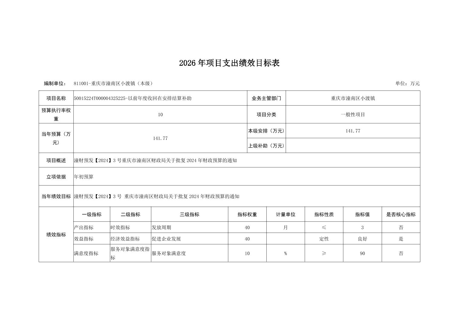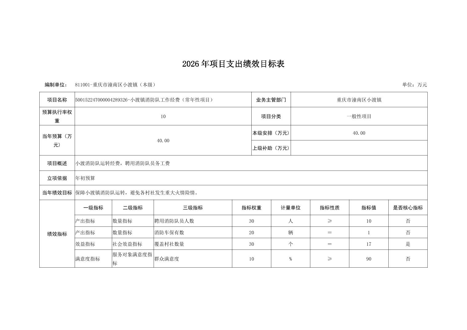 重庆市潼南区小渡镇人民政府2026财政预算公开