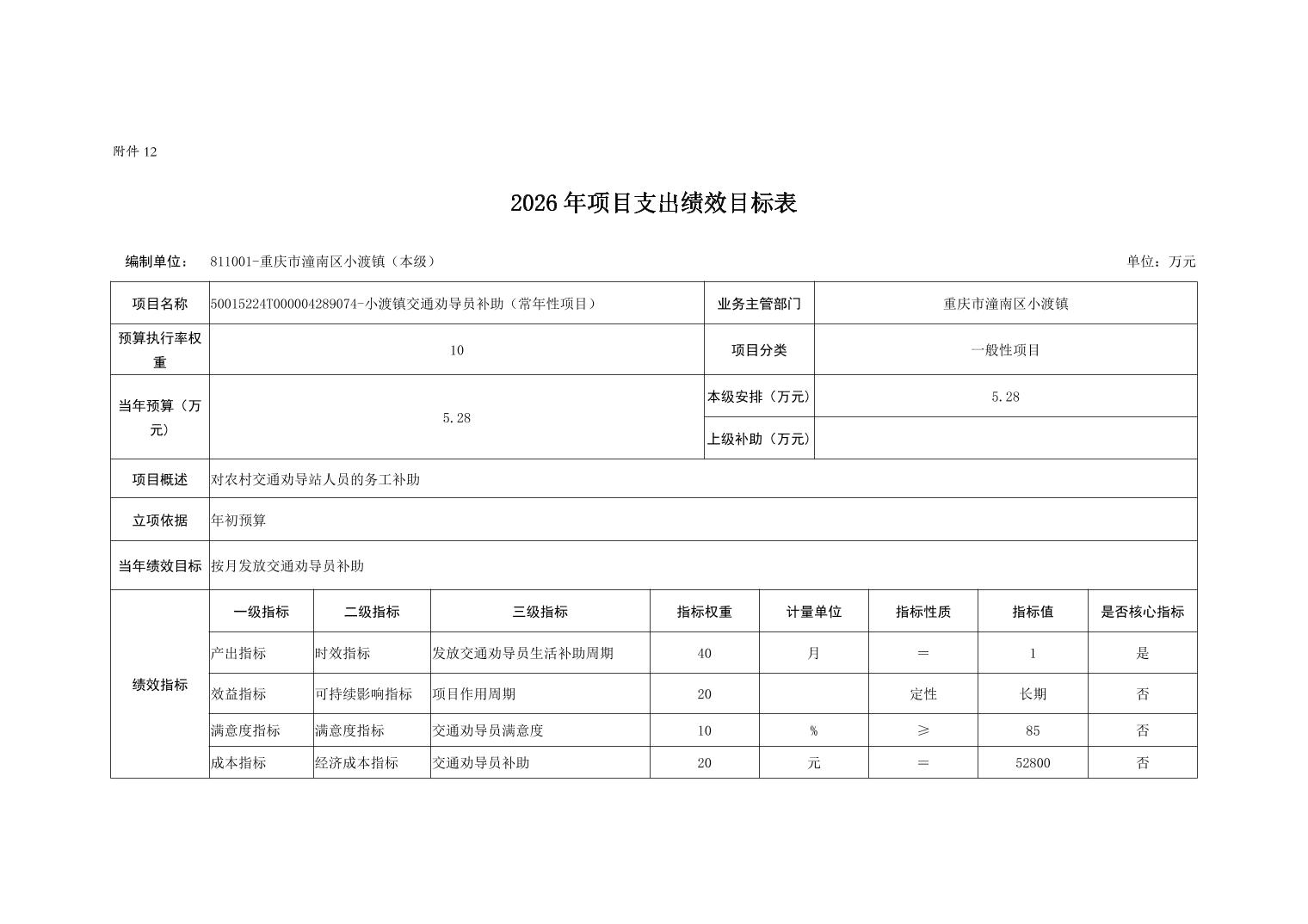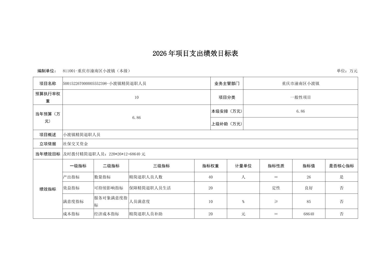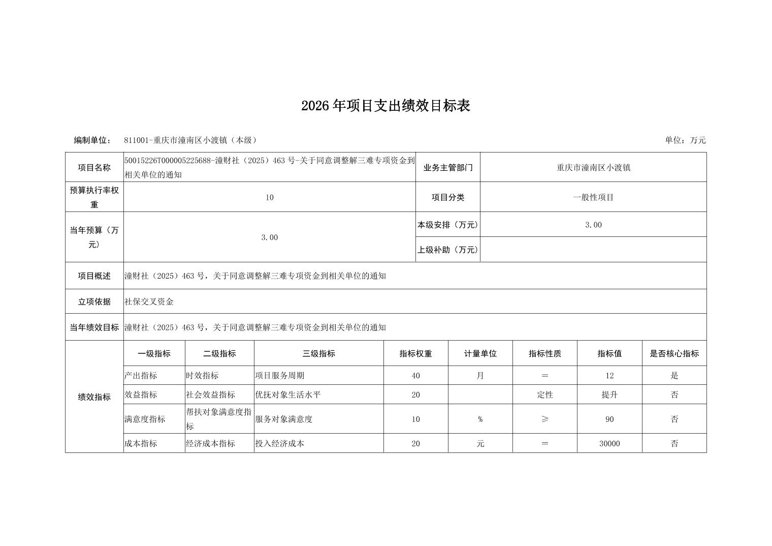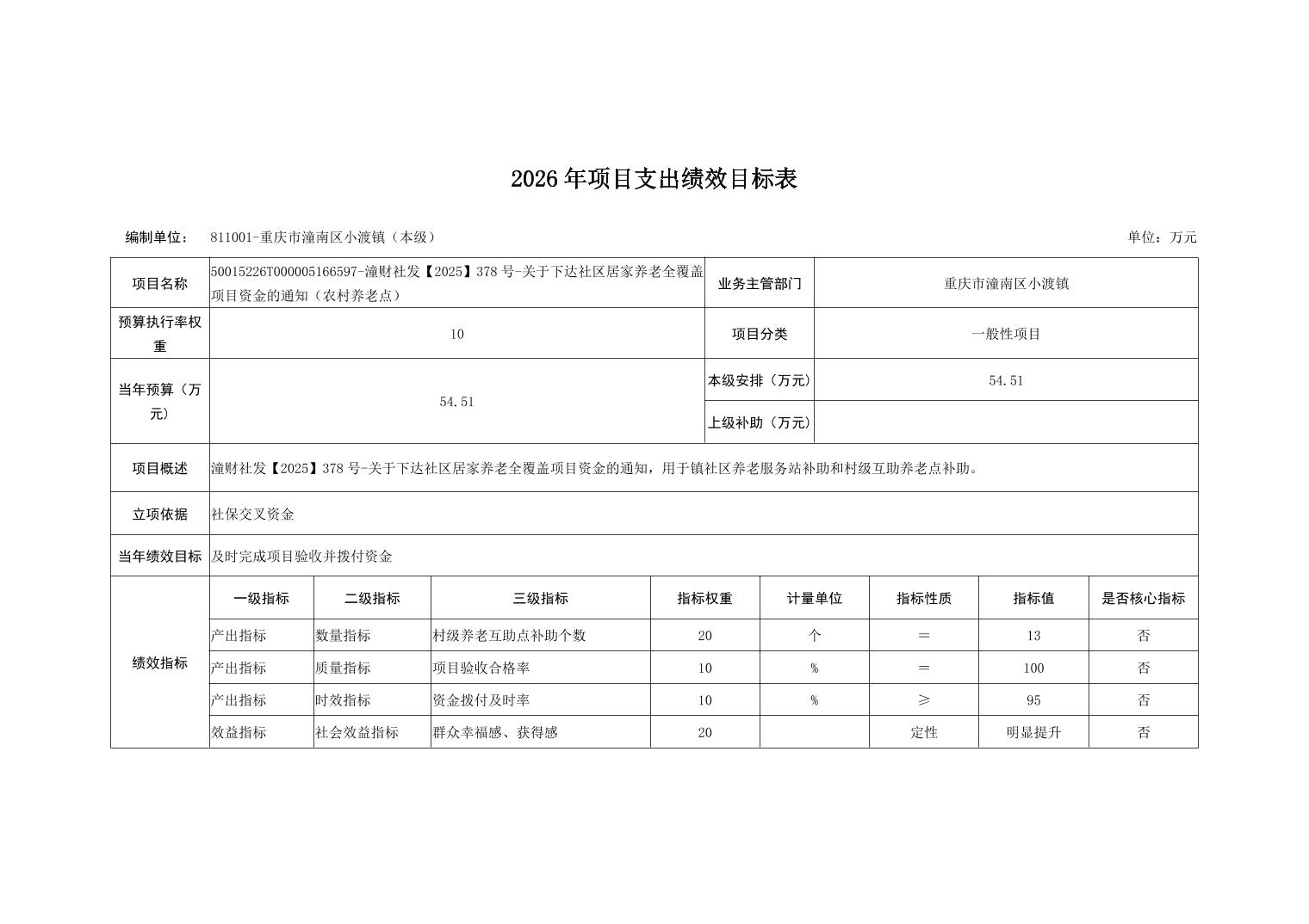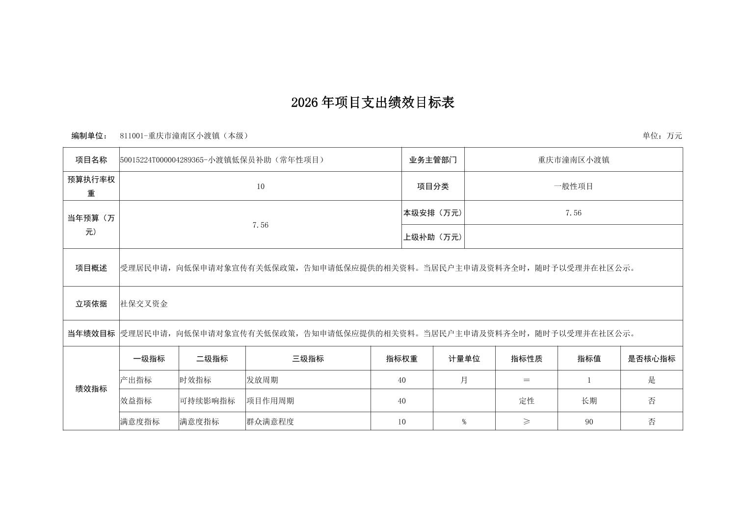 重庆市潼南区小渡镇人民政府2026财政预算公开