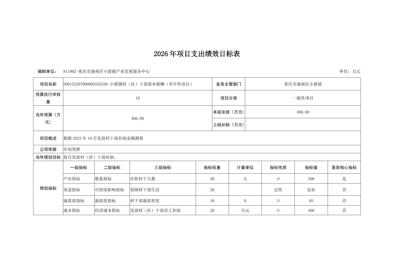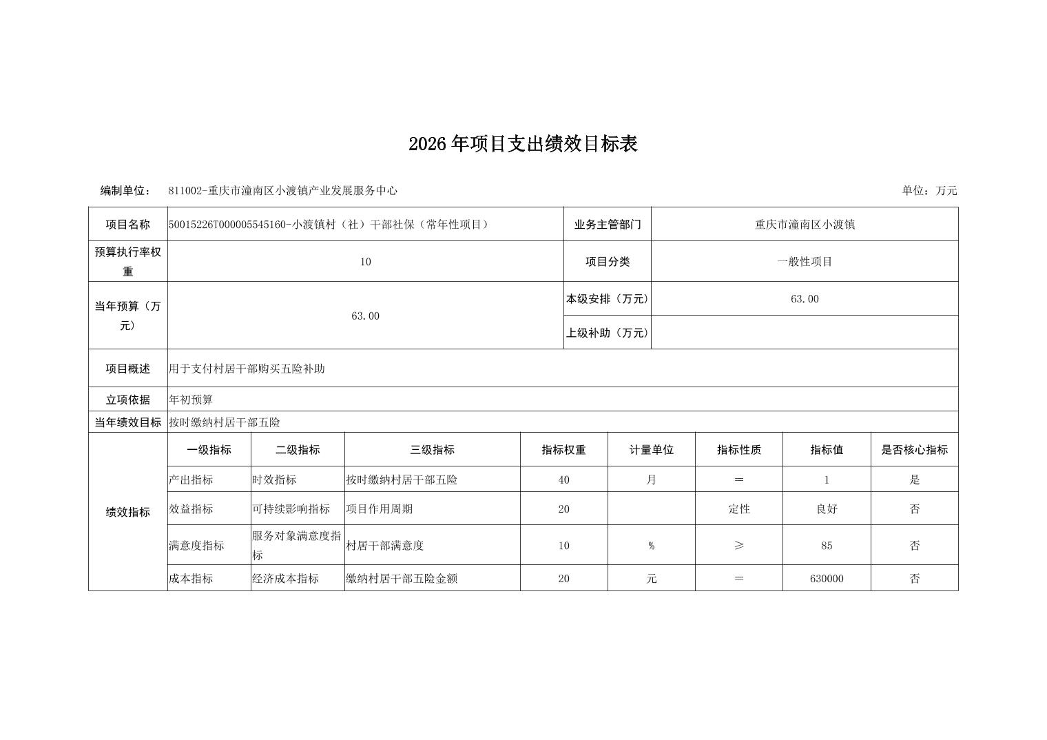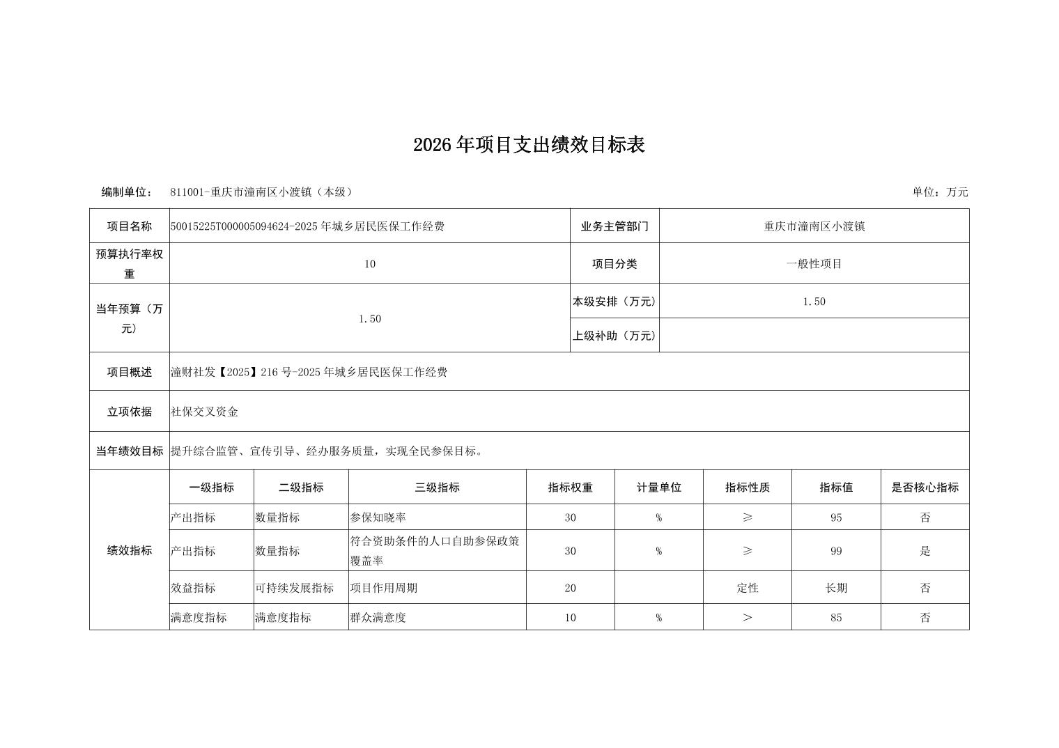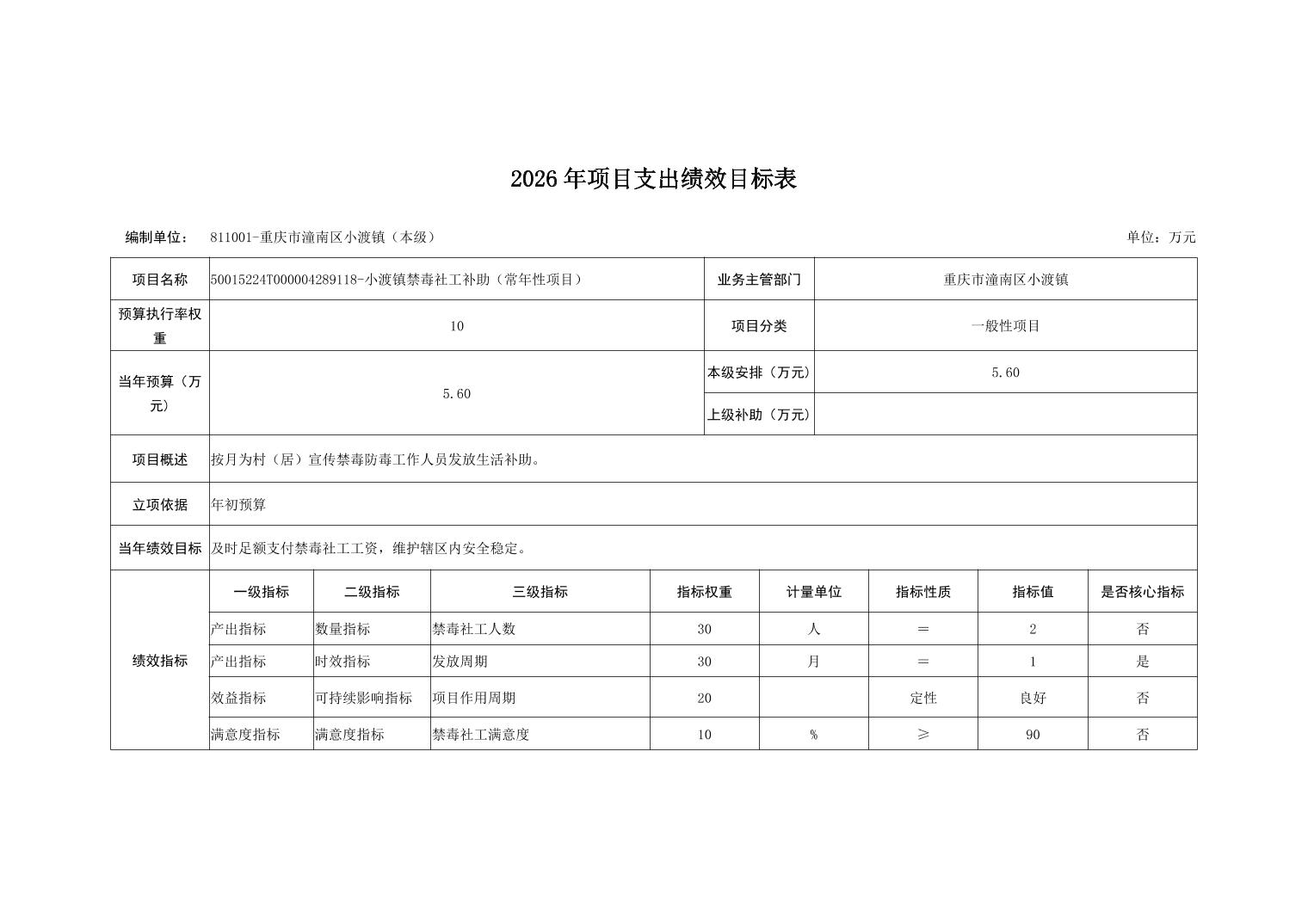 重庆市潼南区小渡镇人民政府2026财政预算公开