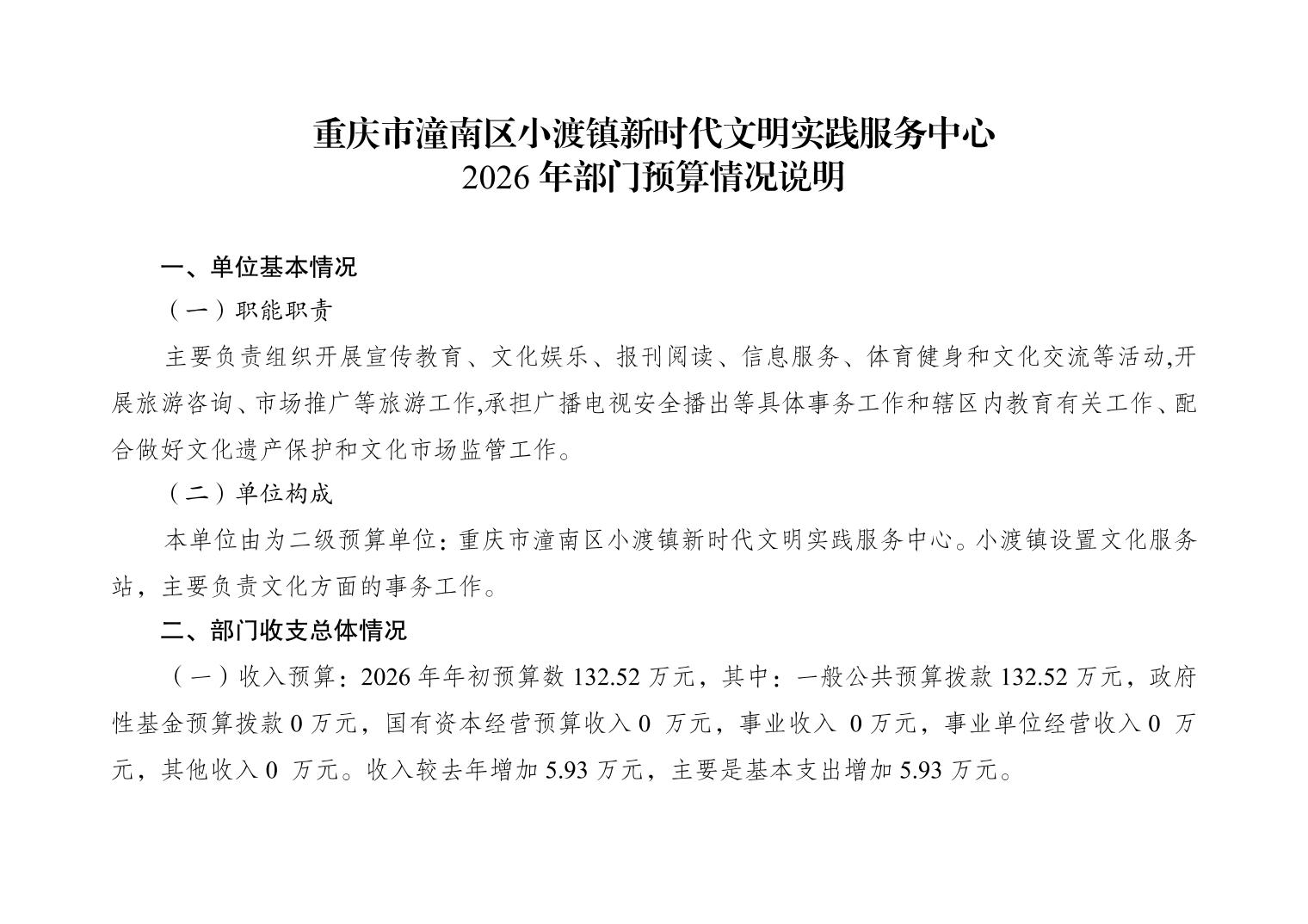 重庆市潼南区小渡镇新时代文明实践服务中心2026财政公开预算