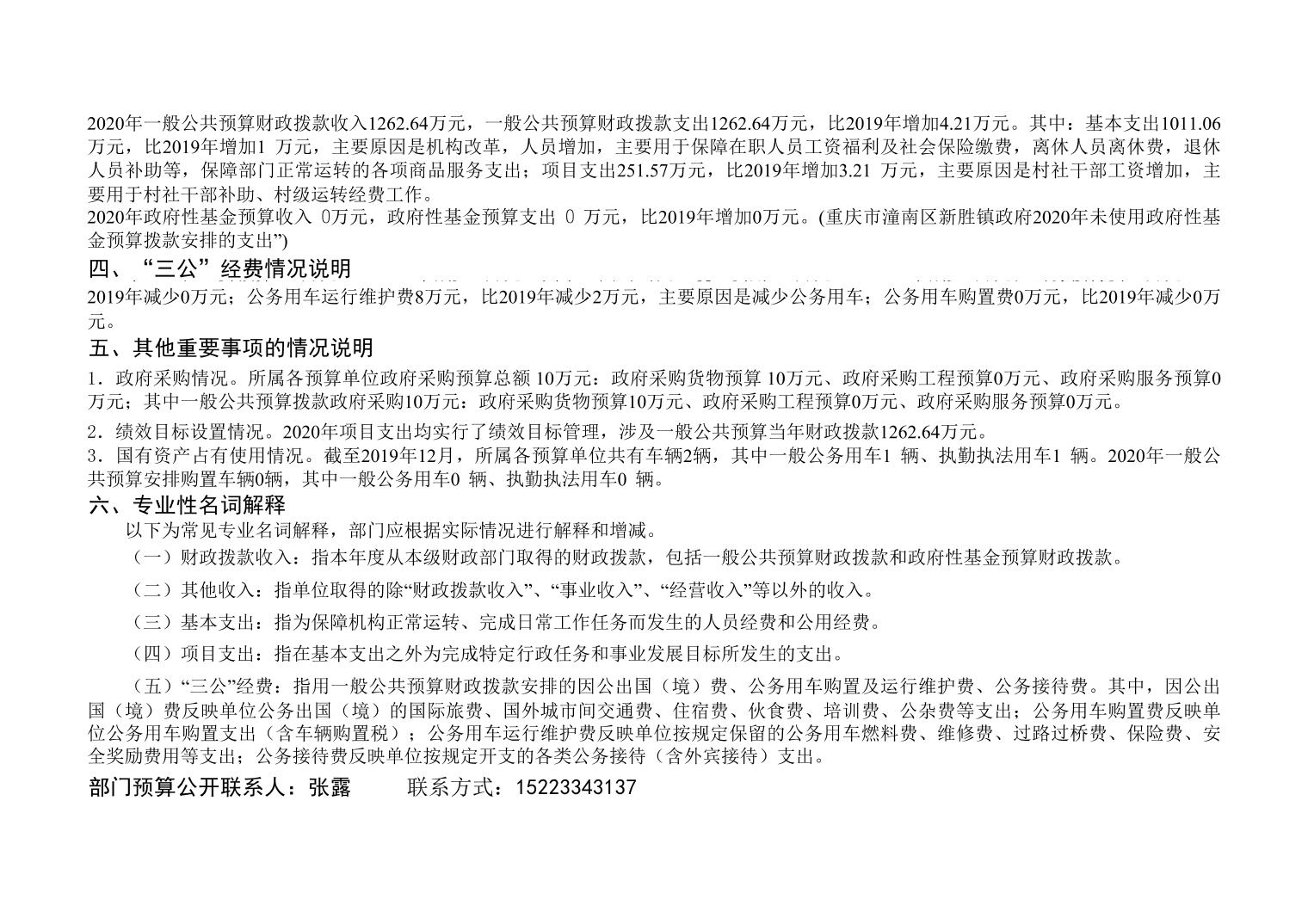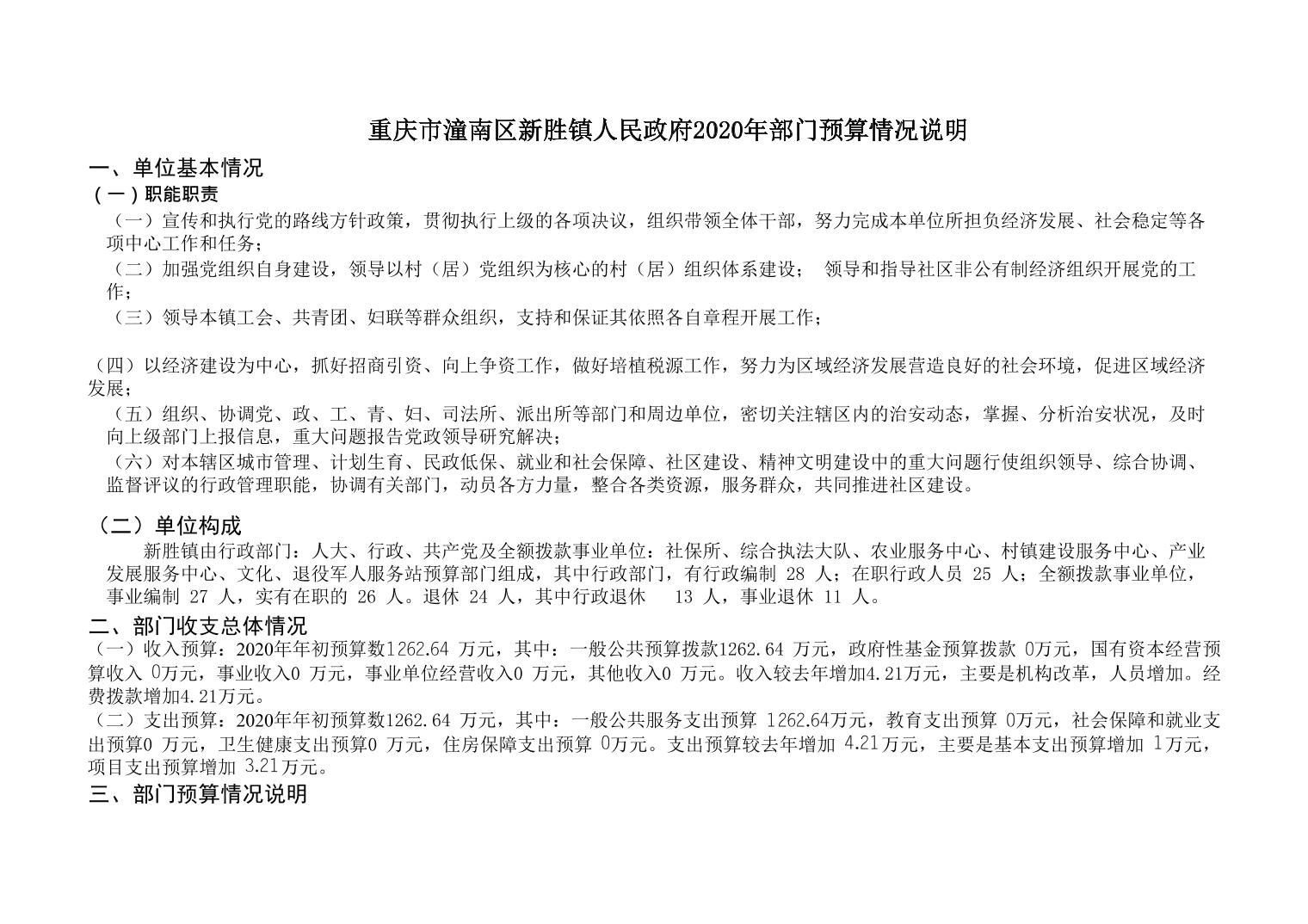 重庆市潼南区新胜镇人民政府2020年部门预算公开