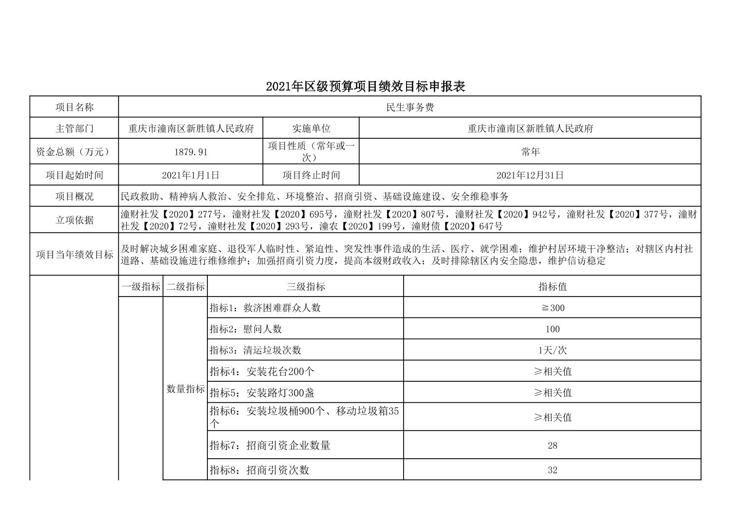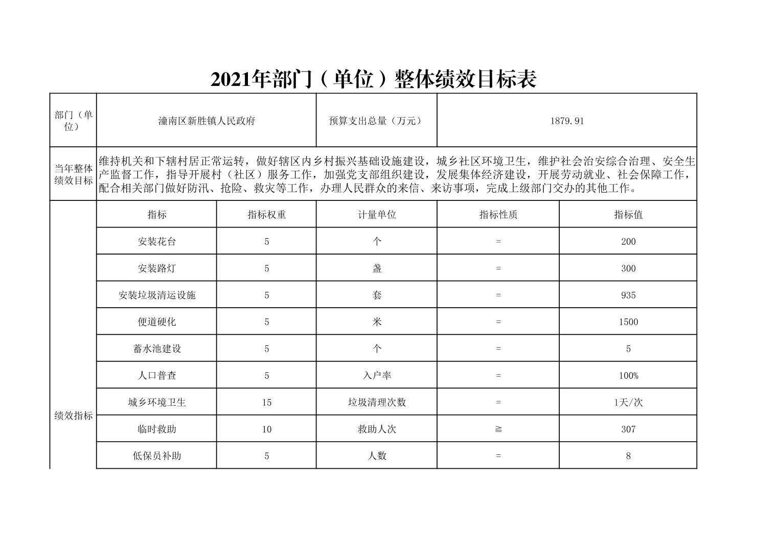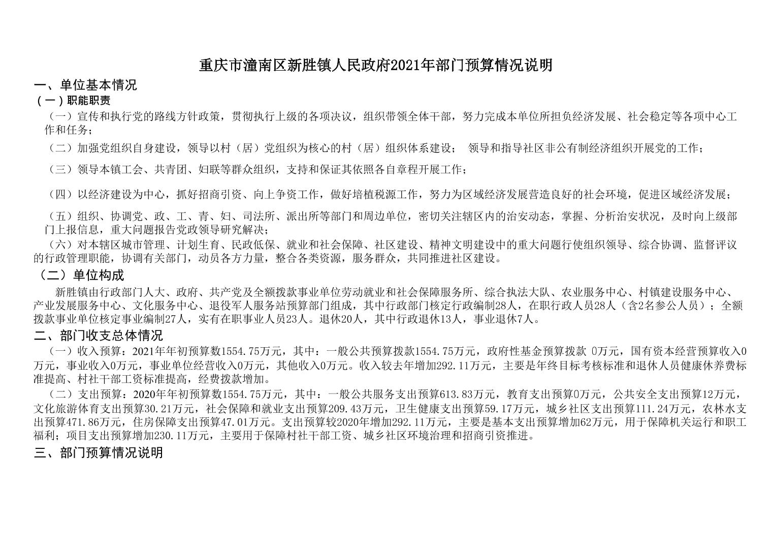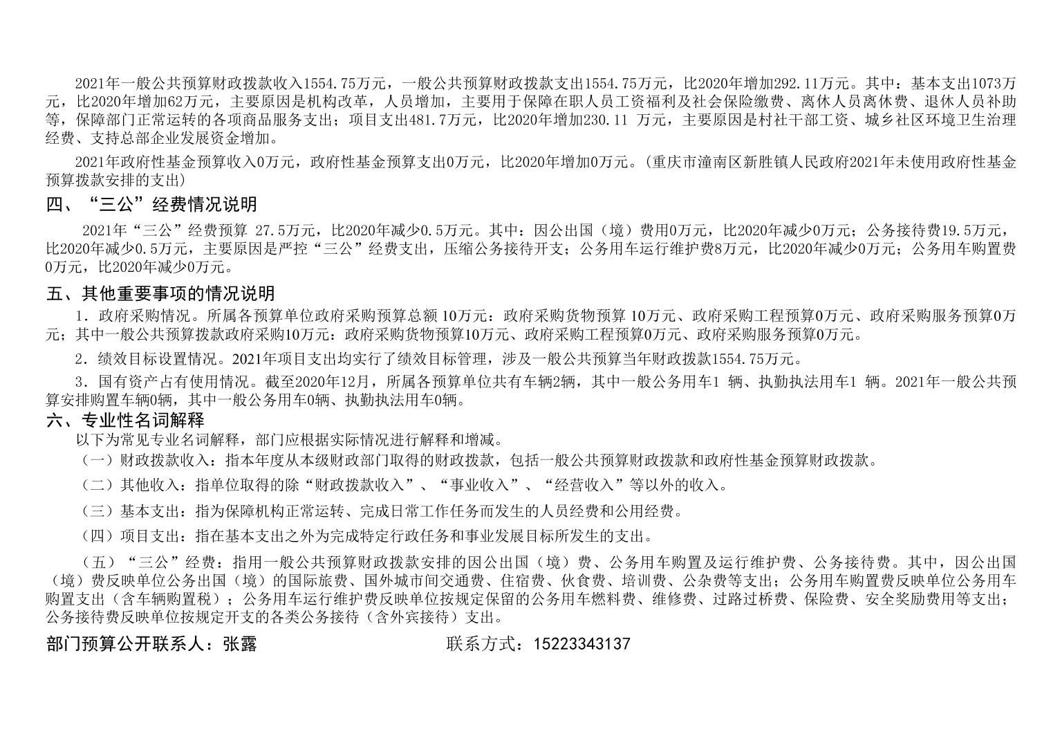 重庆市潼南区新胜镇人民政府2021年部门预算公开