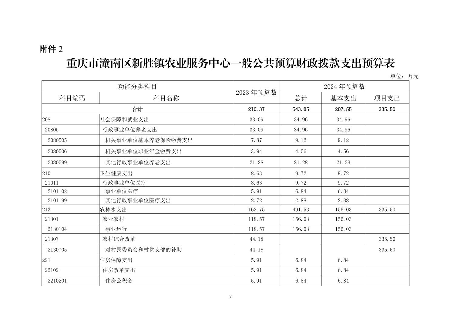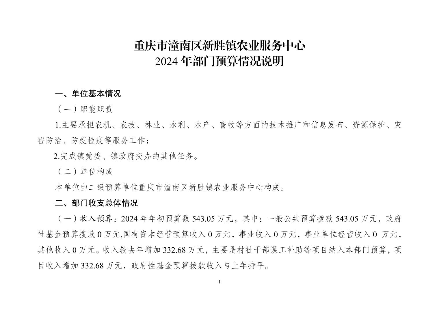 重庆市潼南区新胜镇农业服务中心2024年部门预算公开