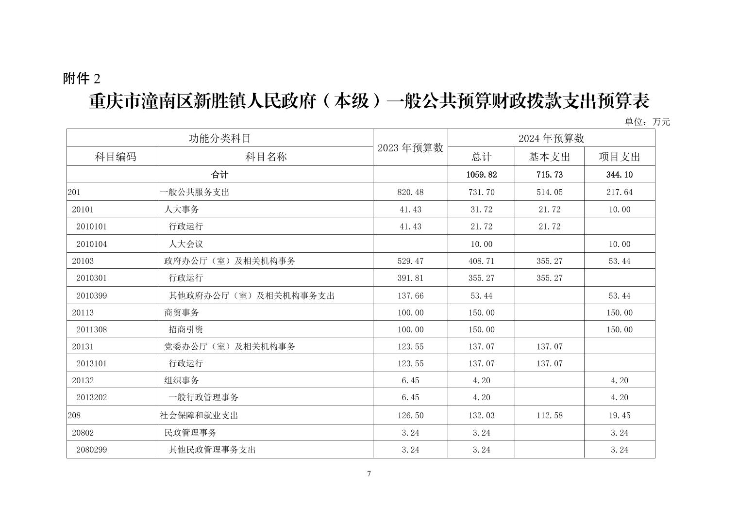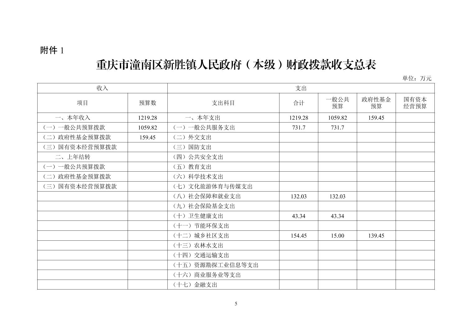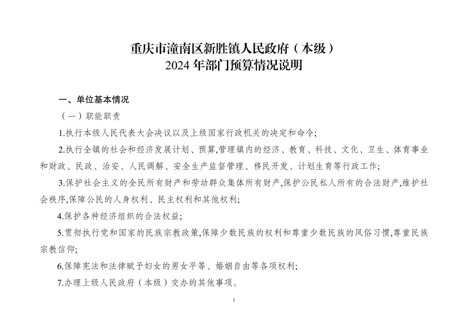 重庆市潼南区新胜镇人民政府(本级)2024年部门预算公开