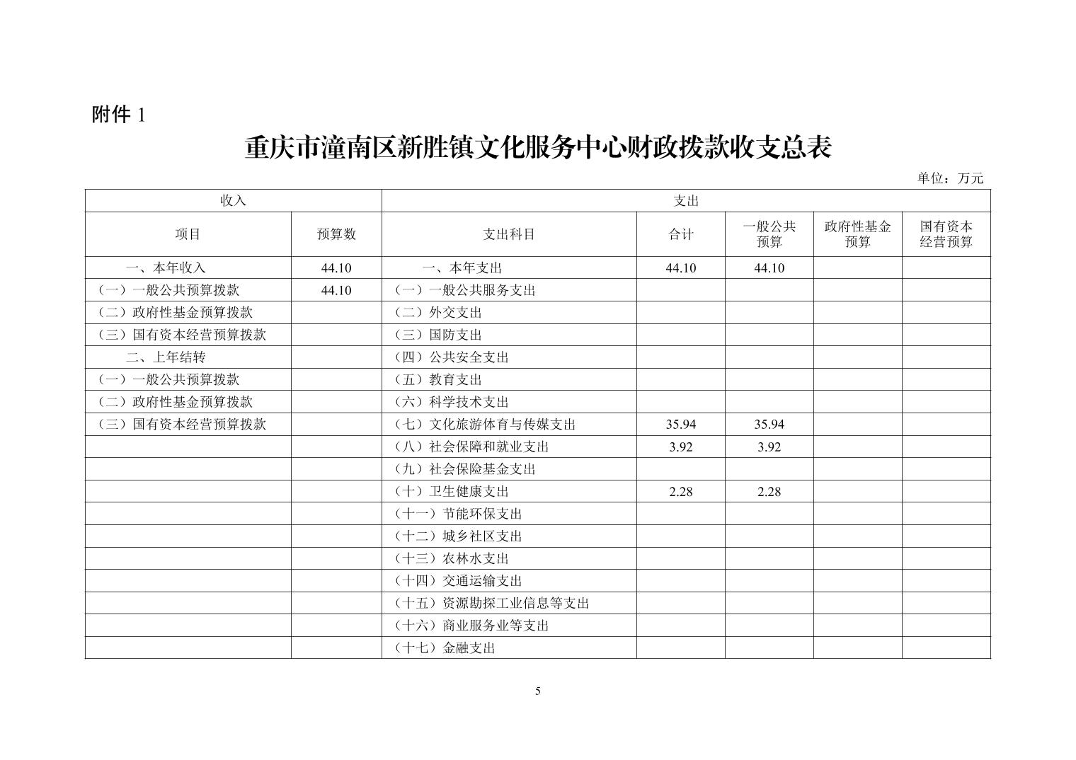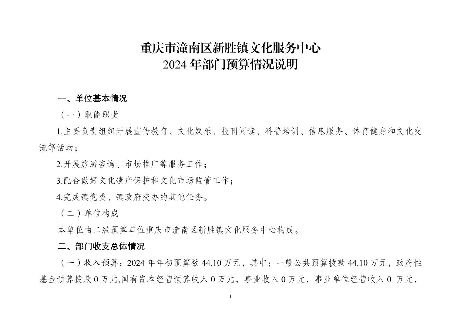重庆市潼南区新胜镇文化服务中心2024年部门预算公开