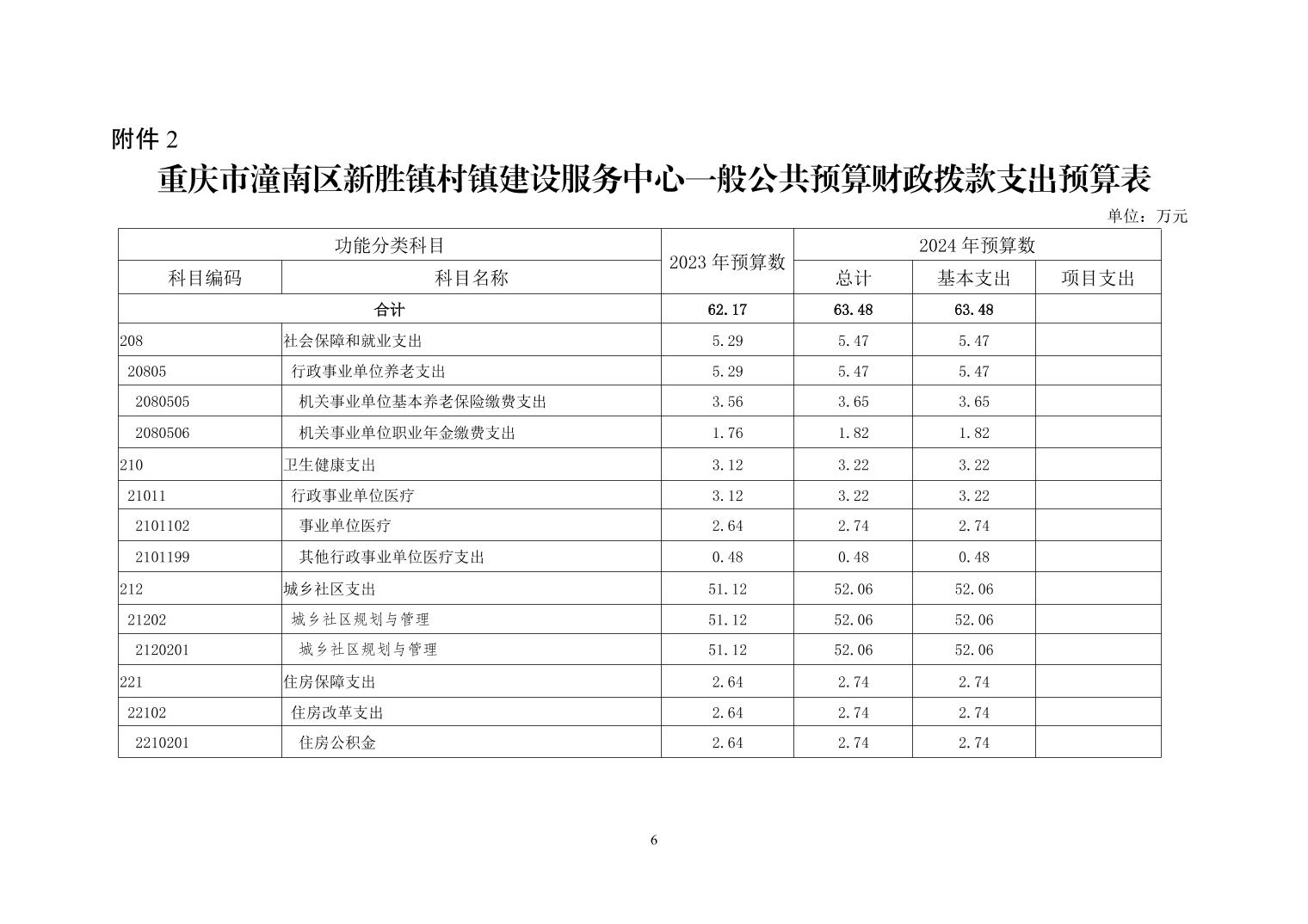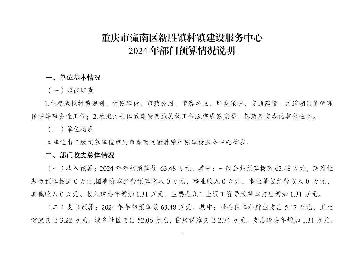 重庆市潼南区新胜镇村镇建设服务中心2024年部门预算公开