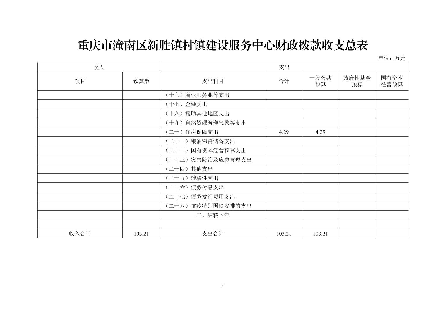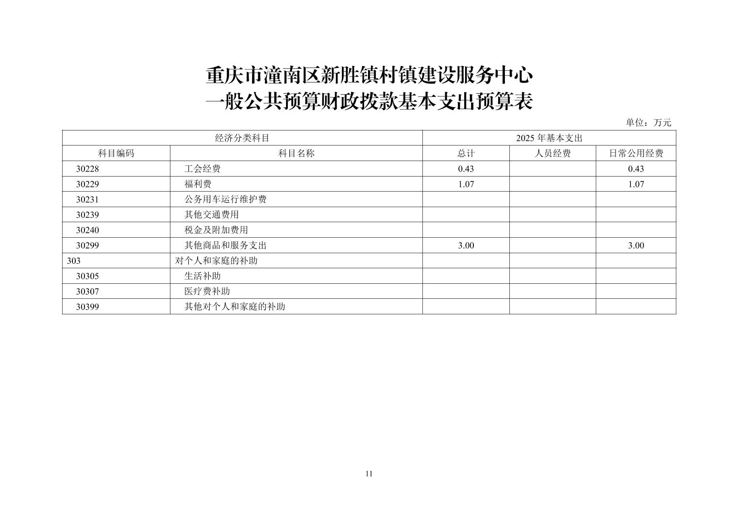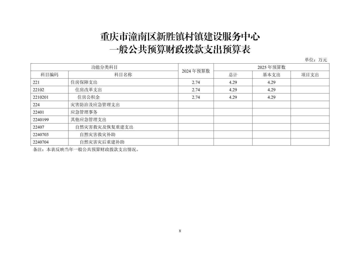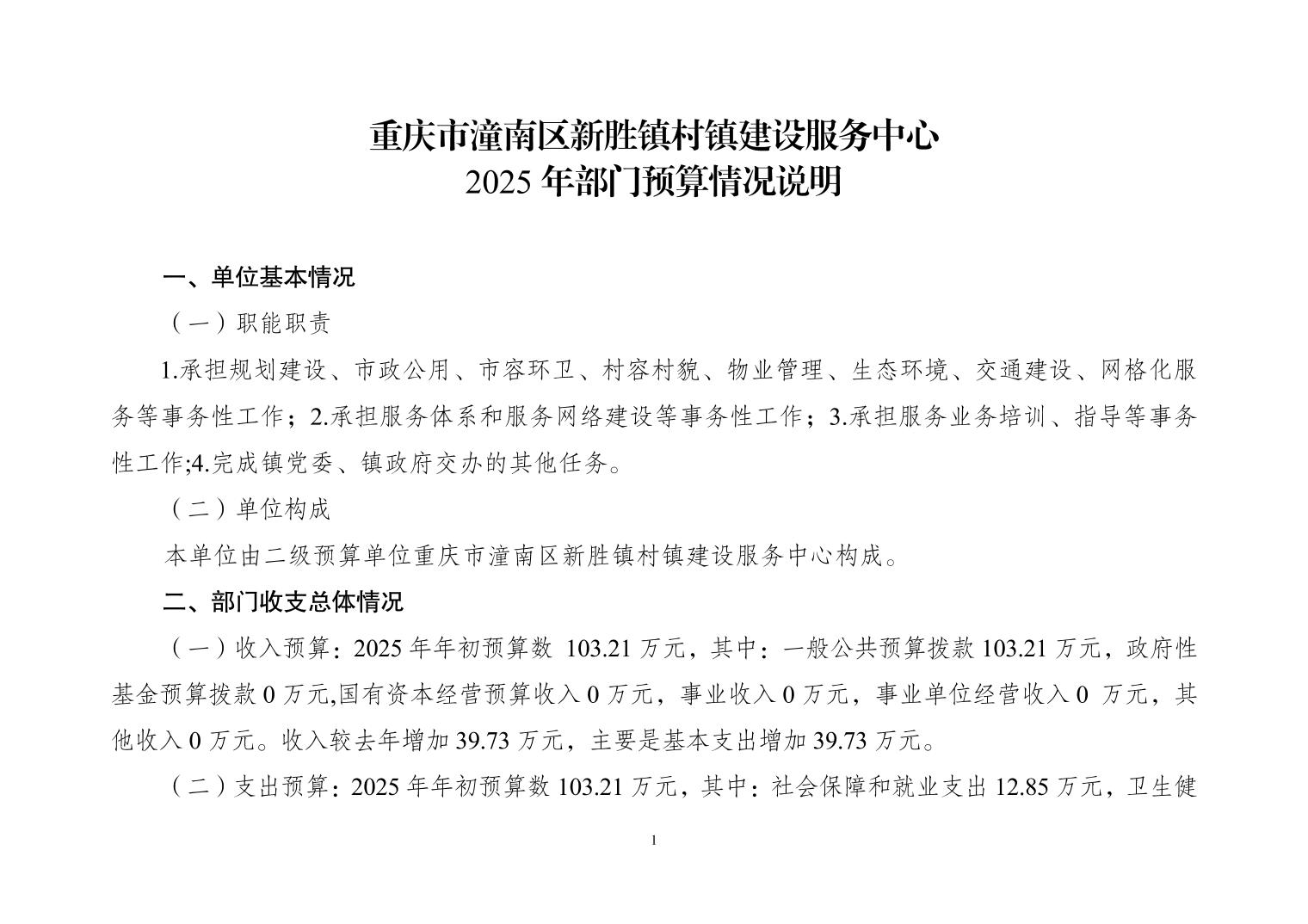 重庆市潼南区新胜镇村镇建设服务中心2025年预算公开