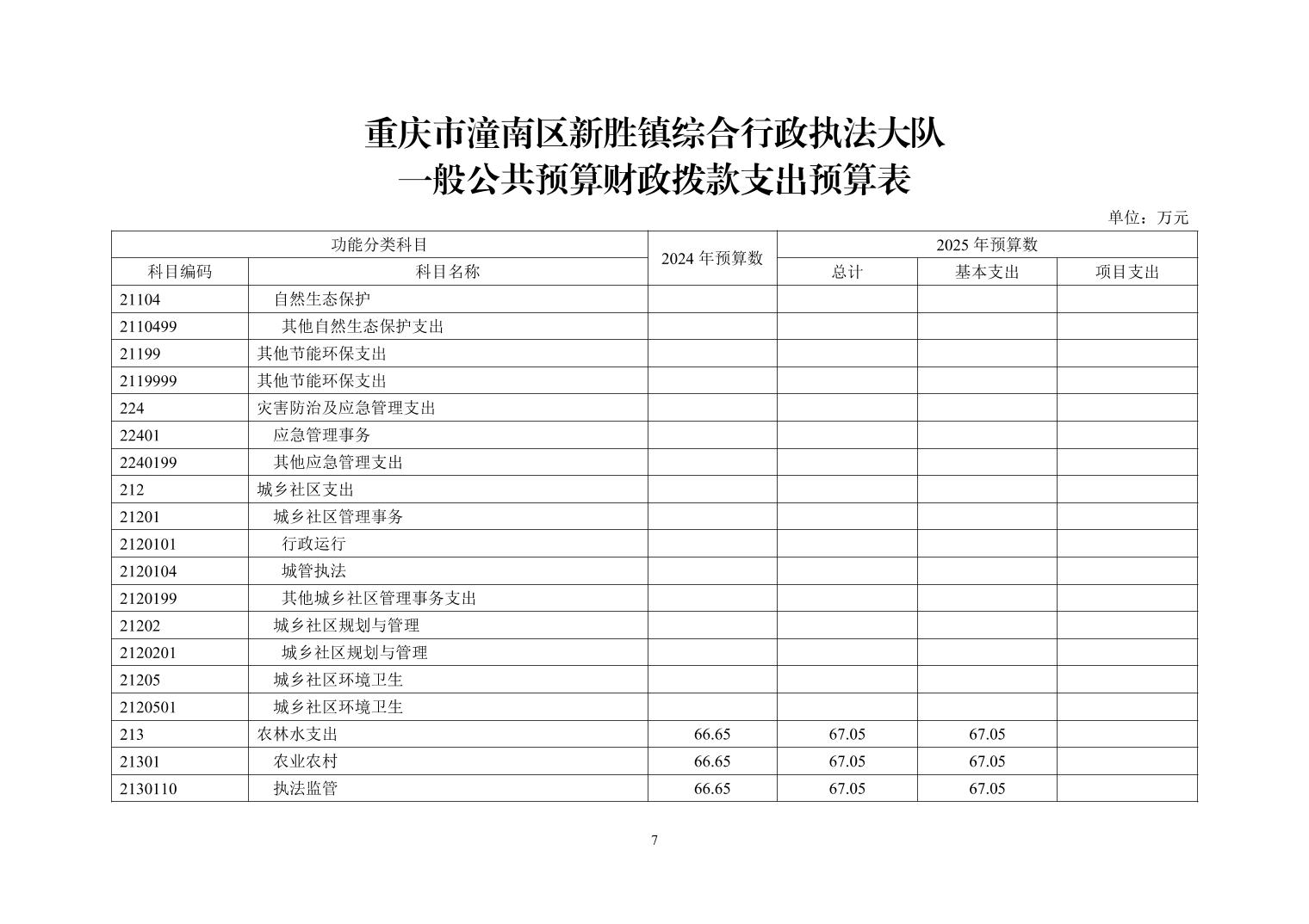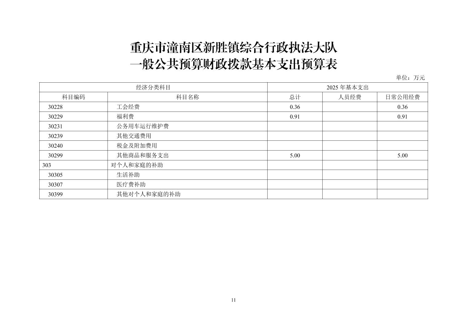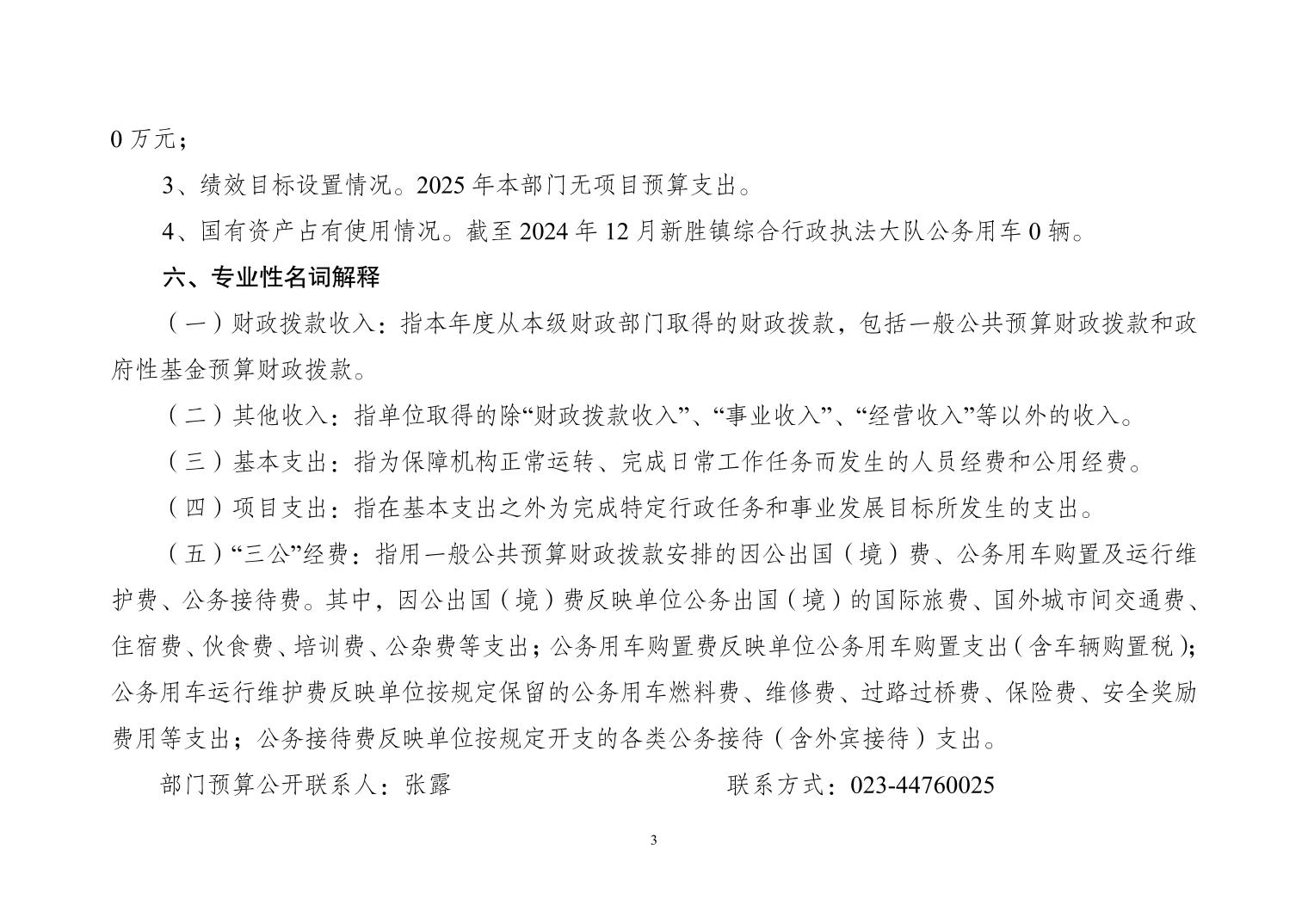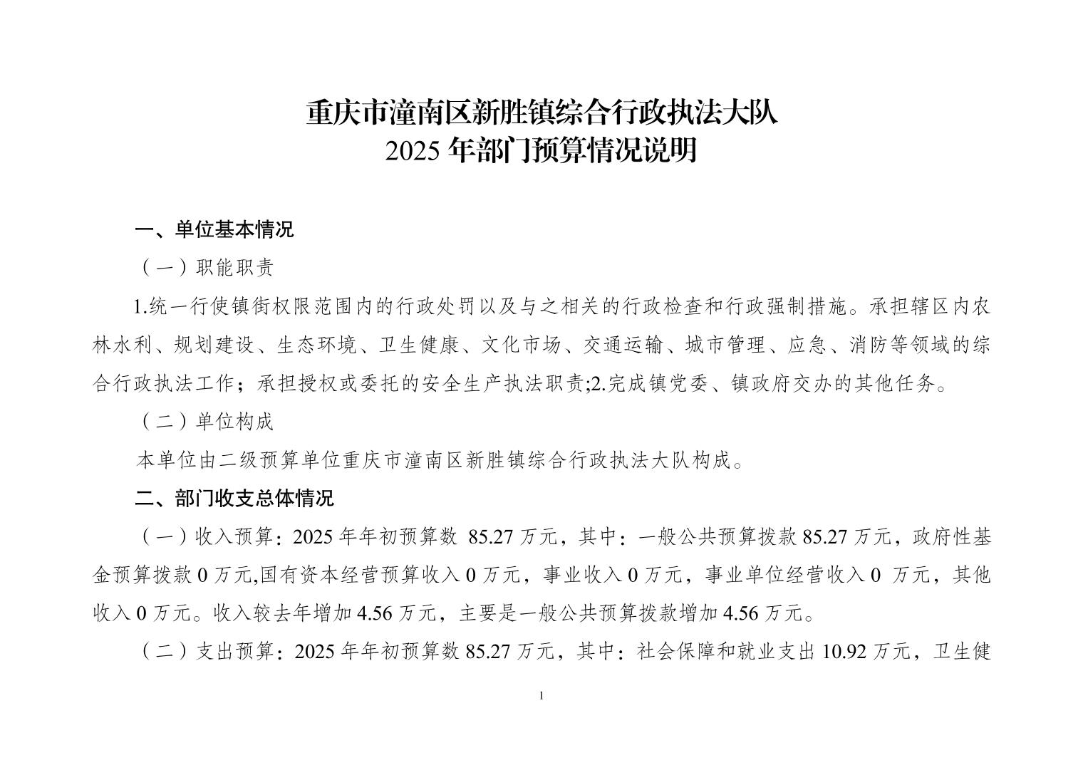 重庆市潼南区新胜镇综合行政执法大队2025年预算公开