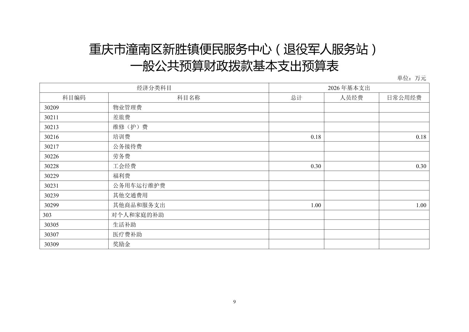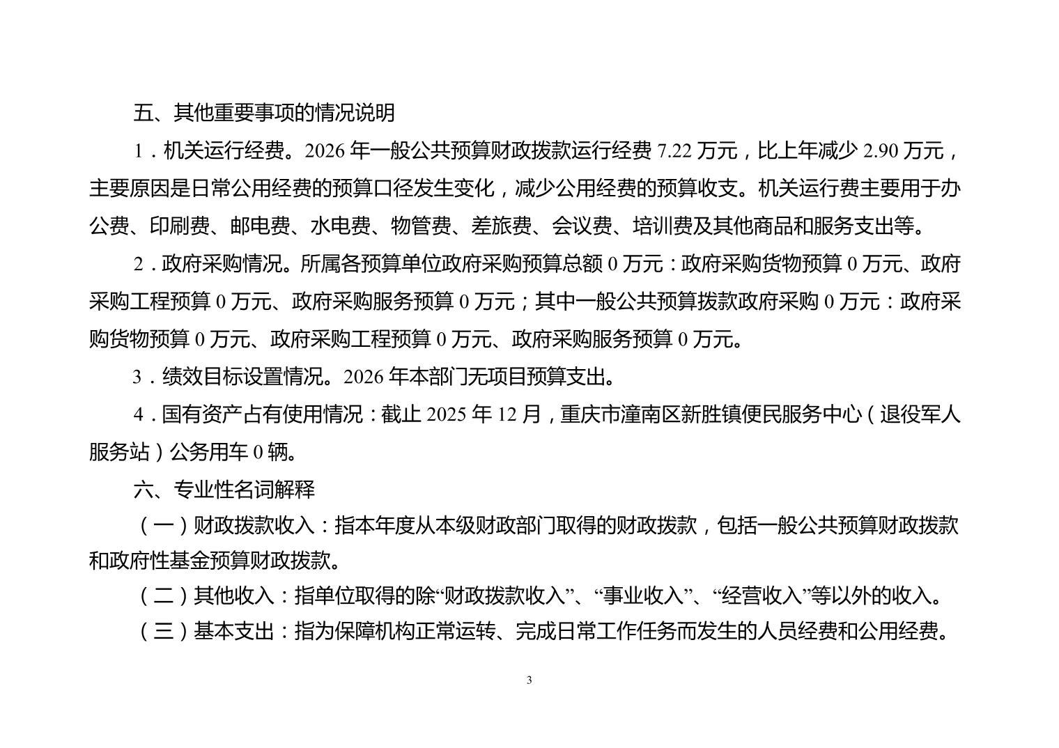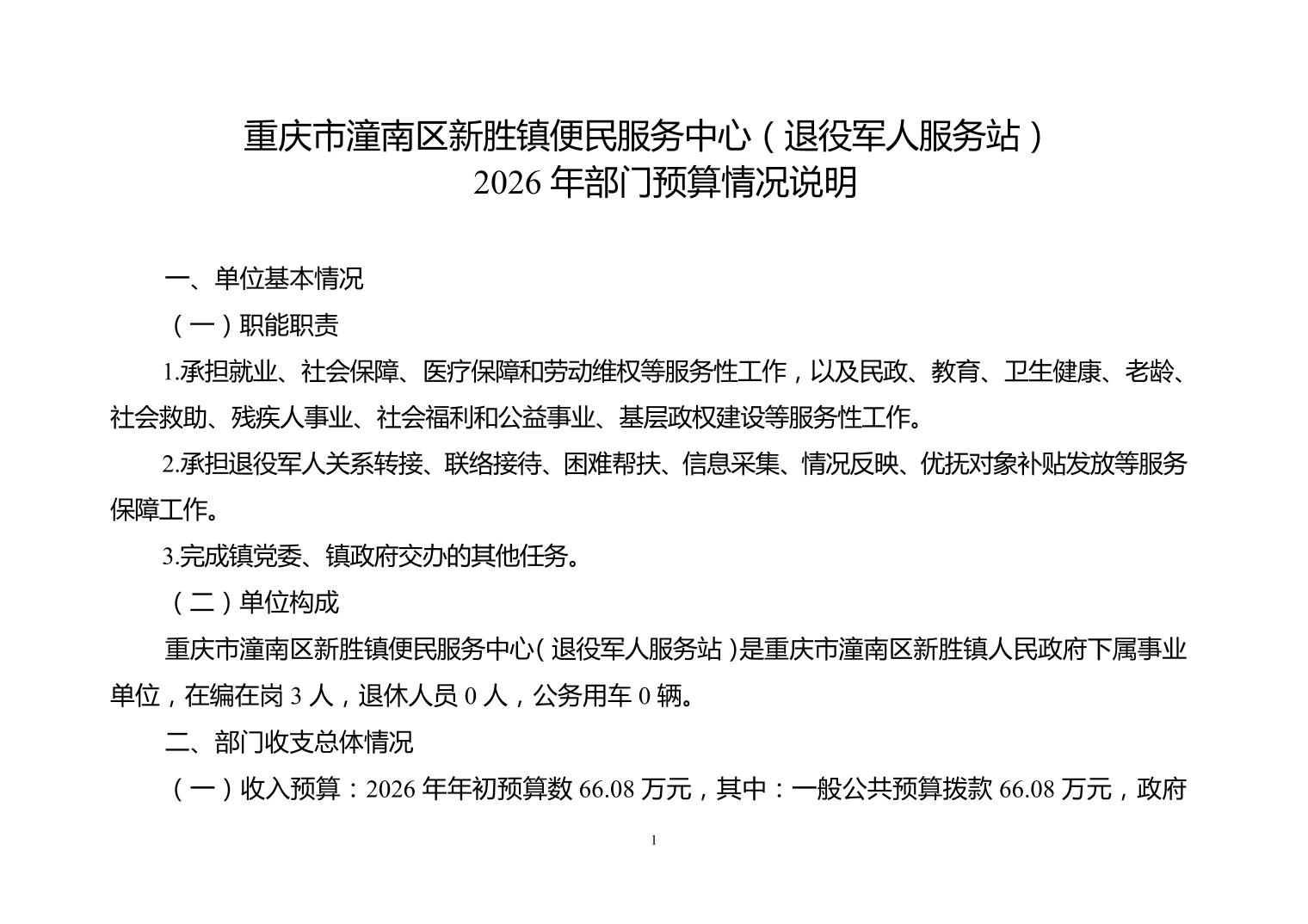重庆市潼南区新胜镇便民服务中心(退役军人服务站)2026年部门预算公开