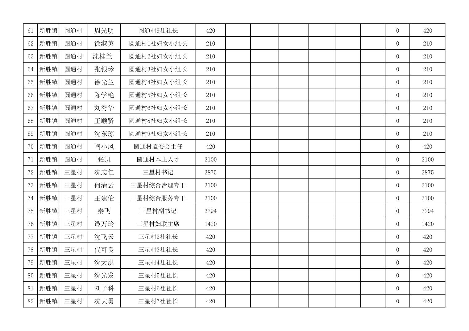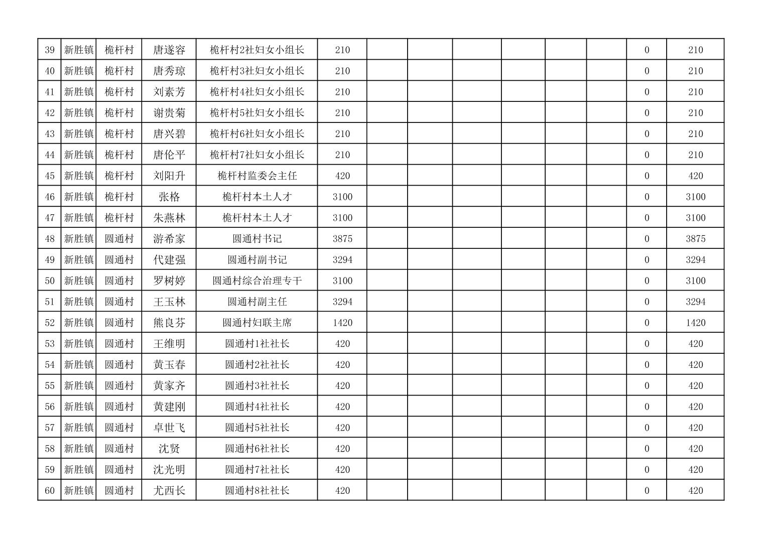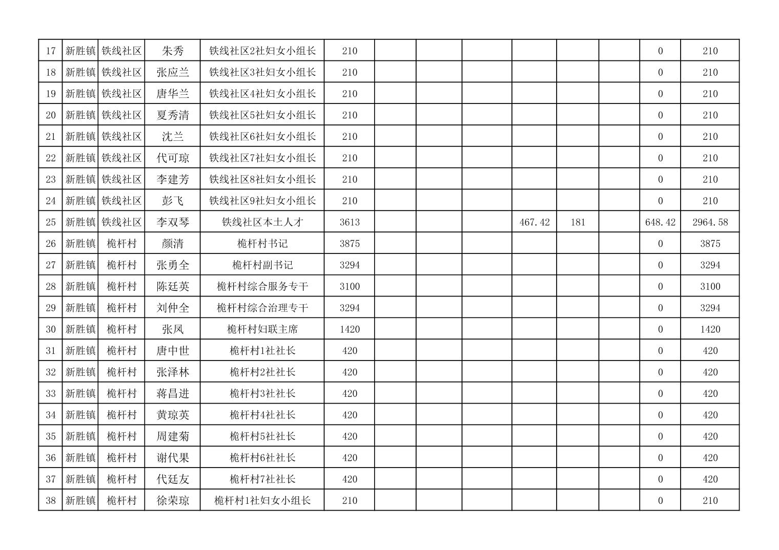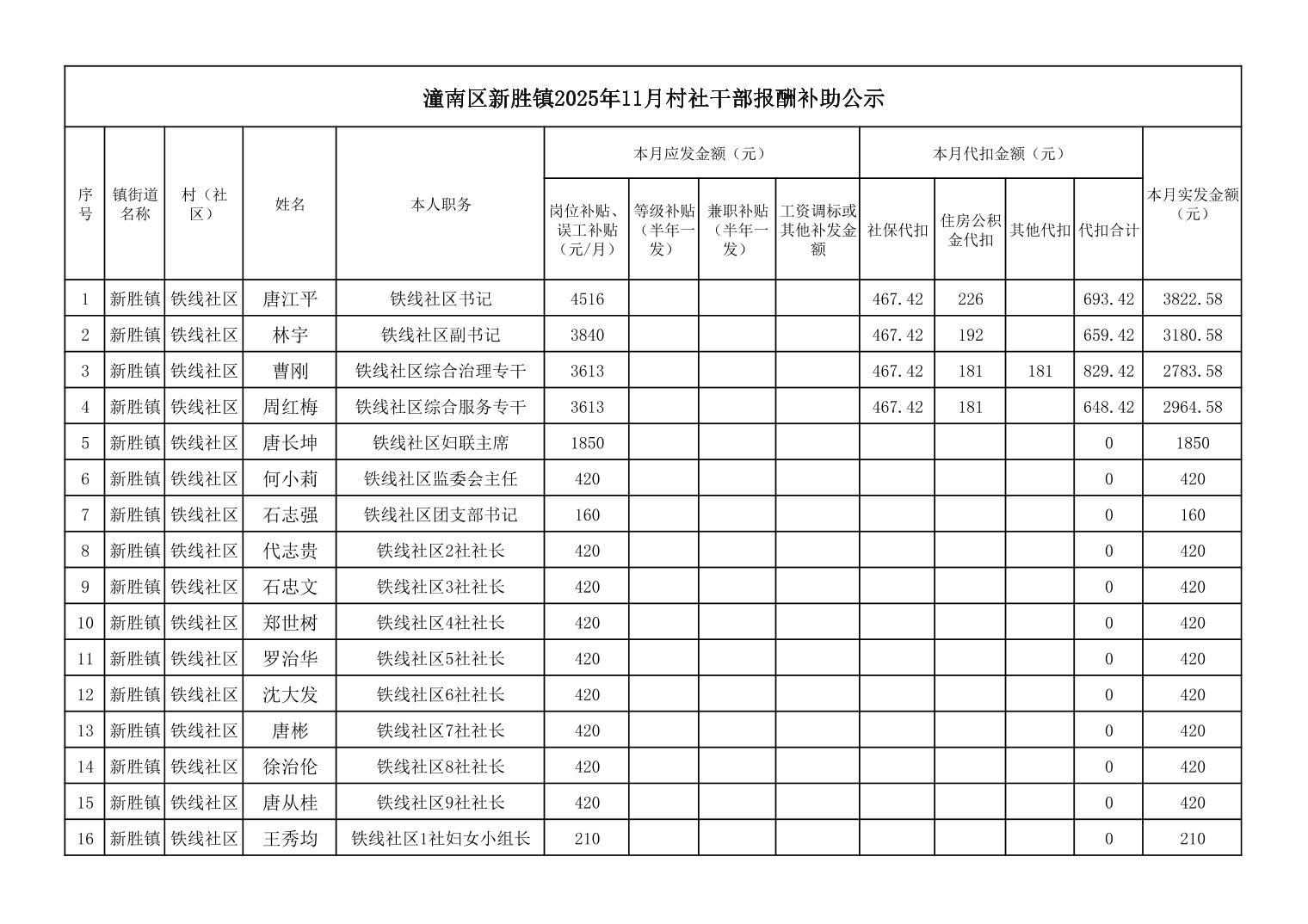 潼南区新胜镇2025年11月村社干部报酬补助公示