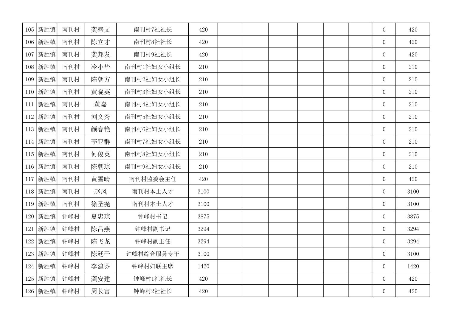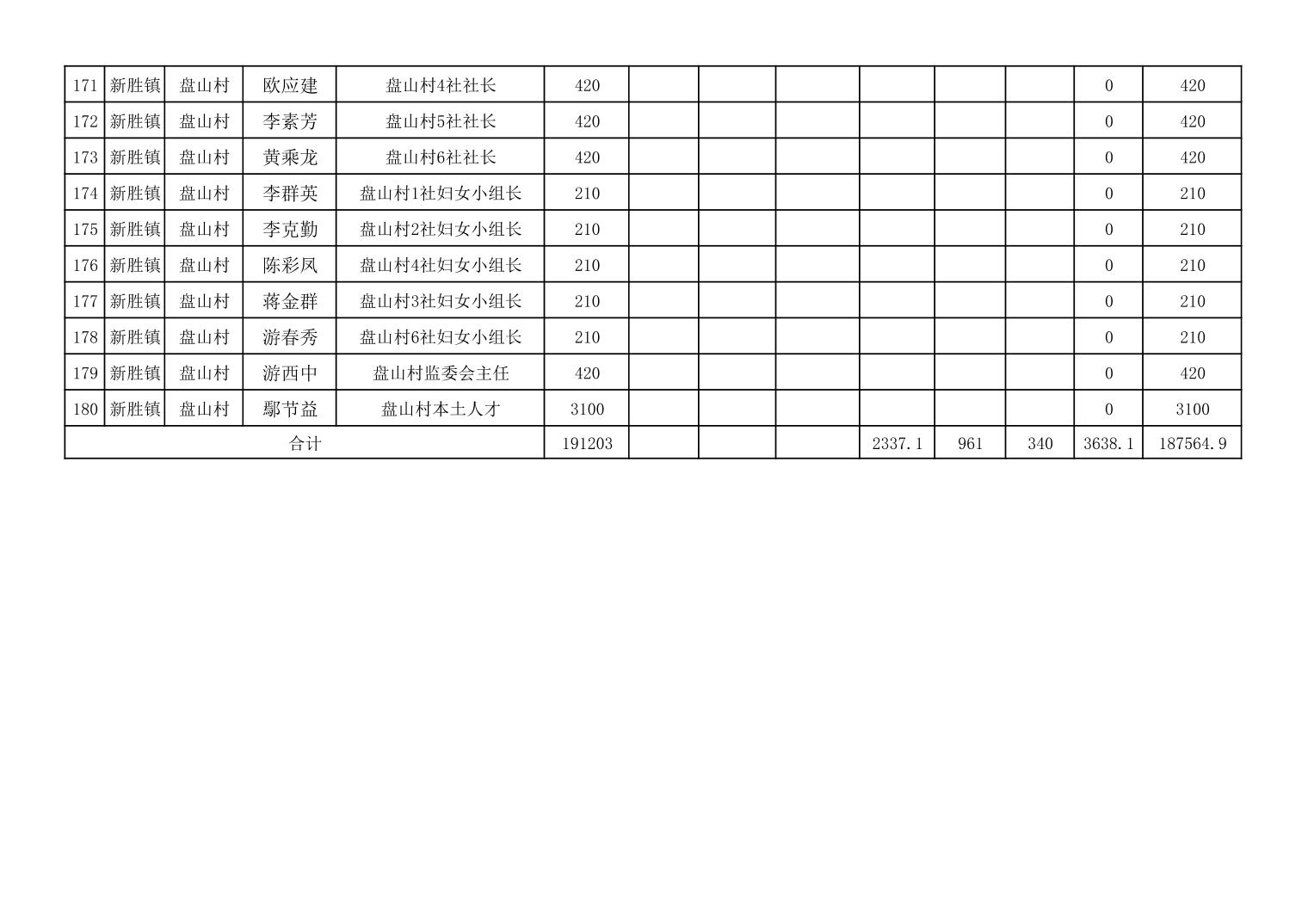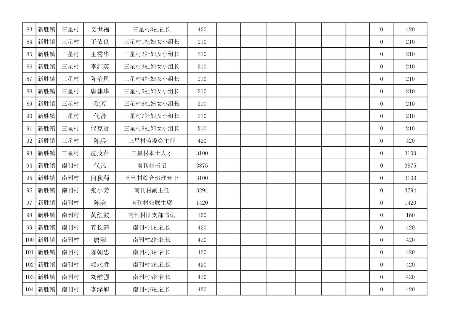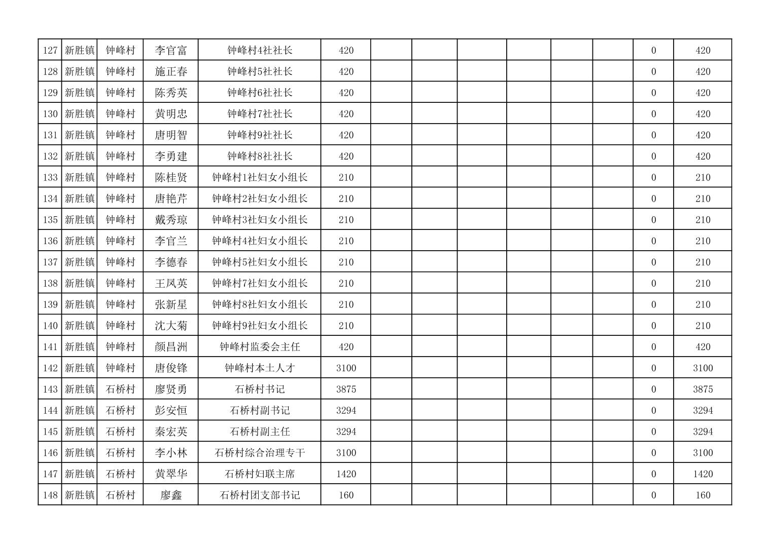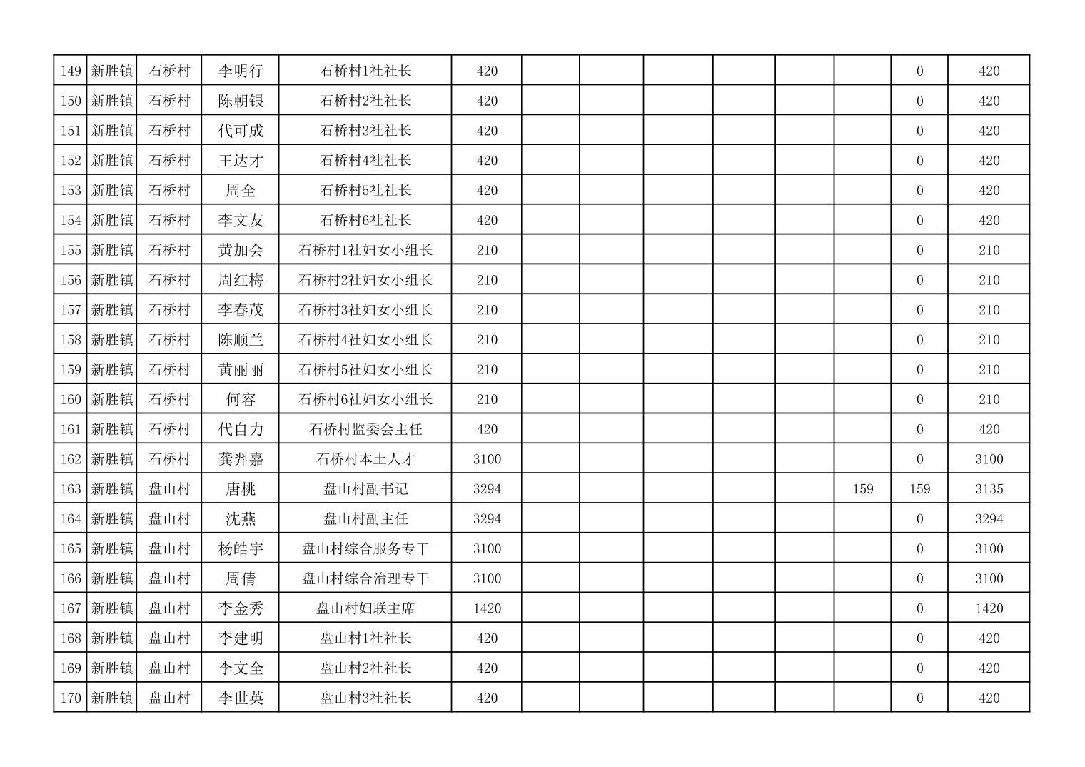 潼南区新胜镇2025年11月村社干部报酬补助公示