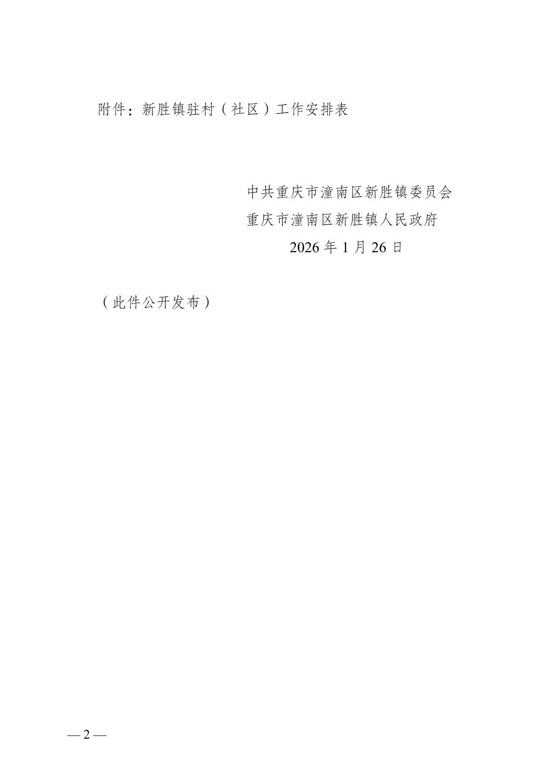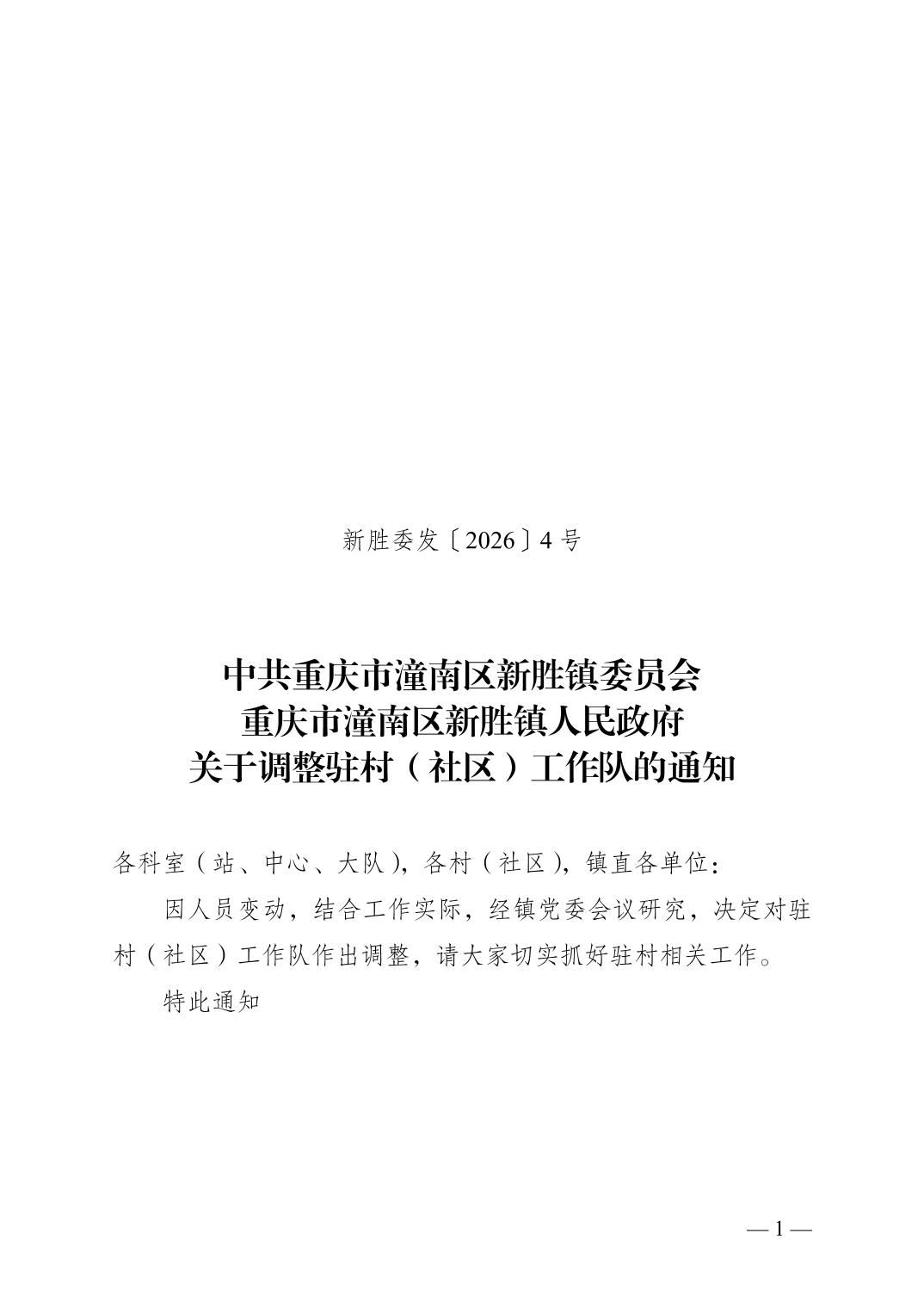 新胜委发〔2026〕4号中共重庆市潼南区新胜镇委员会重庆市潼南区新胜镇人民政府关于调整驻村(社区)工作队的通知