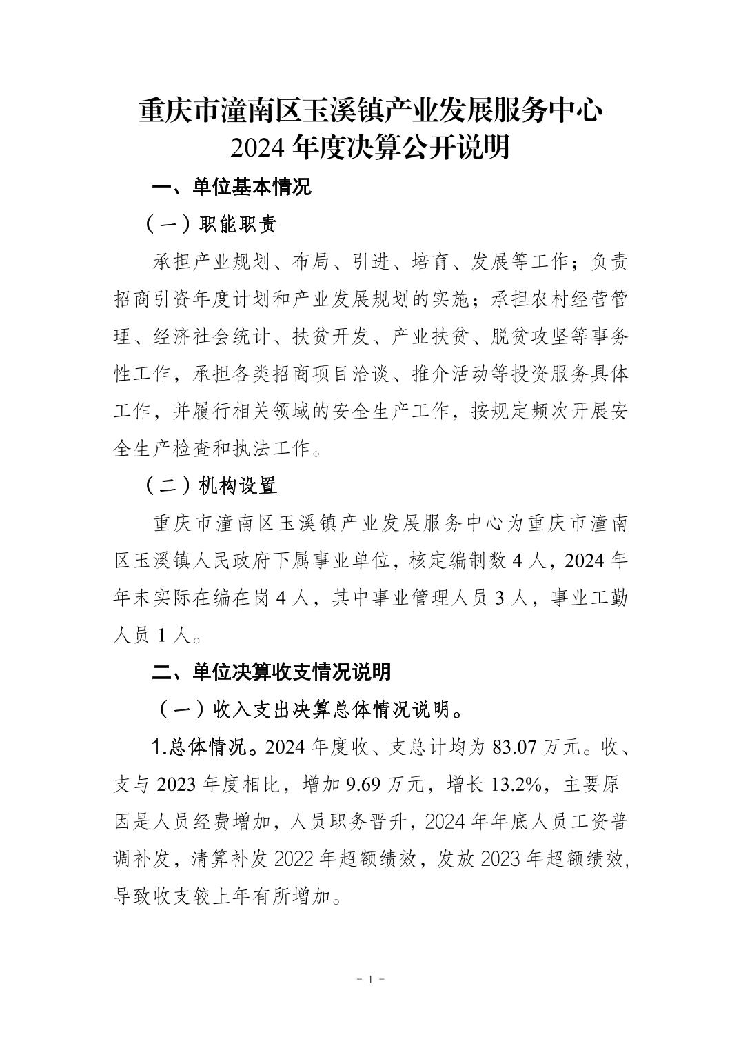 重庆市潼南区玉溪镇产业发展服务中心2024年度决算公开说明