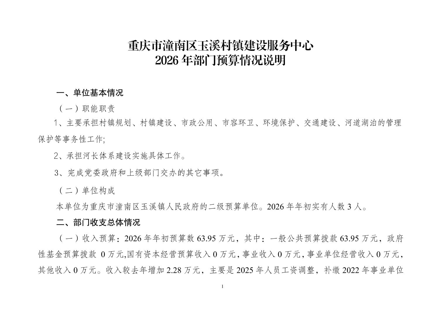 重庆市潼南区玉溪村镇建设服务中心2026年部门预算情况说明