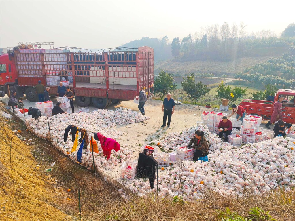 “这个季节主要是耙耙柑成熟上市,各个地方的老板都来收购、采摘,目前重庆市区、遂宁、河南、辽宁、山东的已经定购,过两天要过来采摘。我们的耙耙柑纯自然成熟,品质很好,入口化渣、汁水饱满。今年产量大概在35万斤左右,产值达70万元。”重庆屹岭崎生态观光农业有限公司负责人赖毅对记者说。