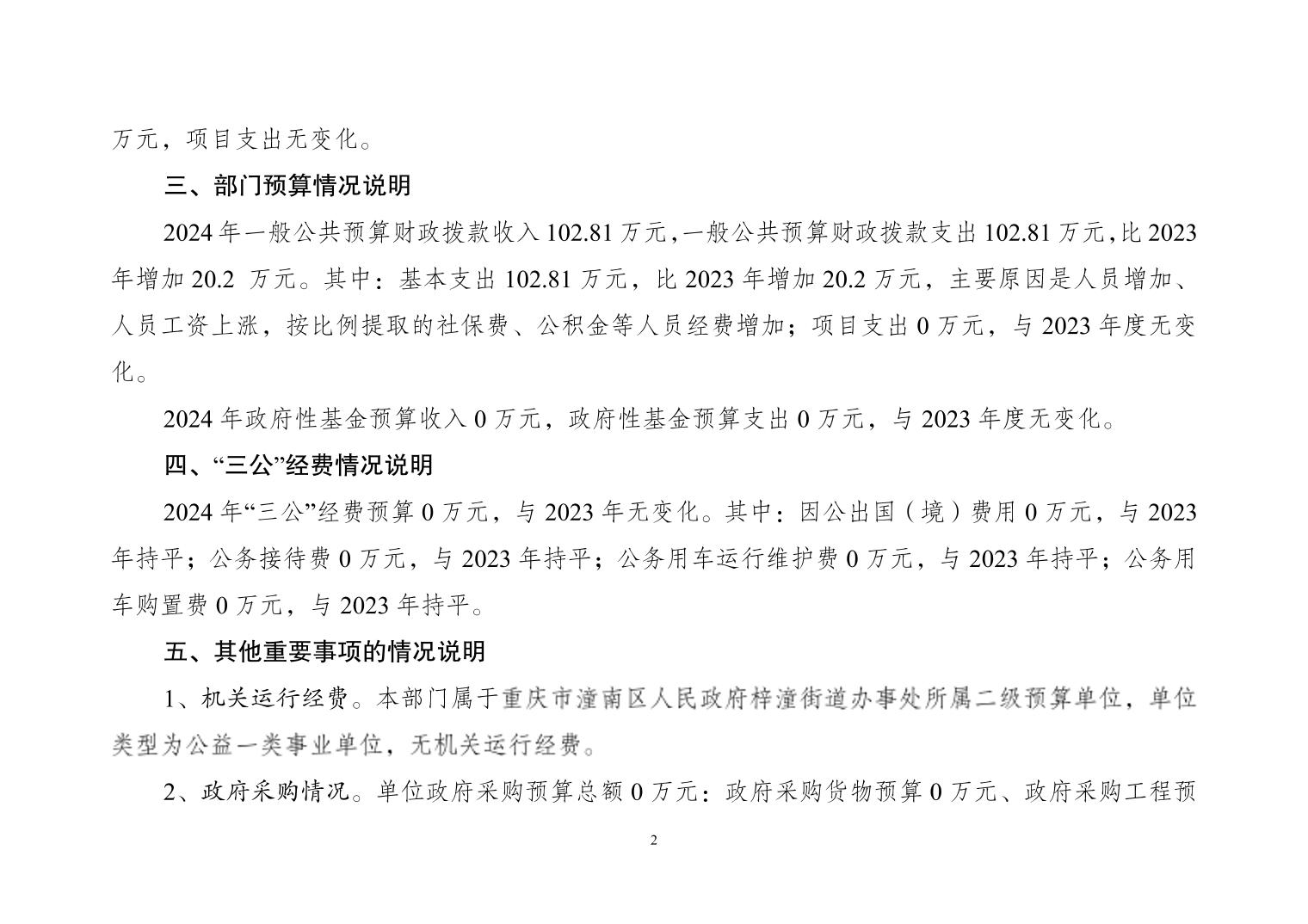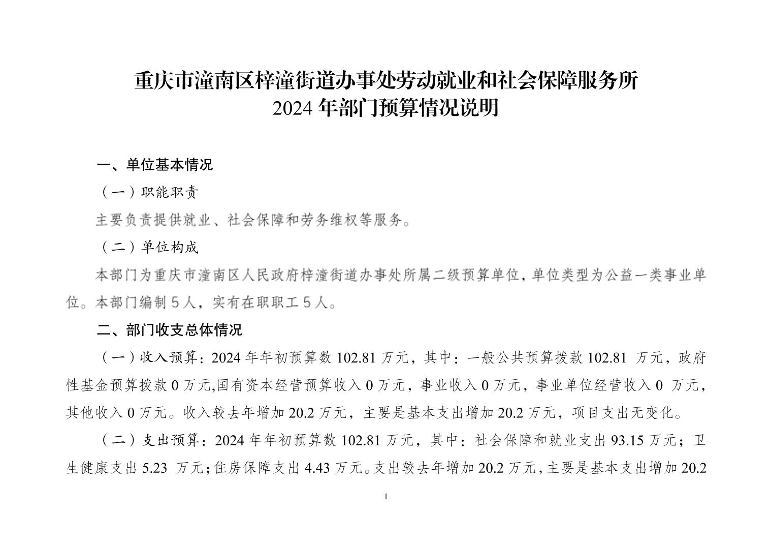 重庆市潼南区梓潼街道办事处劳动就业和社会保障服务所2024年部门预算情况说明