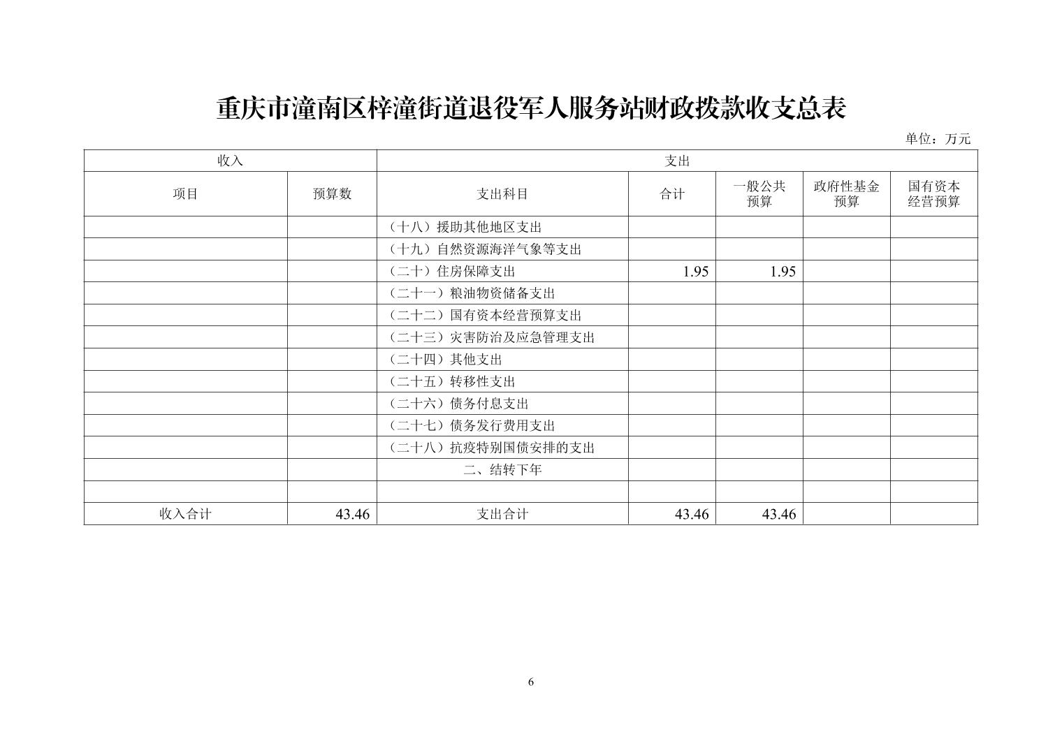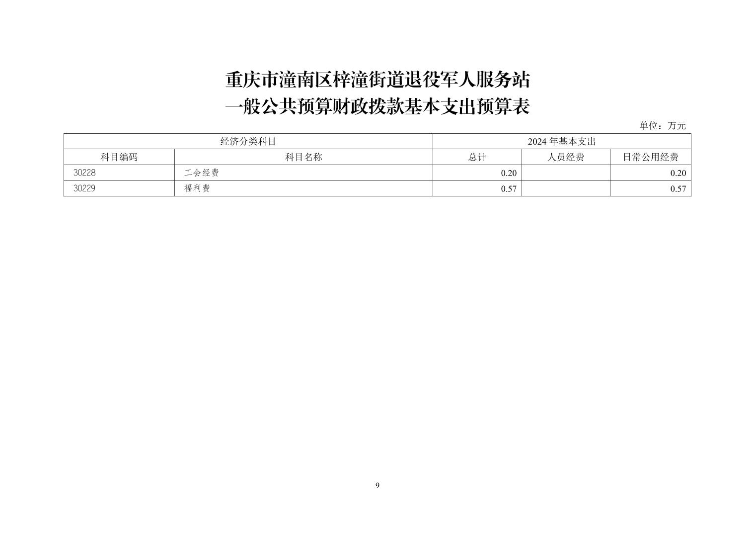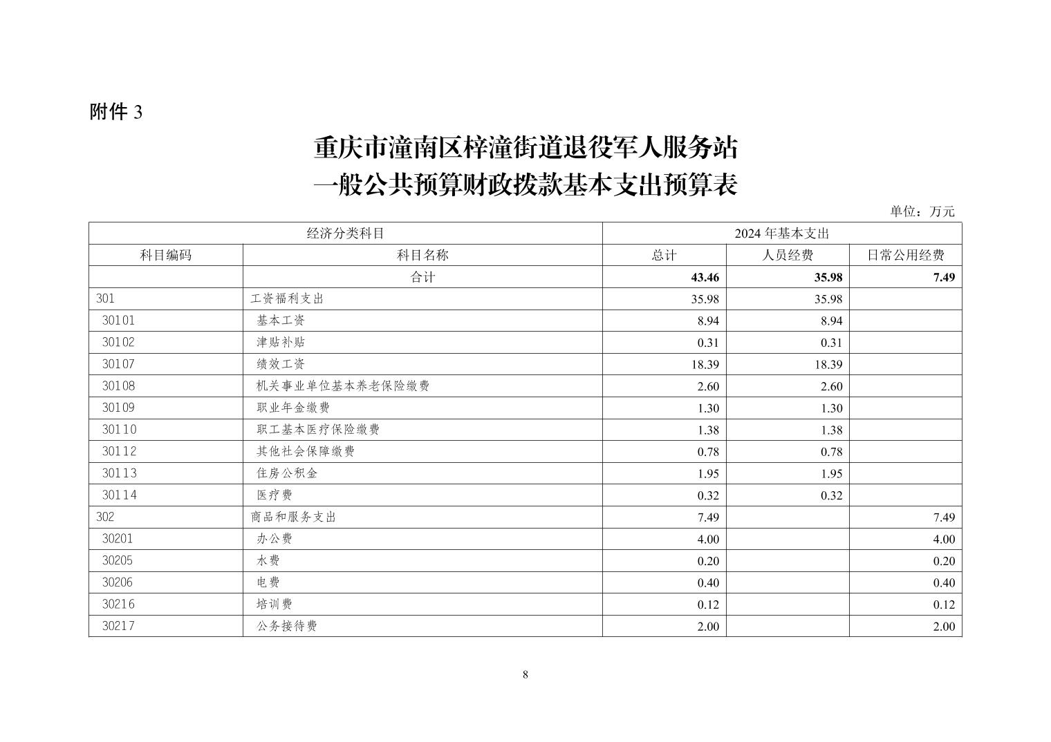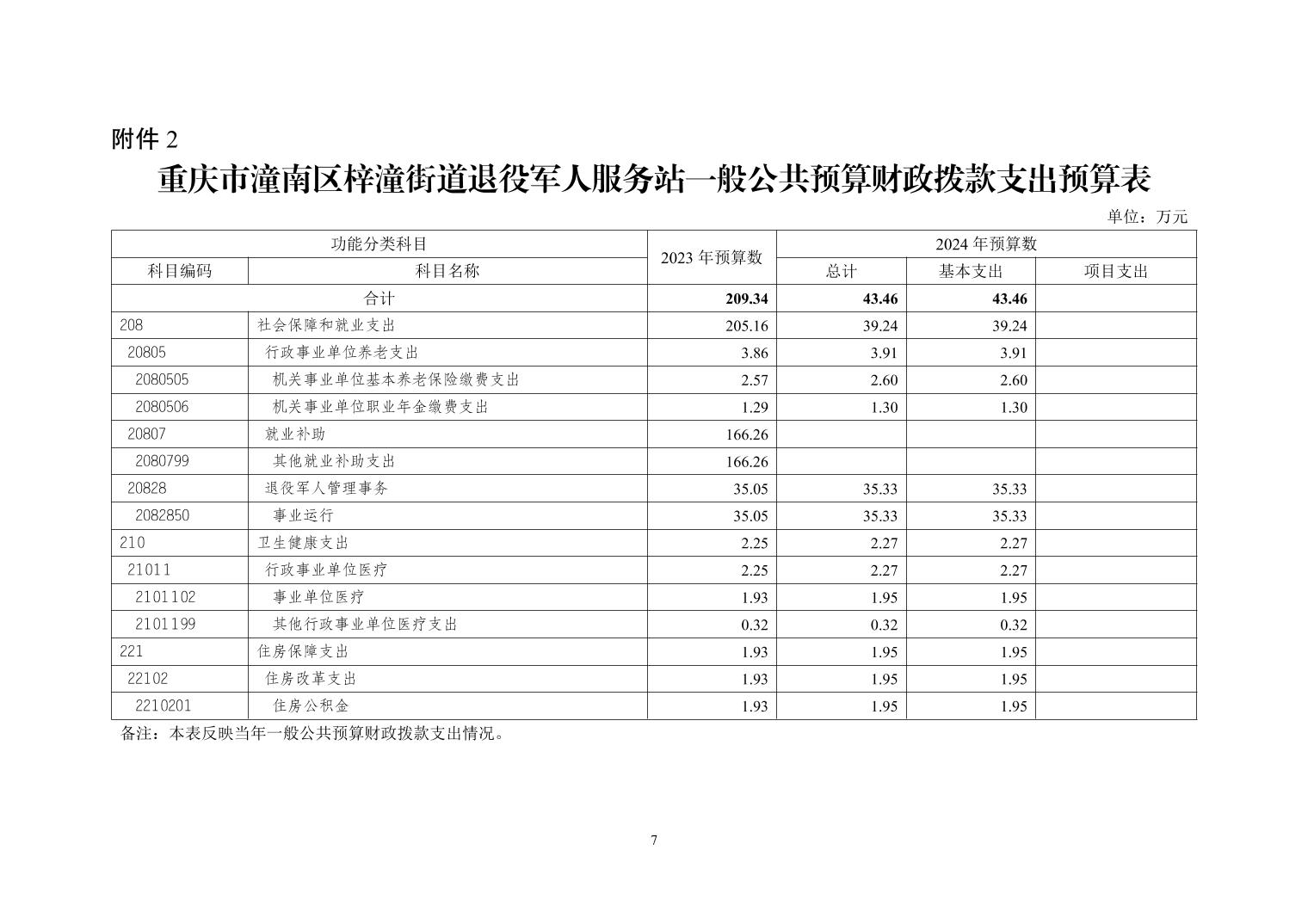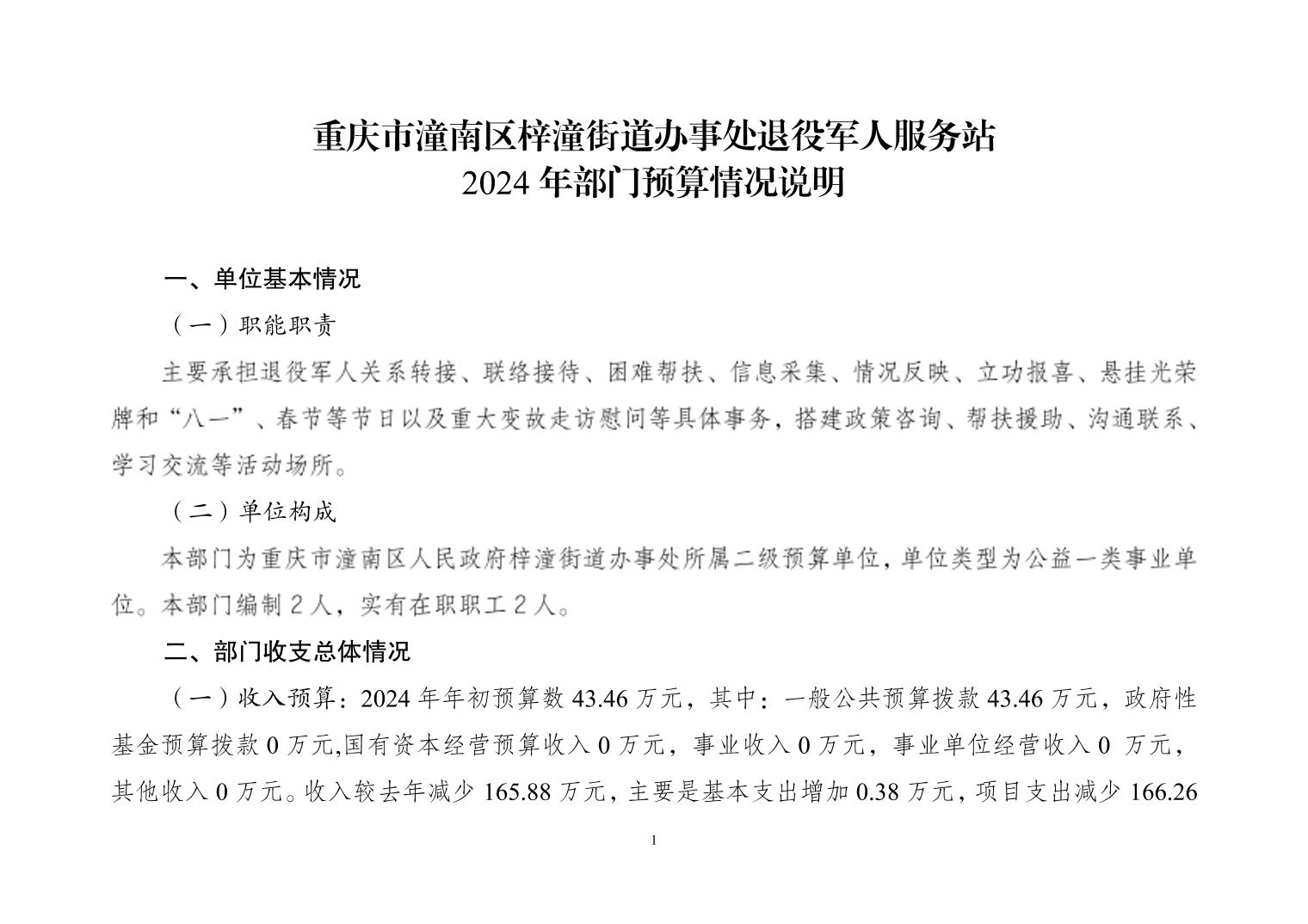 重庆市潼南区梓潼街道办事处退役军人服务站2024年部门预算情况说明