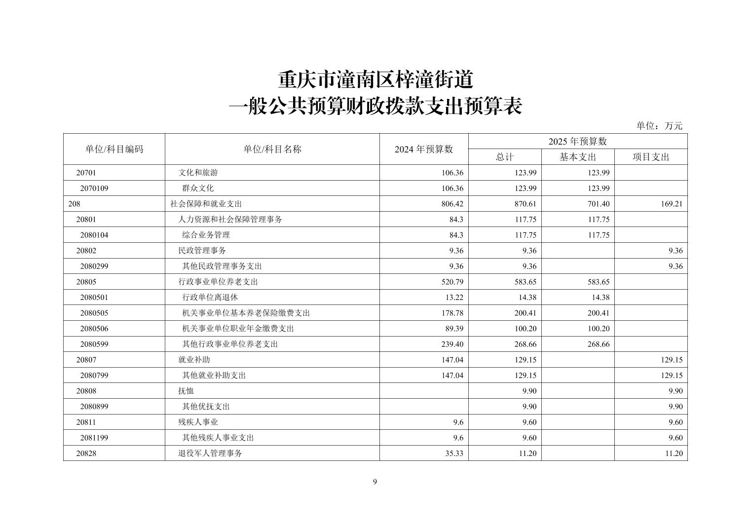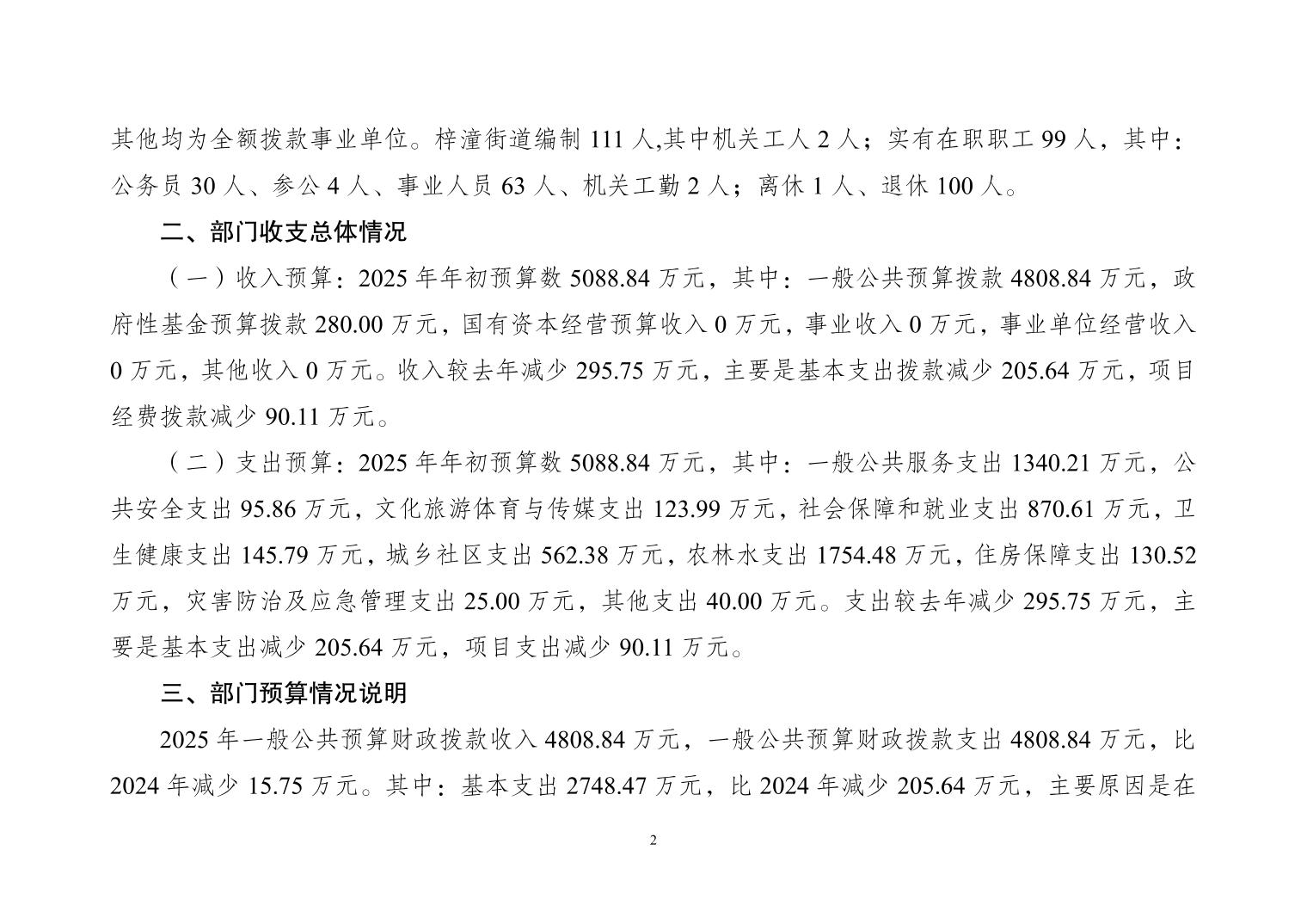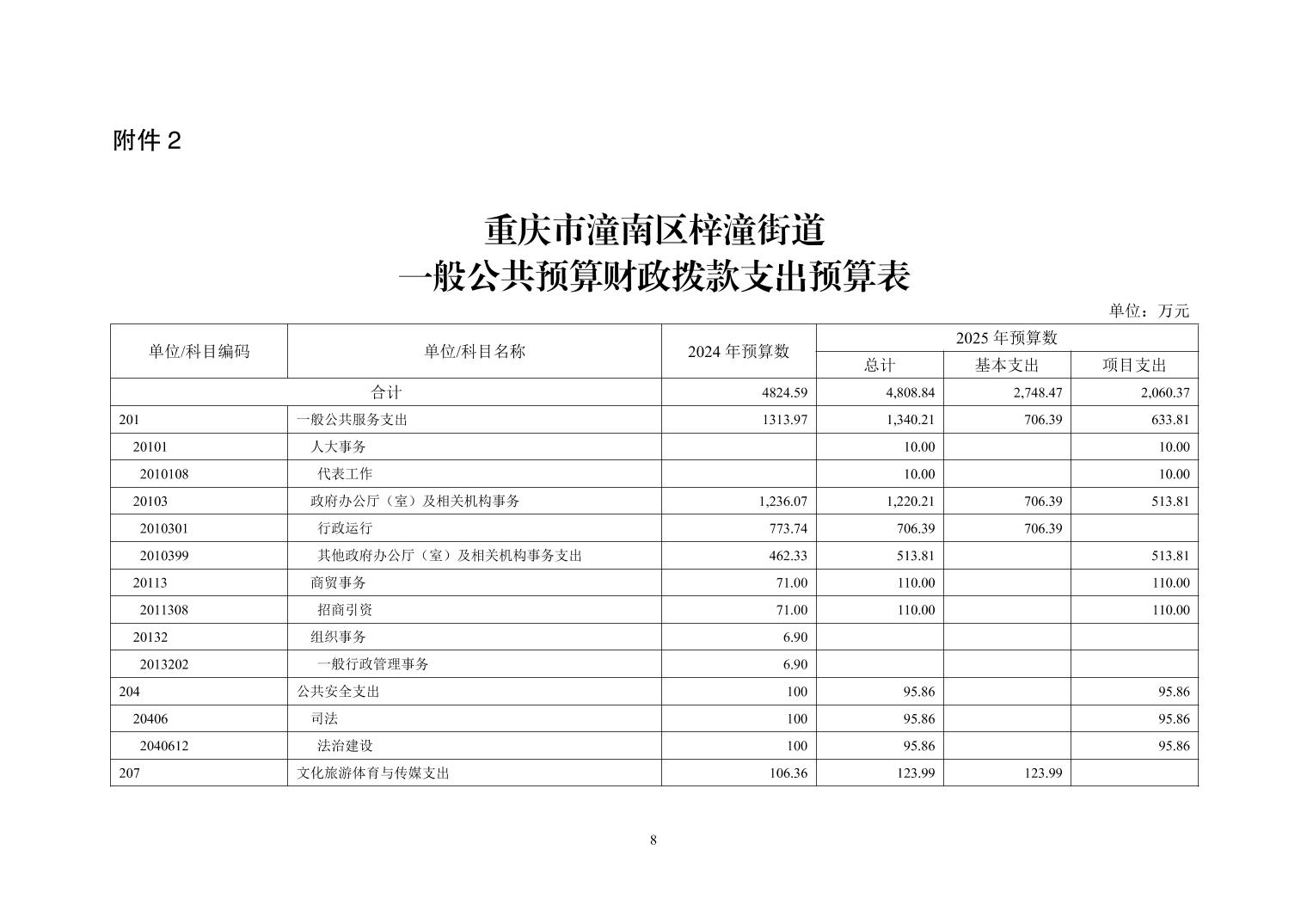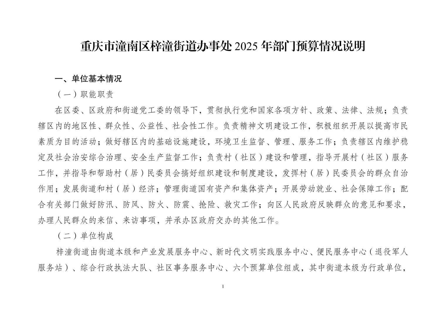 重庆市潼南区梓潼街道办事处2025年部门预算情况说明