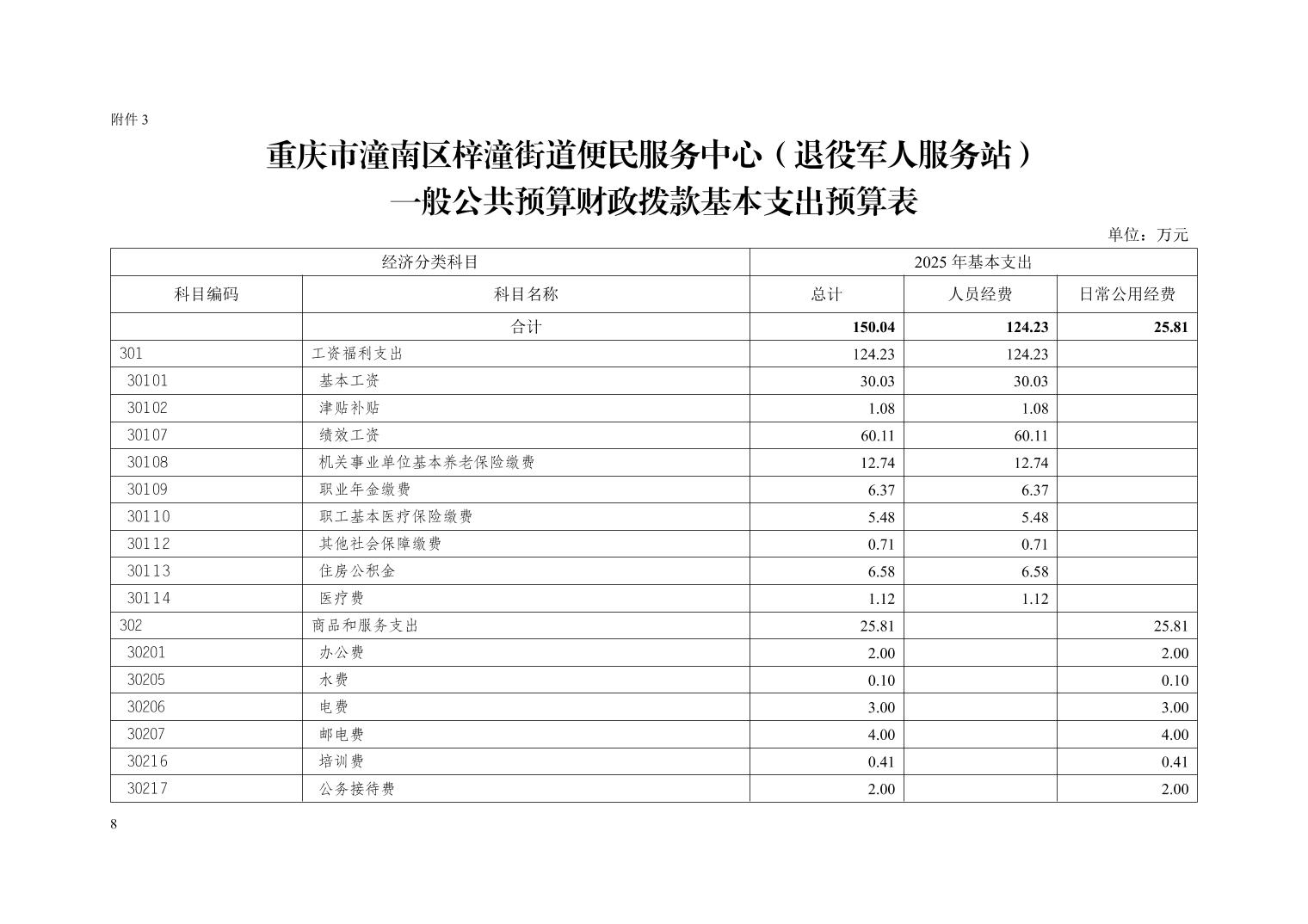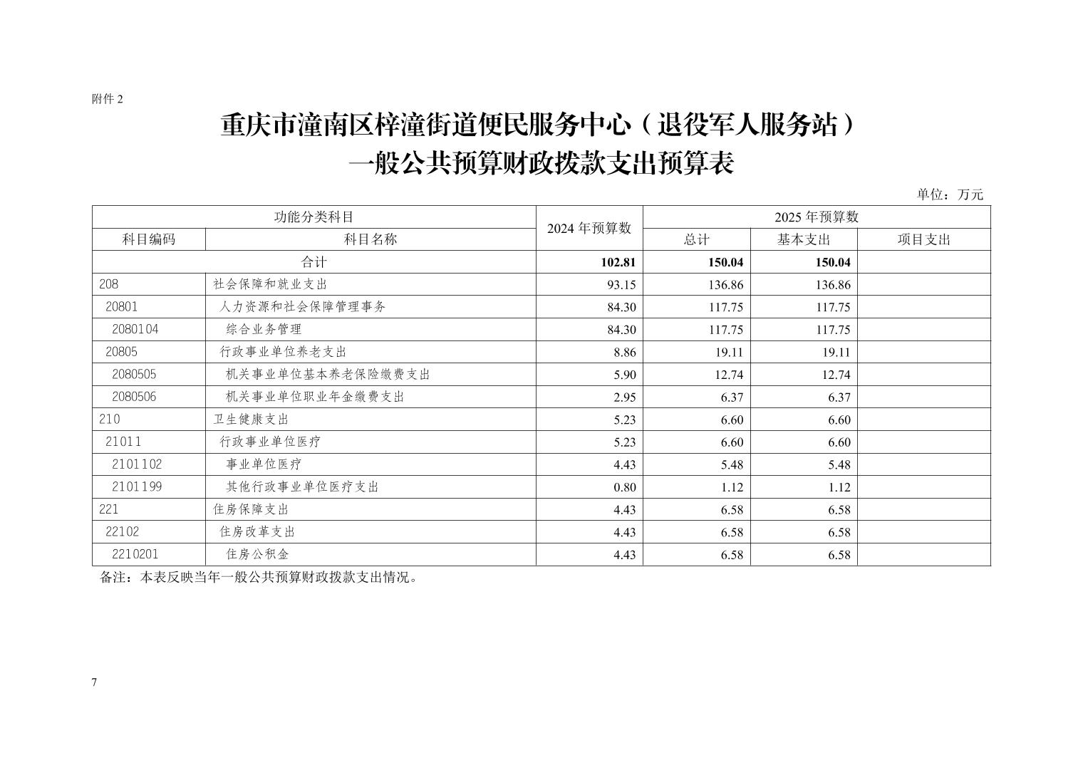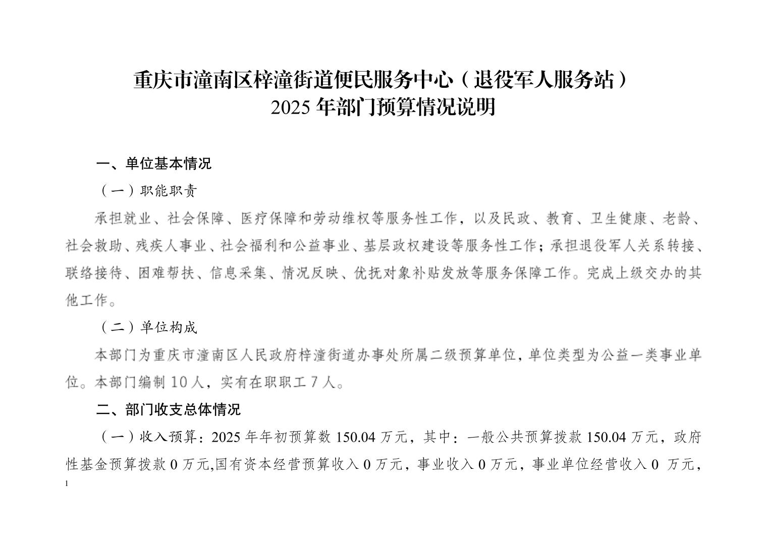 重庆市潼南区梓潼街道便民服务中心(退役军人服务站)2025年部门预算情况说明