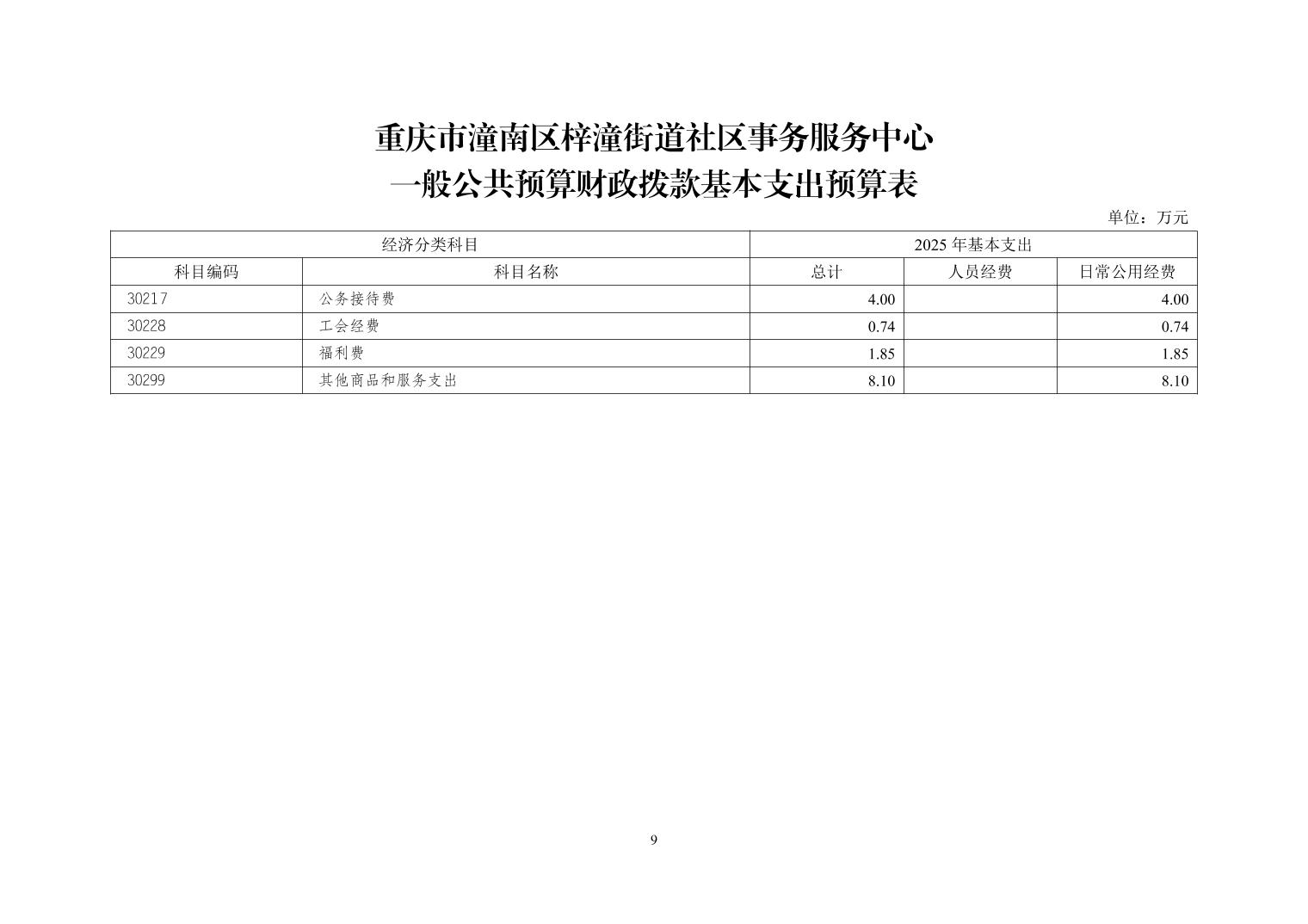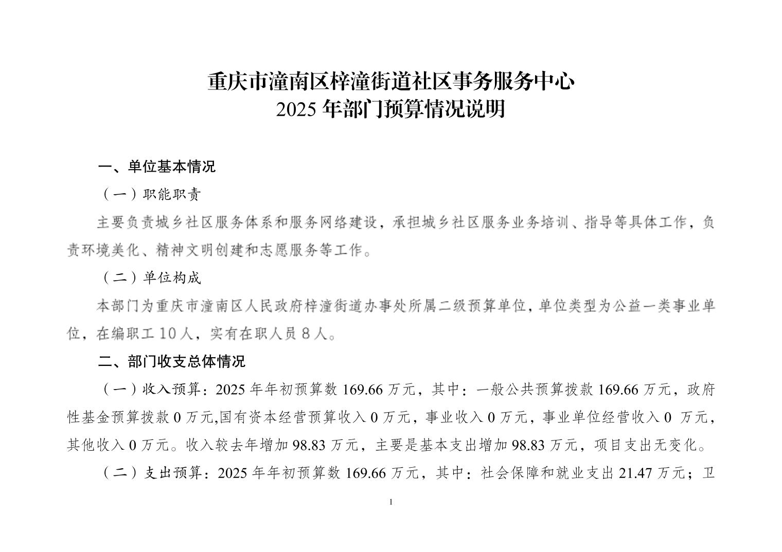 重庆市潼南区梓潼街道社区事务服务中心2025年部门预算情况说明