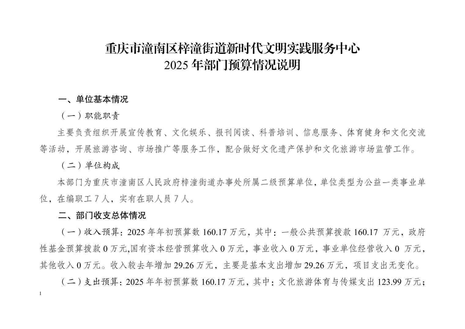 重庆市潼南区梓潼街道新时代文明实践服务中心2025年部门预算情况说明