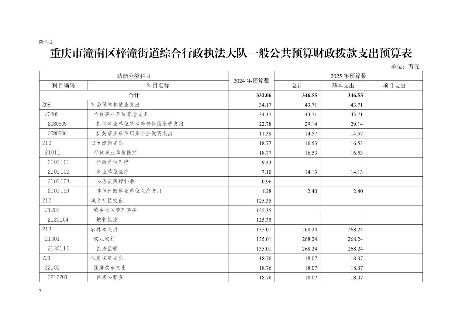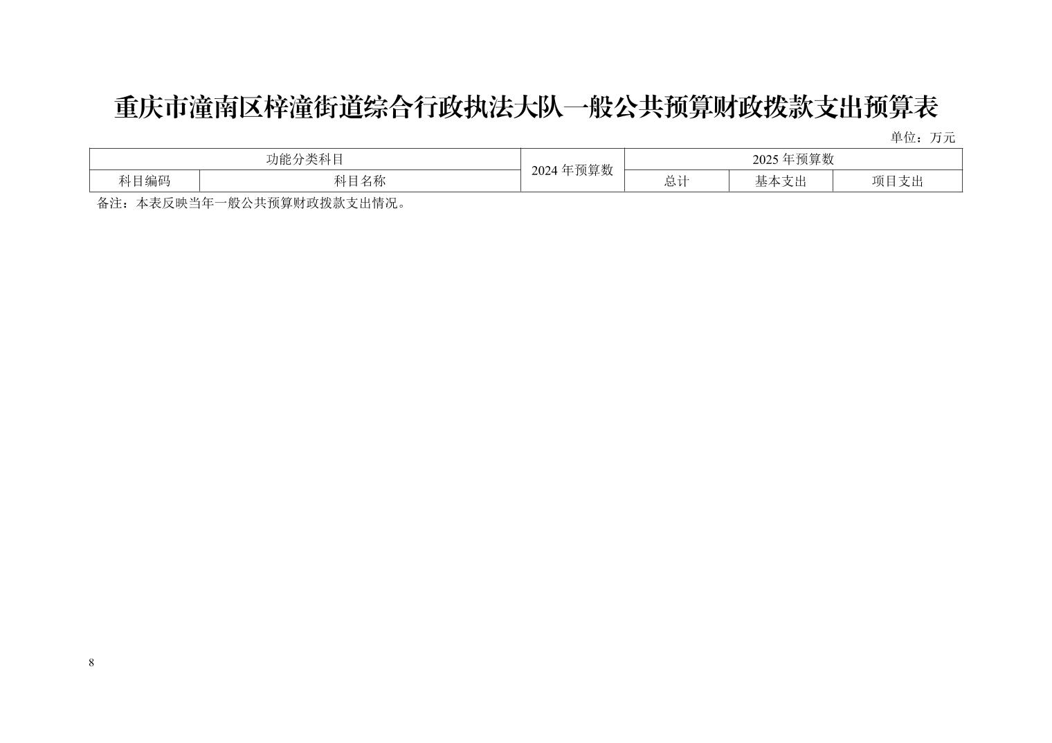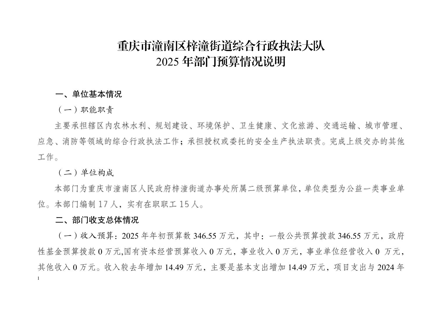 重庆市潼南区梓潼街道综合行政执法大队2025年部门预算情况说明
