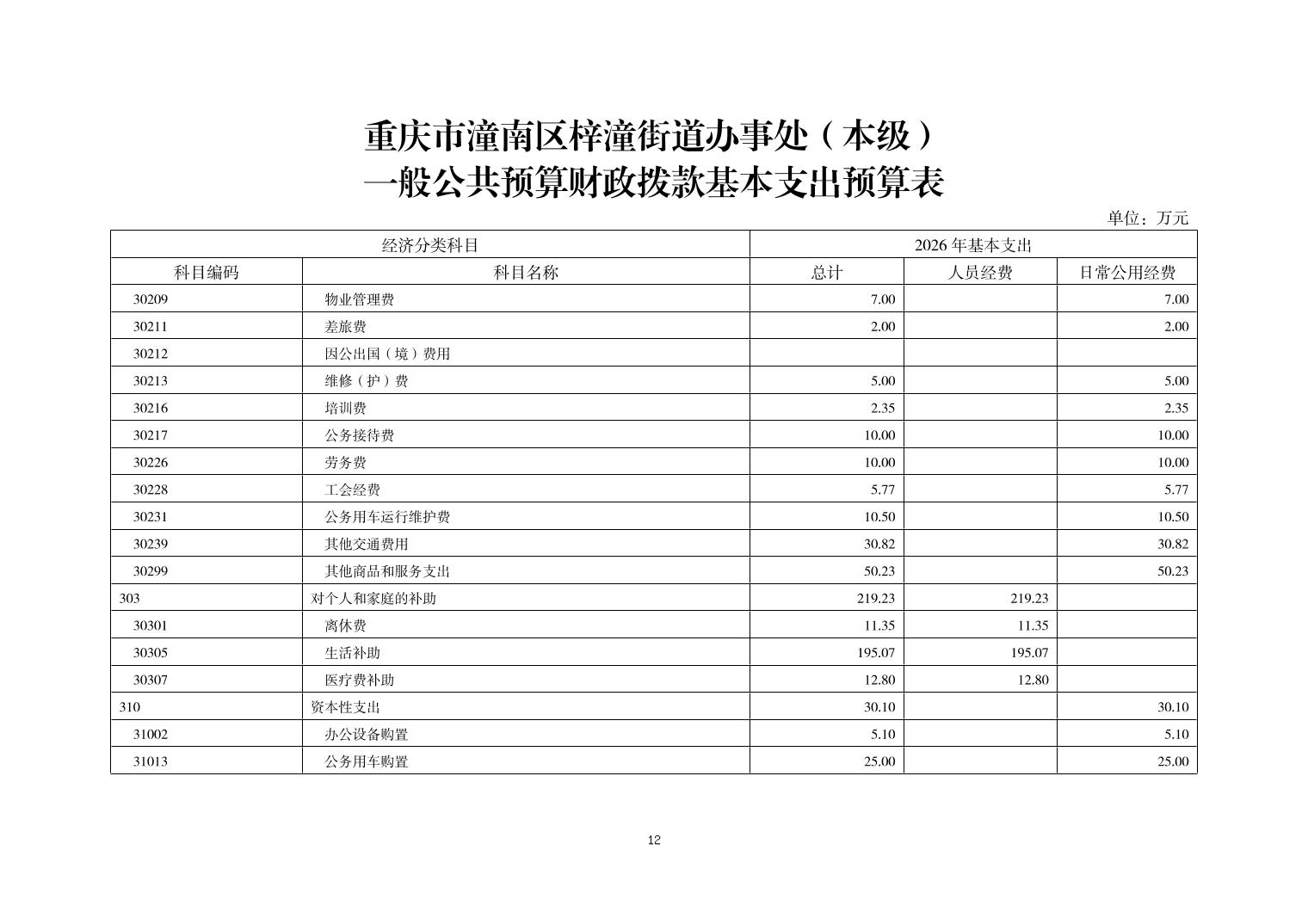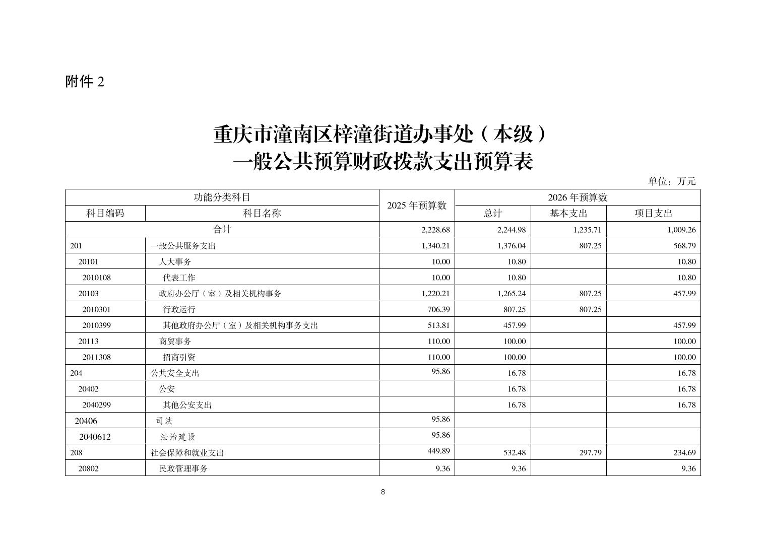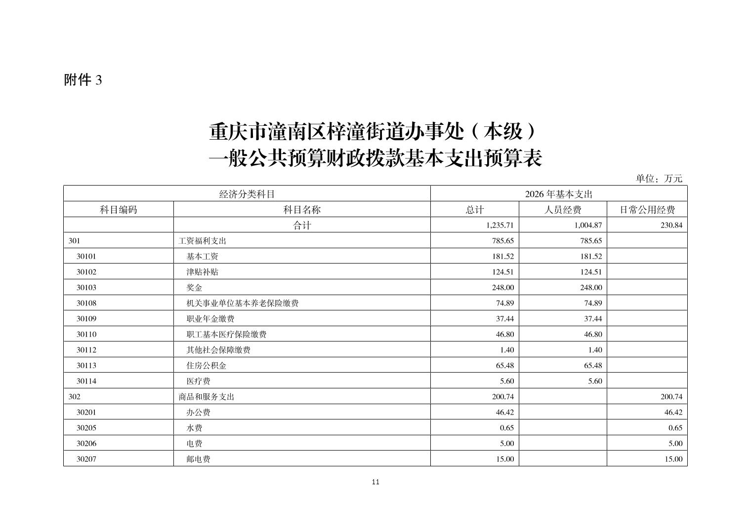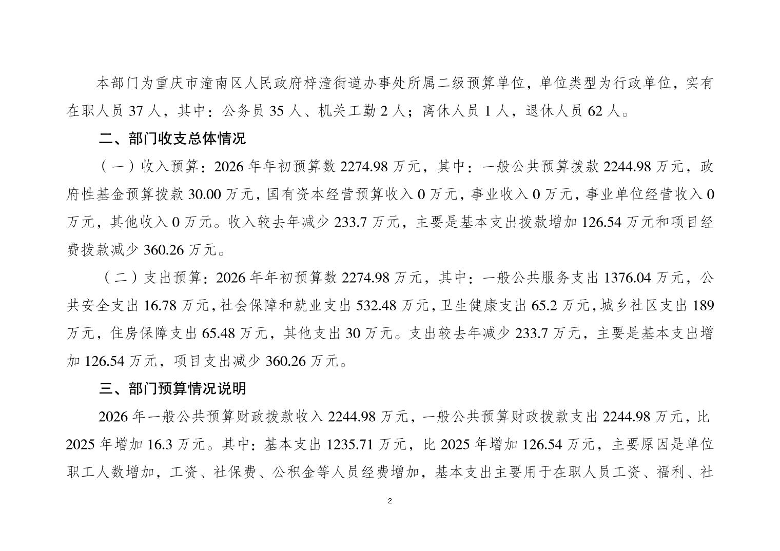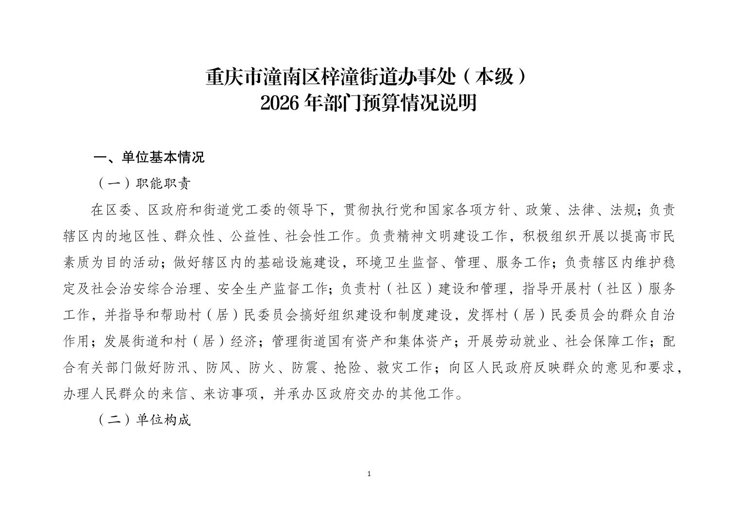 重庆市潼南区梓潼街道办事处(本级)2026年部门预算情况说明