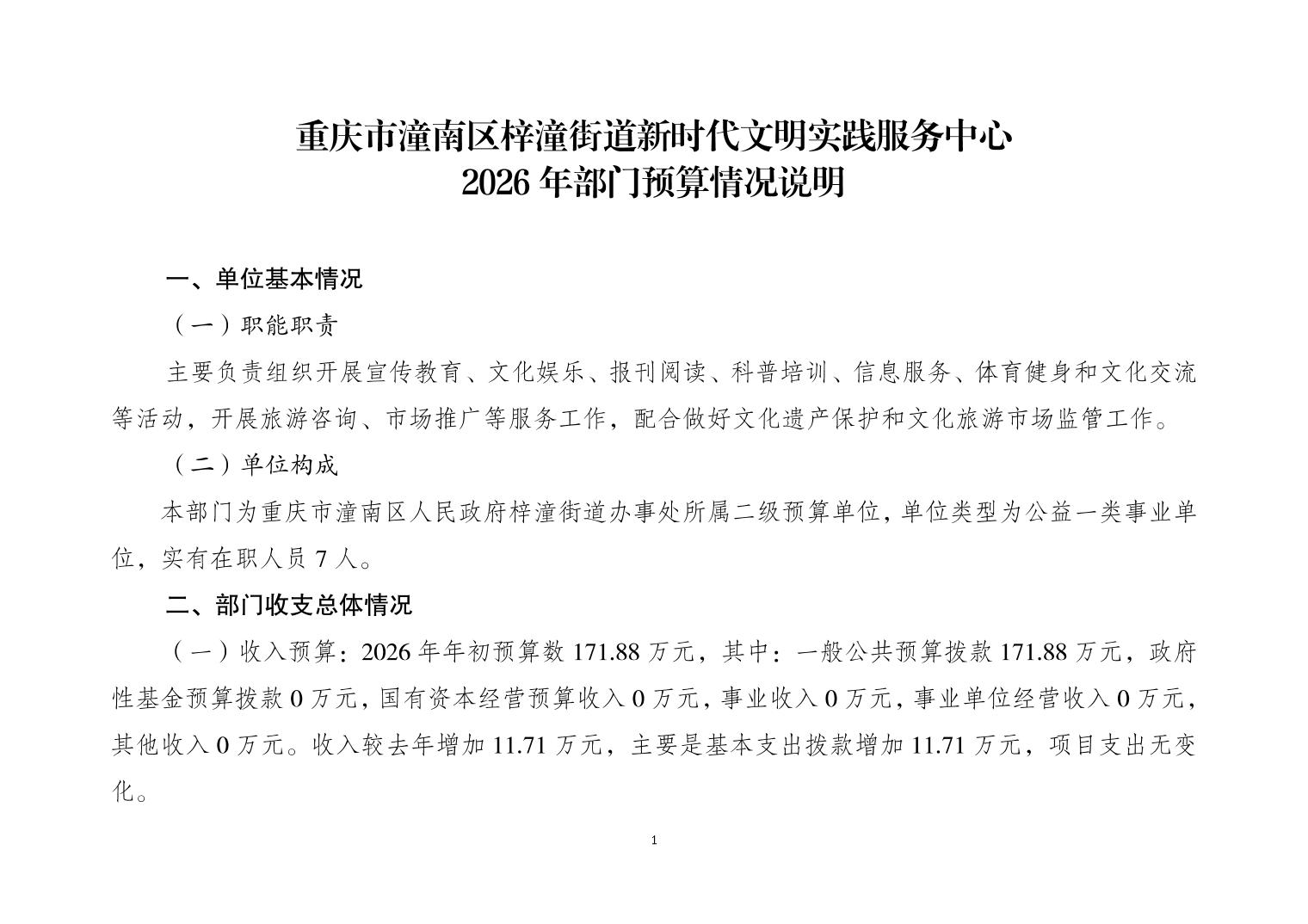 重庆市潼南区梓潼街道新时代文明实践服务中心2026年部门预算情况说明