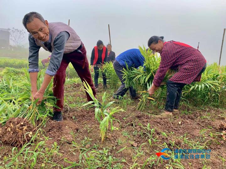 这几天,每天都有30多名村民忙着拔姜、挖姜、砍姜叶、装袋,忙个不停,一派丰收的场景。
