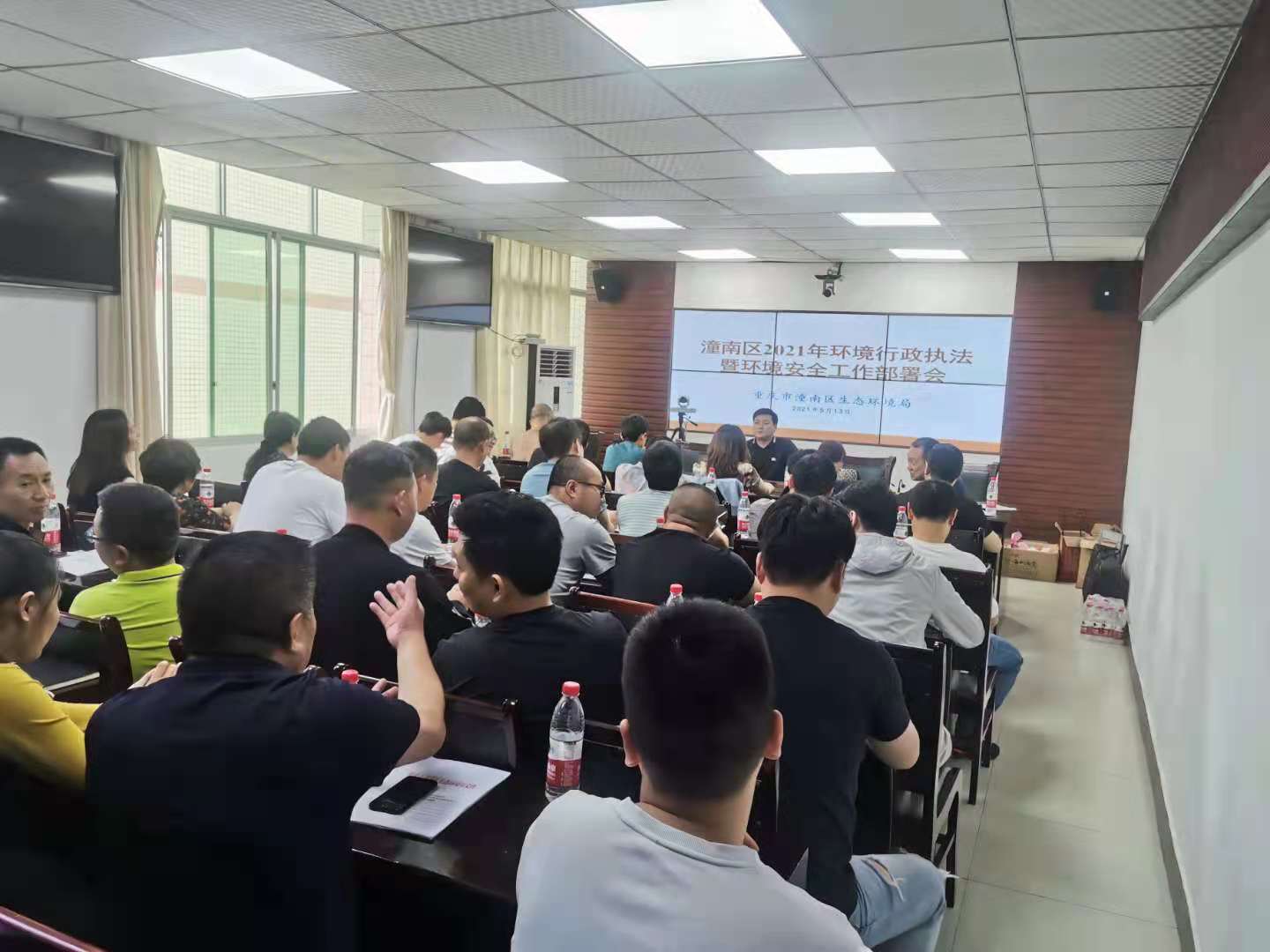 为深入开展“以案促建 提升环境应急能力”专项活动,持续推进行政执法重点工作,督促、引导重点企业切实落实环境管理主体责任,提升环境管理水平和风险防控能力。2021年5月13日,区生态环境局召集辖区40余家重点排污单位召开了2021年第二次环境行政执法暨环境安全工作部署会。