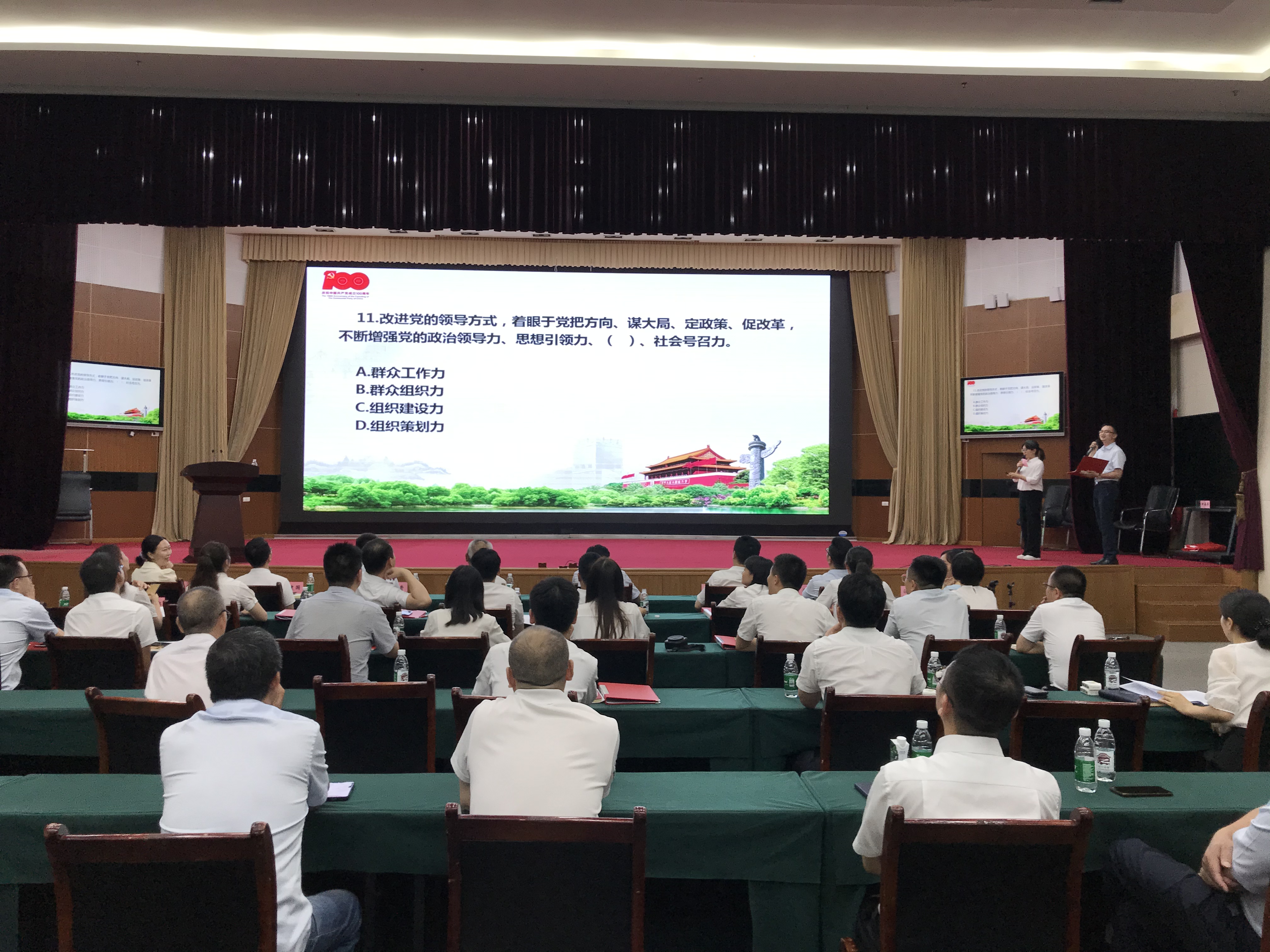 交流活动之后,开展了“学党史、强信念、跟党走”主题党史知识竞赛,全体党员精心准备、积极参与,经过现场必答、抢答和加赛几个答题环节的激烈角逐,最终机关三支部获得了比赛冠军。赛后,退休党员代表、“优秀共产党员”和新党员同志结合时代变迁谈党史、笃定实干创新绩和入党思想感悟,作了深入精彩的交流发言。