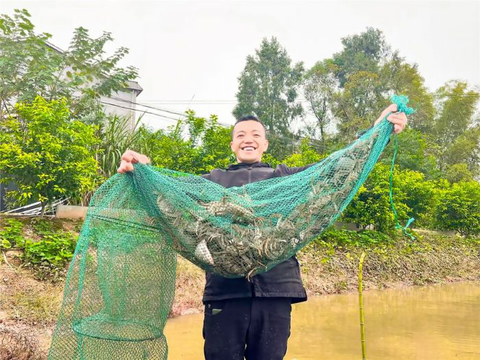 “现在已经预定了600单的大闸蟹,我们的大闸蟹全是用我们本地产的玉米、螺蛳、小鱼等进行投喂,不含任何人工饲料。这样产出来的大闸蟹蟹膏是红色的,口感绵密,吃起来跟咸蛋黄一样有一种沙沙的颗粒感,蟹肉也带有微微甜味,品质非常不错,客人们也非常喜爱。”黎龙满脸喜悦地说。