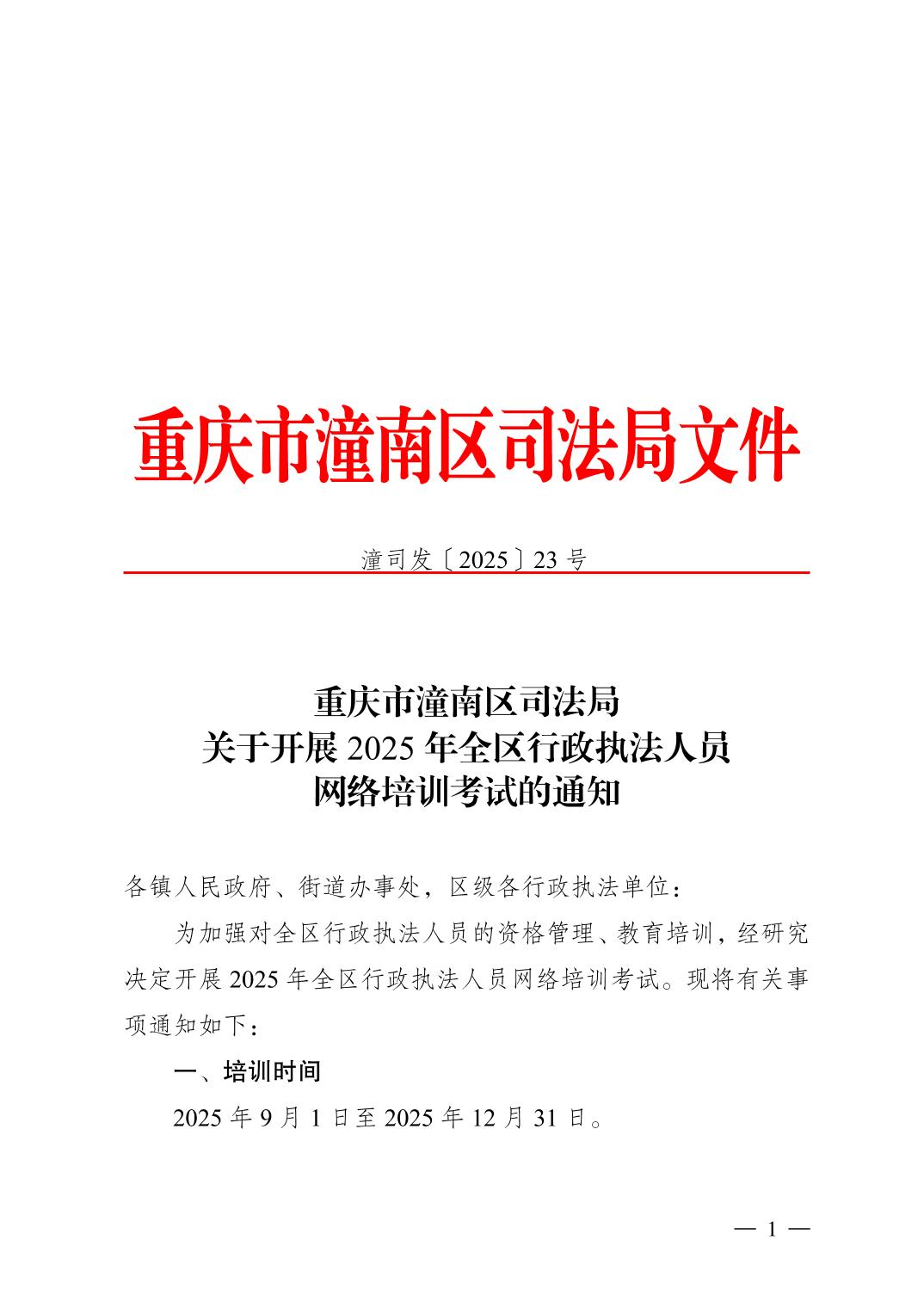 潼司发〔2025〕23号 关于开展2025年全区行政执法人员网络培训考试的通知