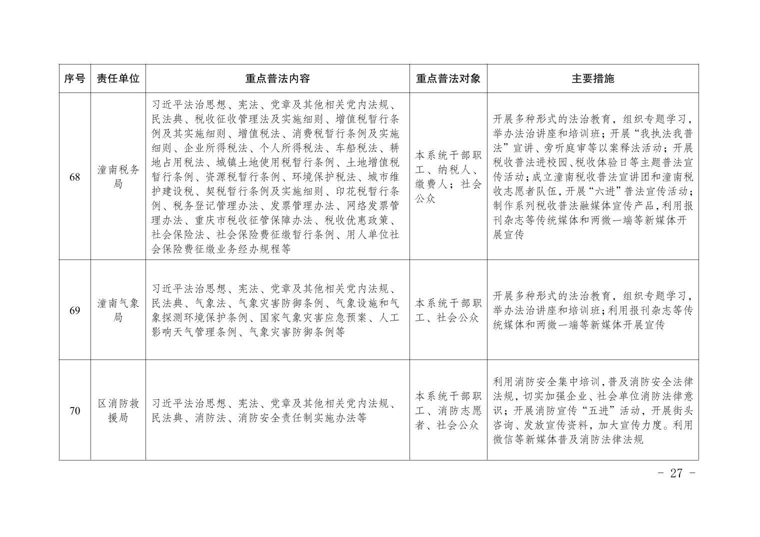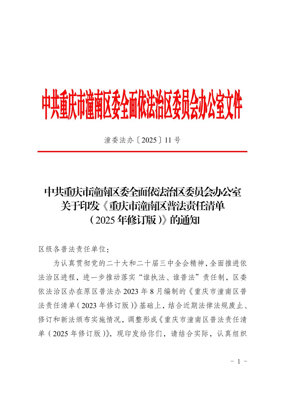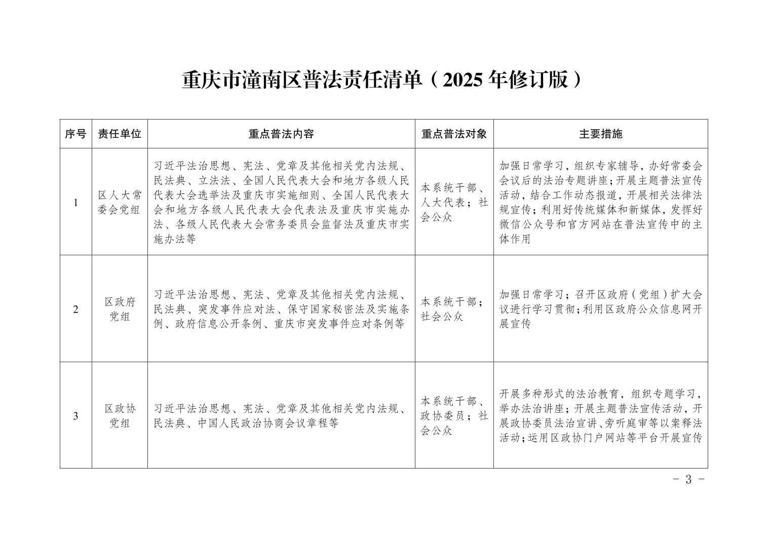 关于印发《重庆市潼南区普法责任清单(2025年修订版)》的通知