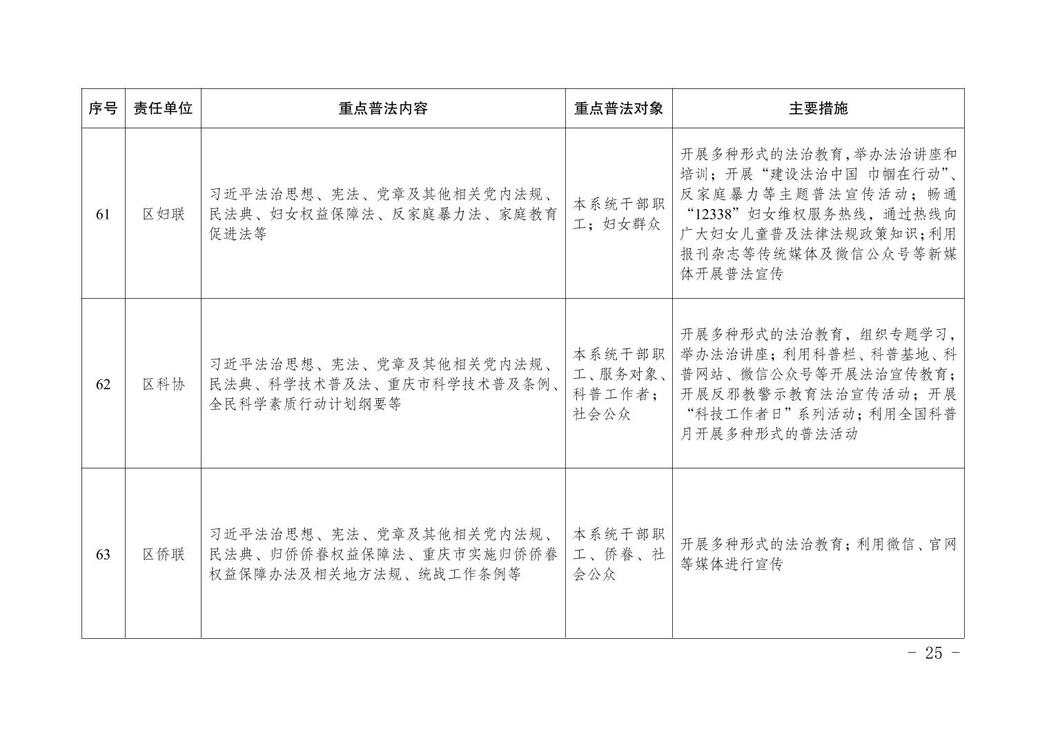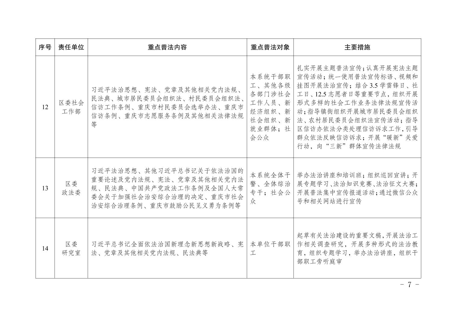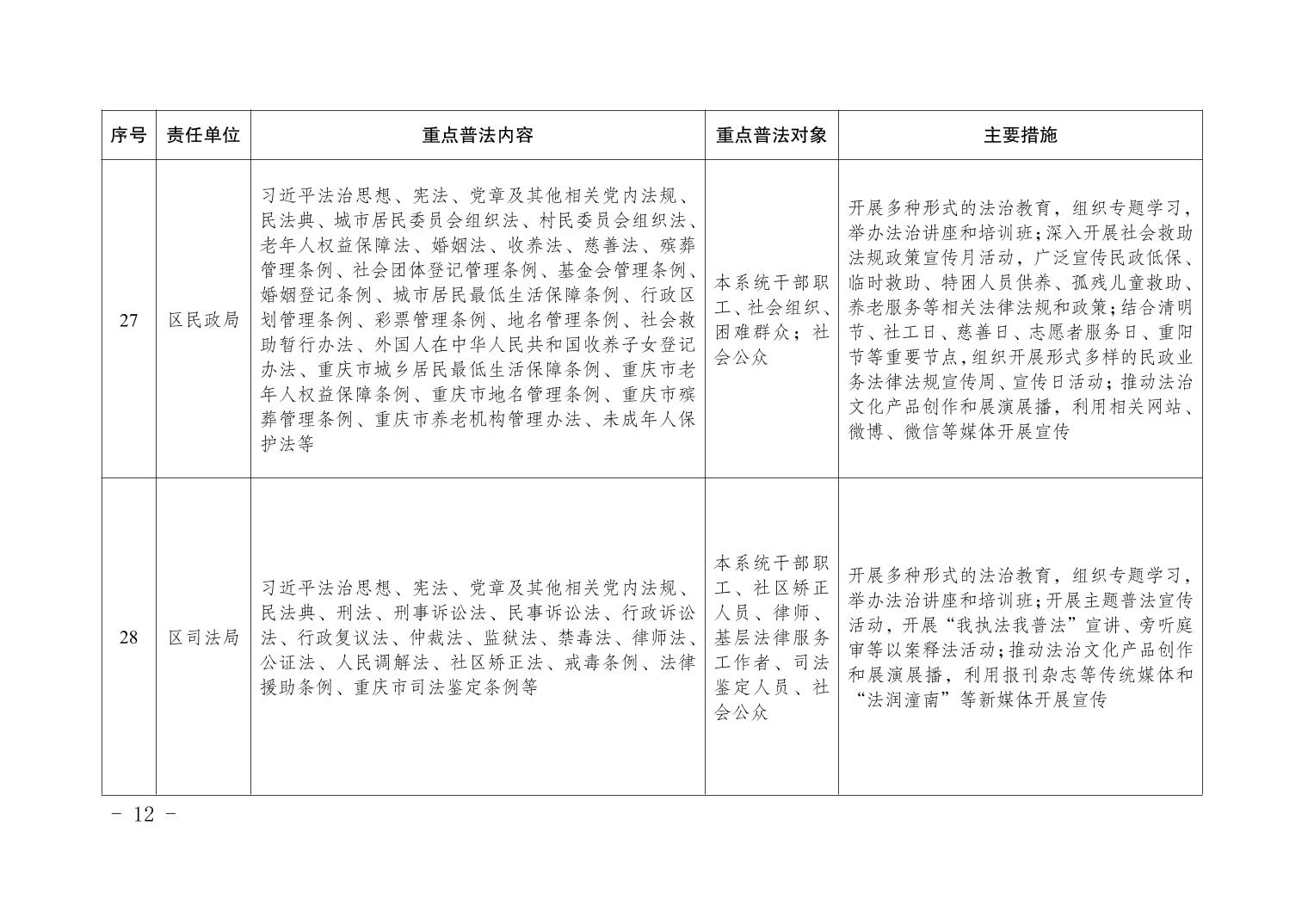 关于印发《重庆市潼南区普法责任清单(2025年修订版)》的通知