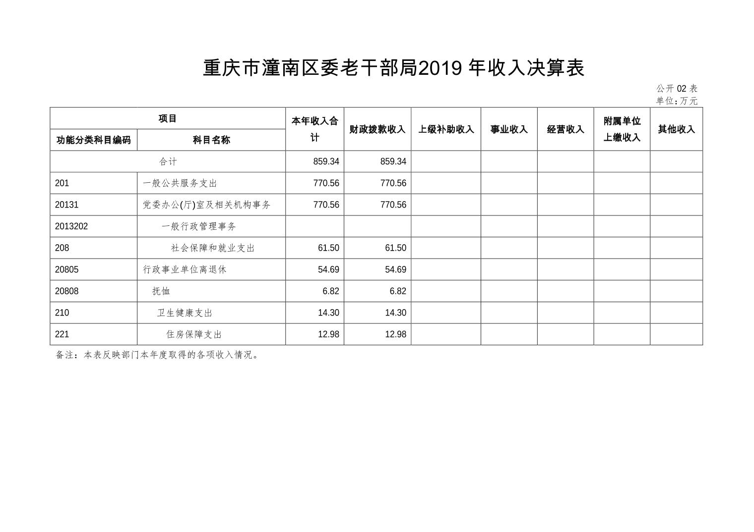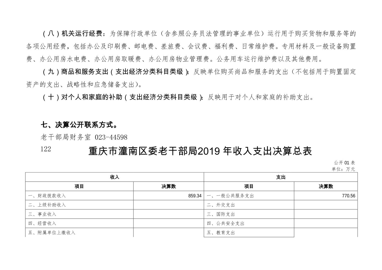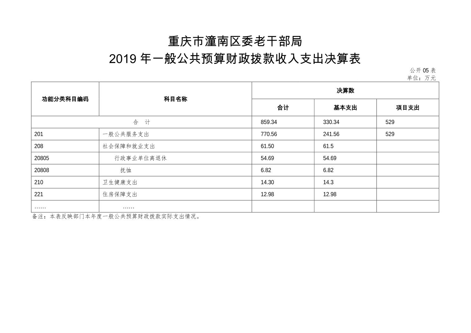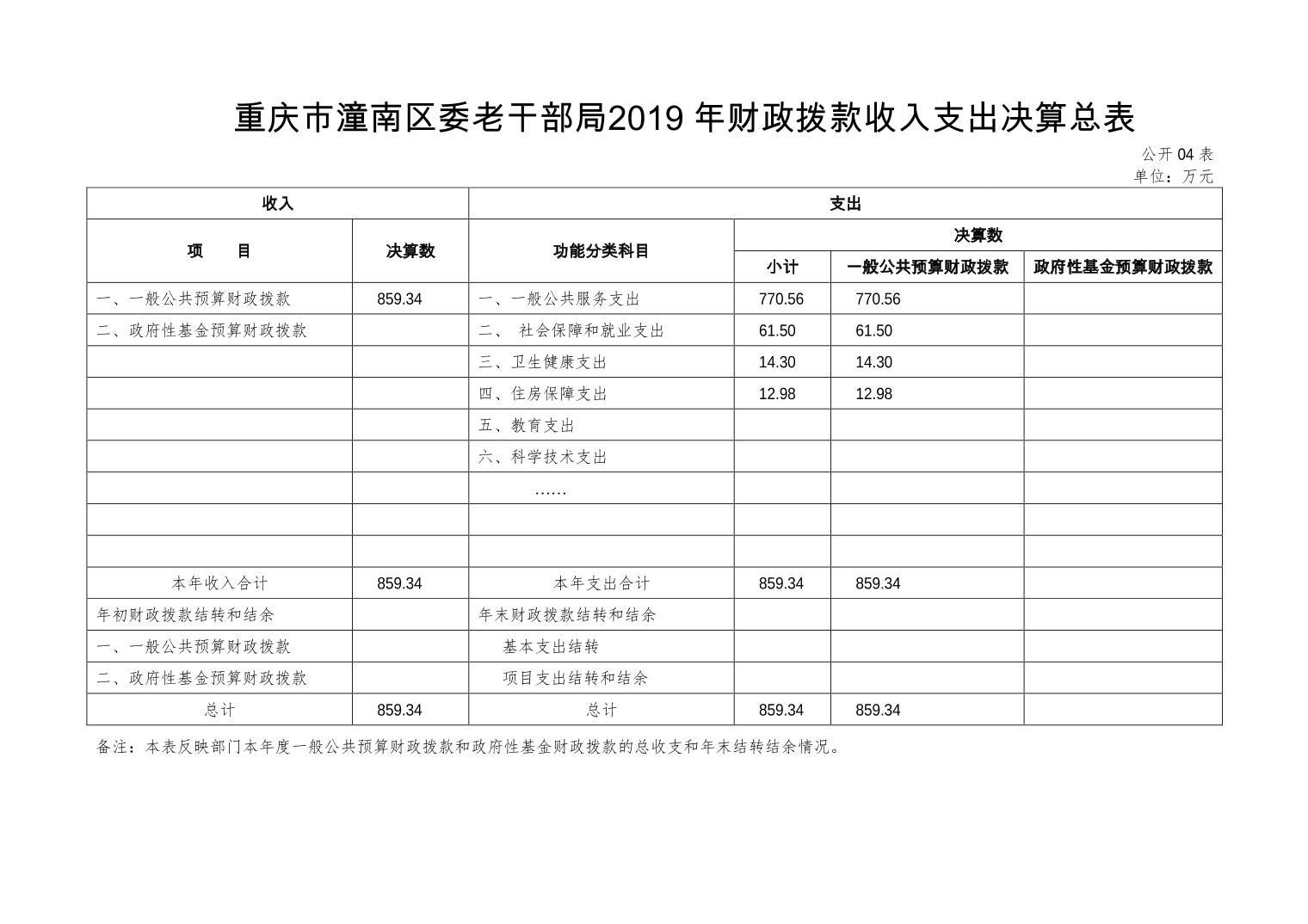 中共重庆市潼南区委老干部局2019年部门决算公开