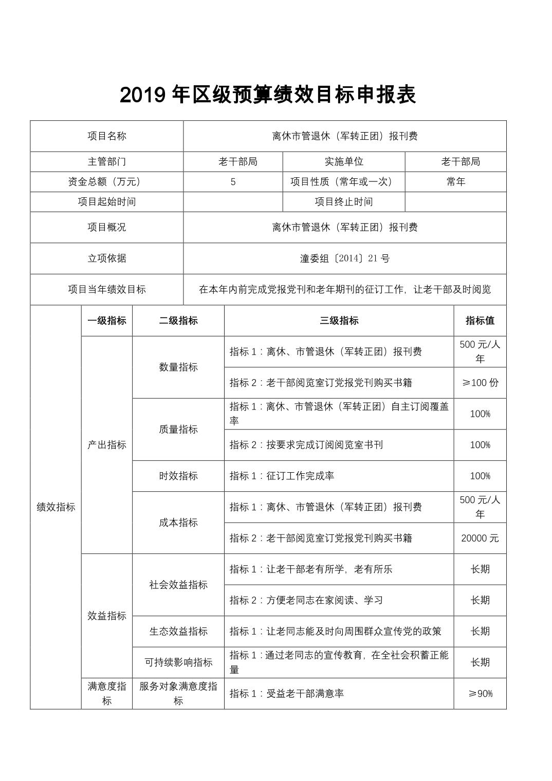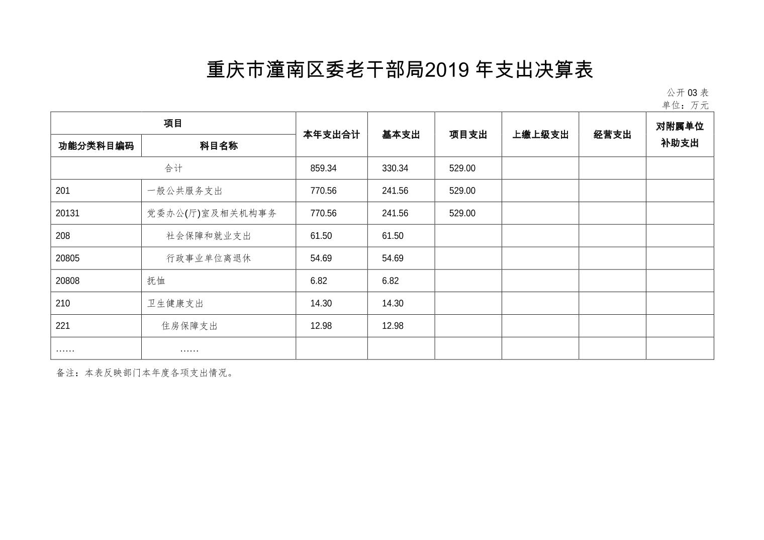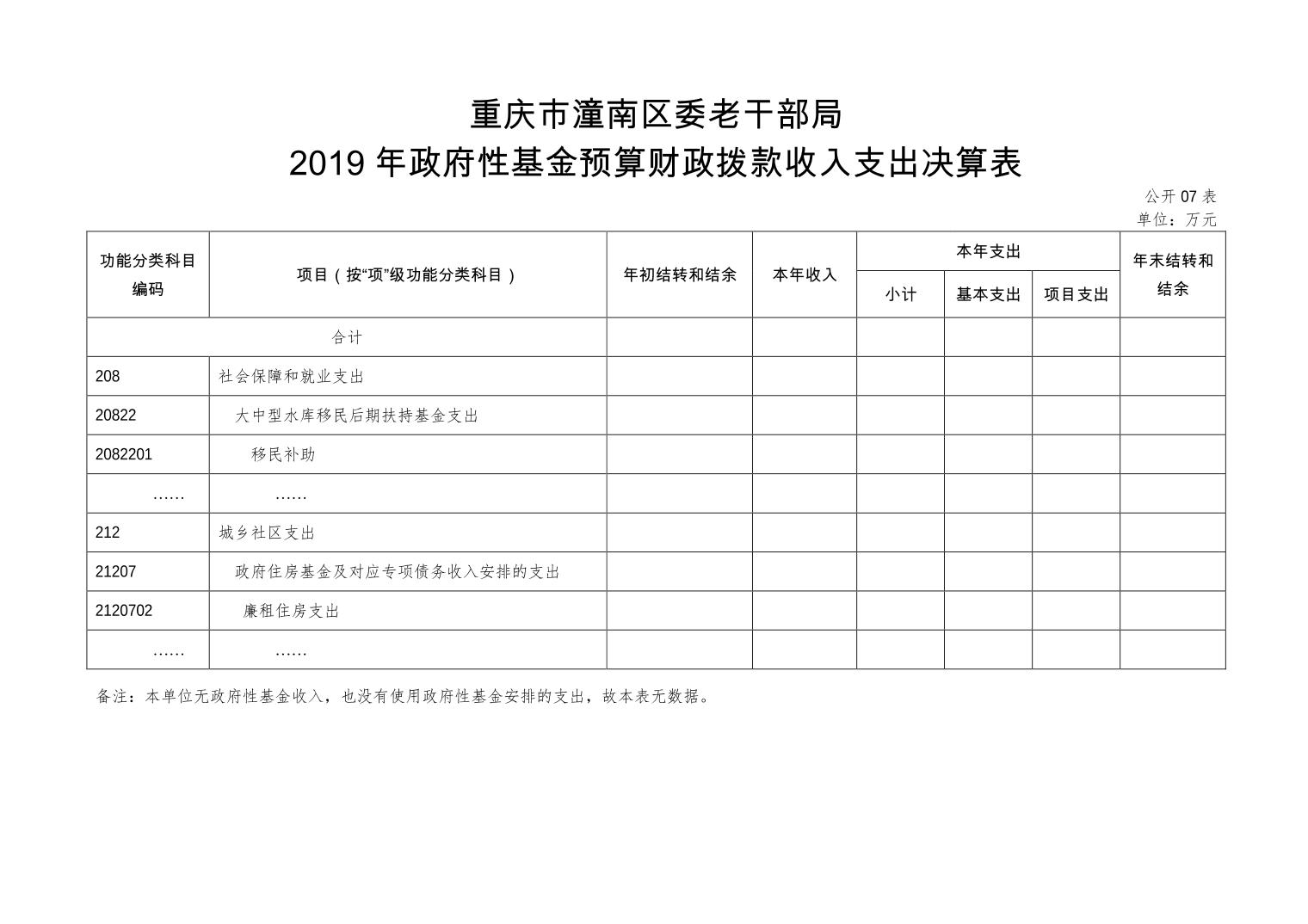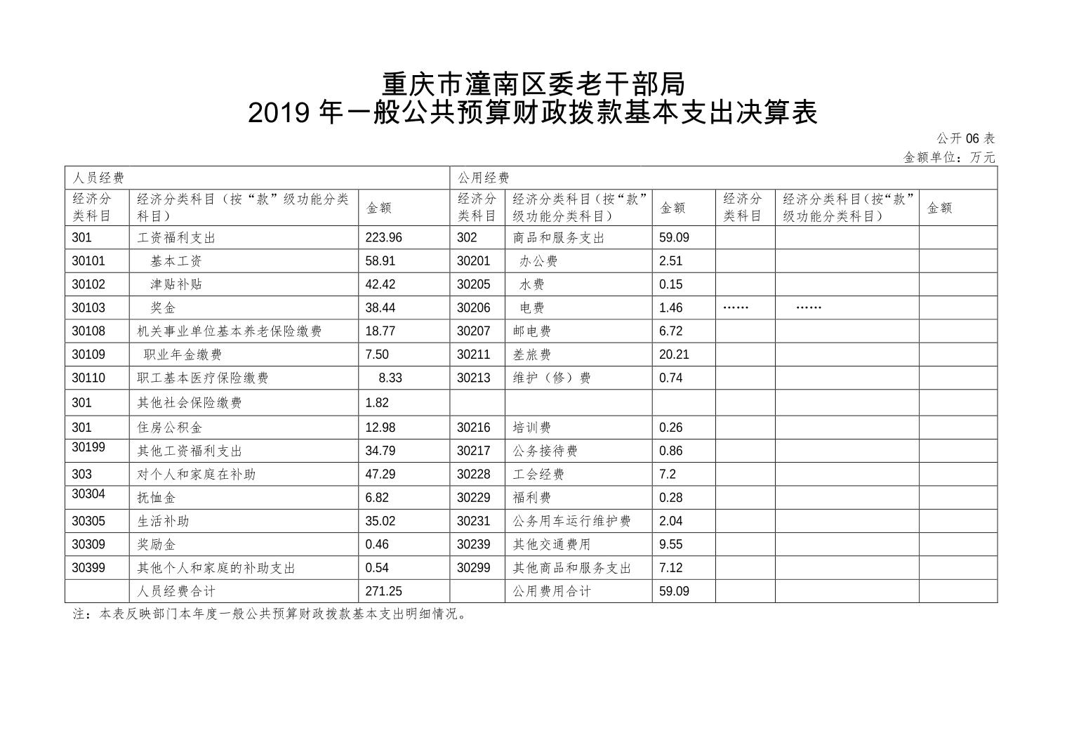 中共重庆市潼南区委老干部局2019年部门决算公开