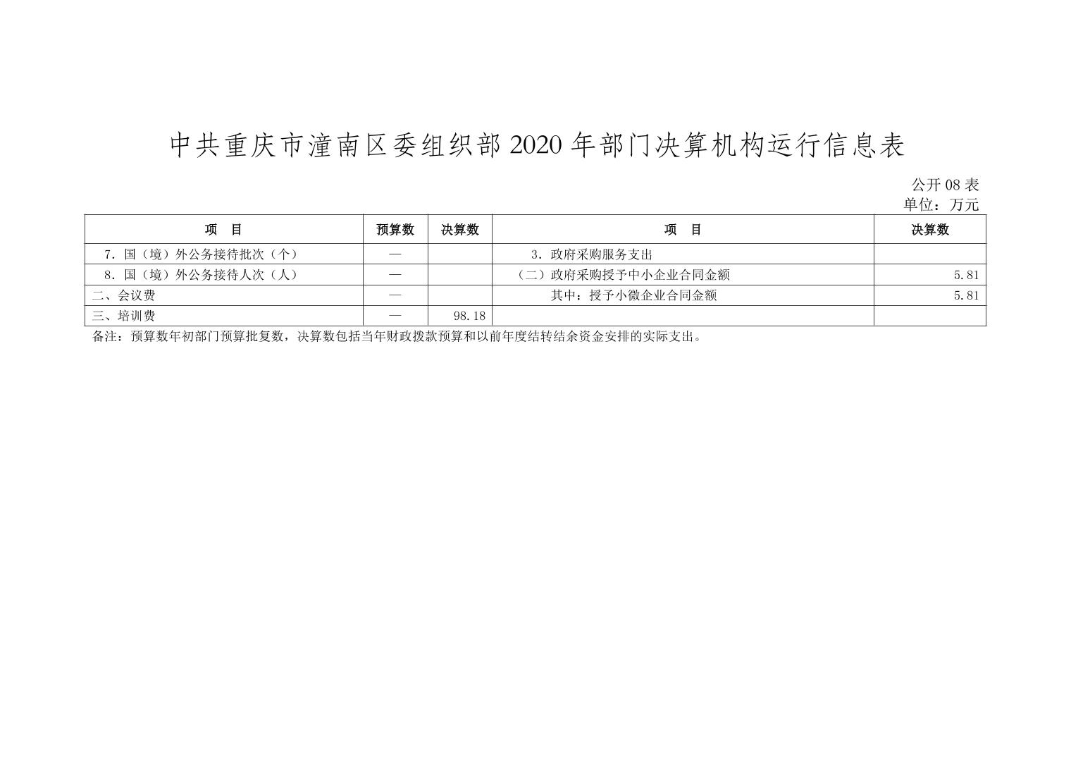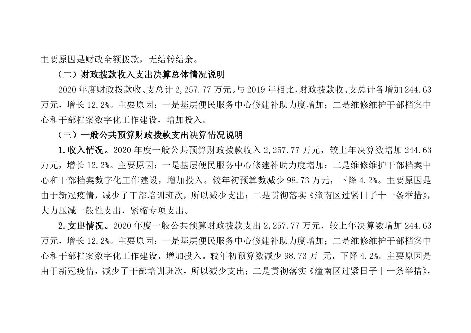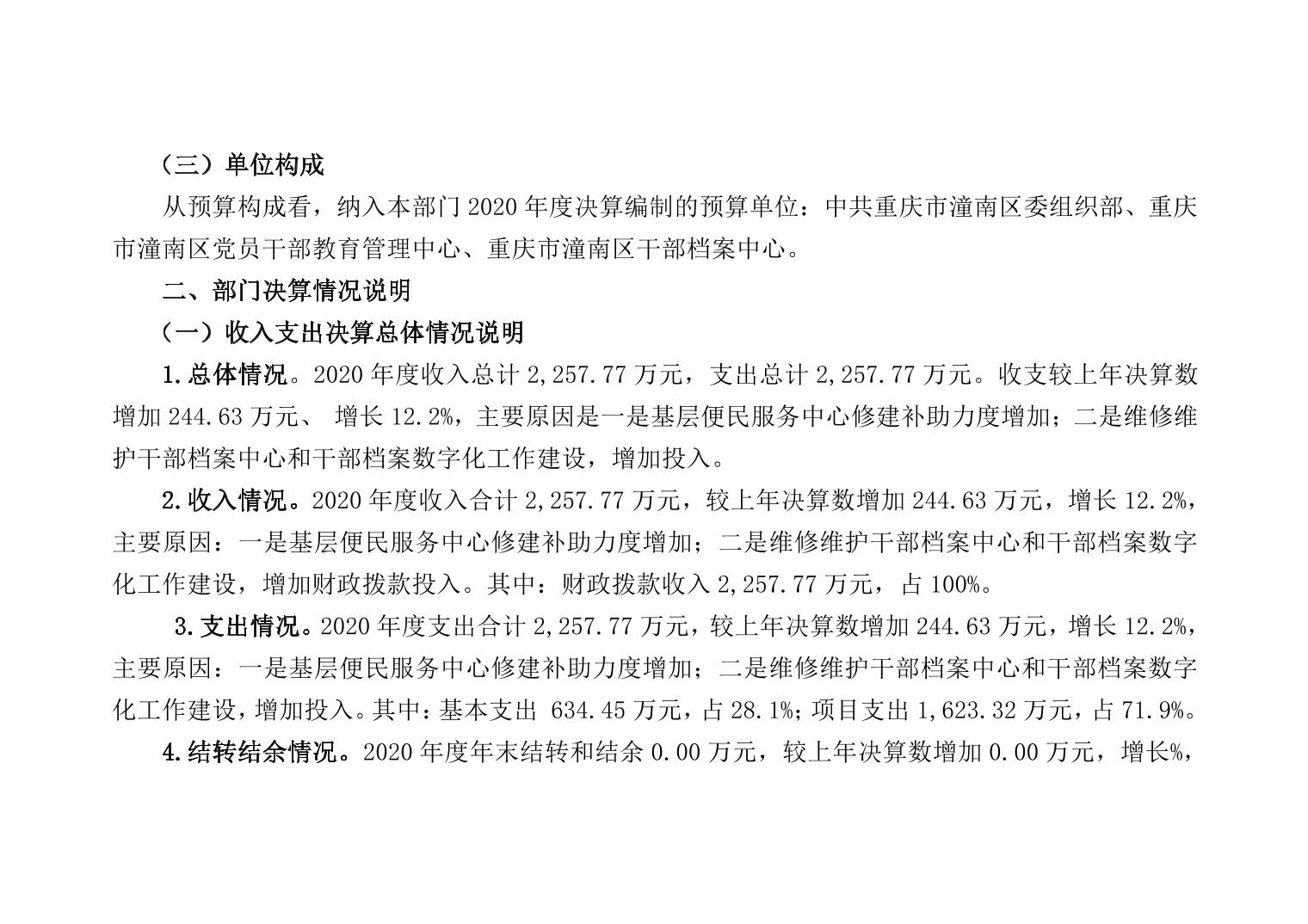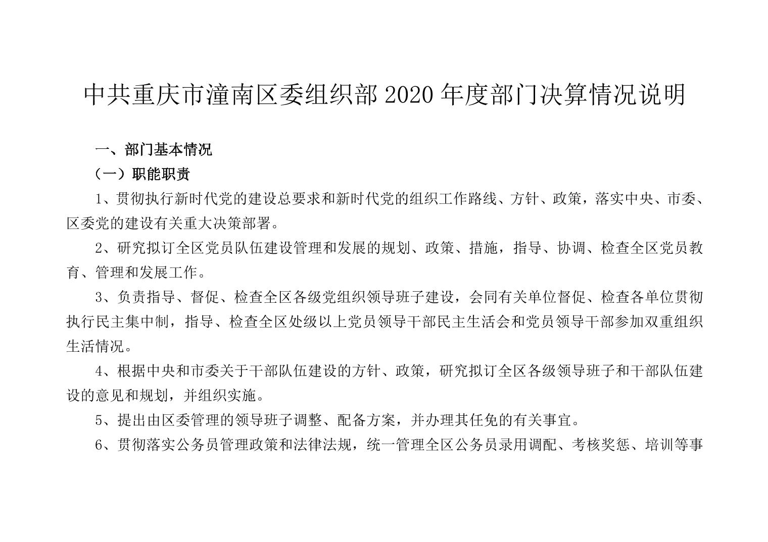中共重庆市潼南区委组织部2020年部门决算公开