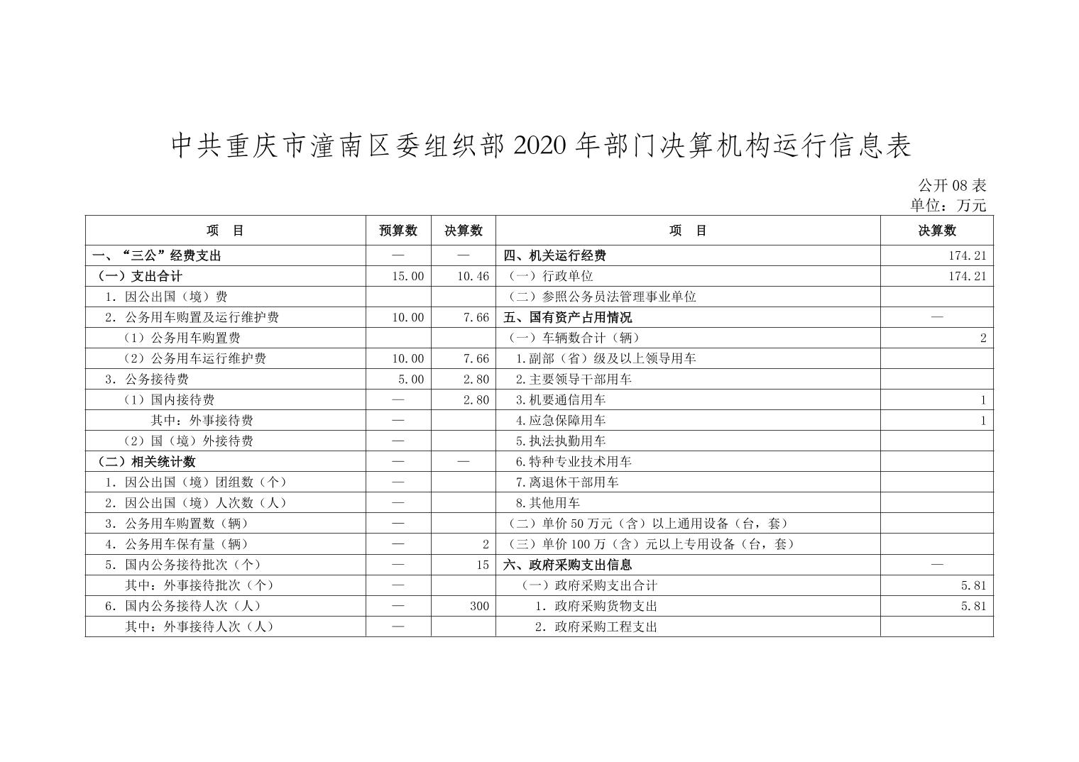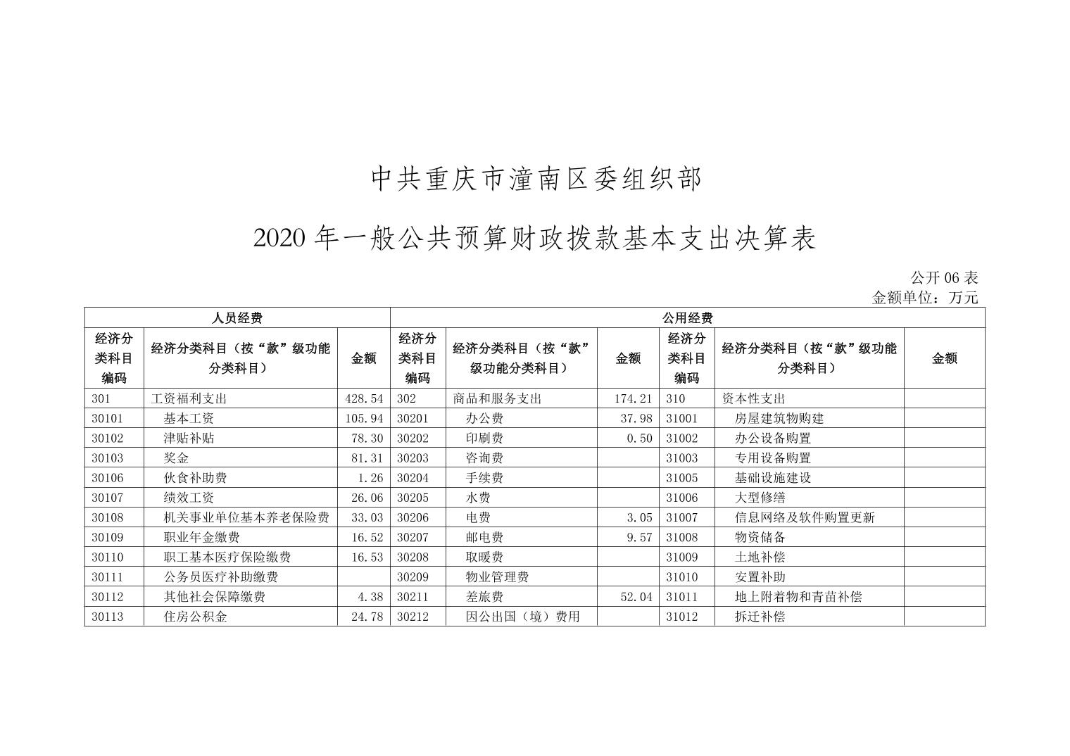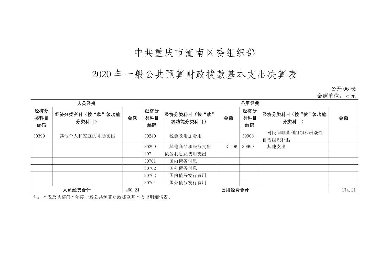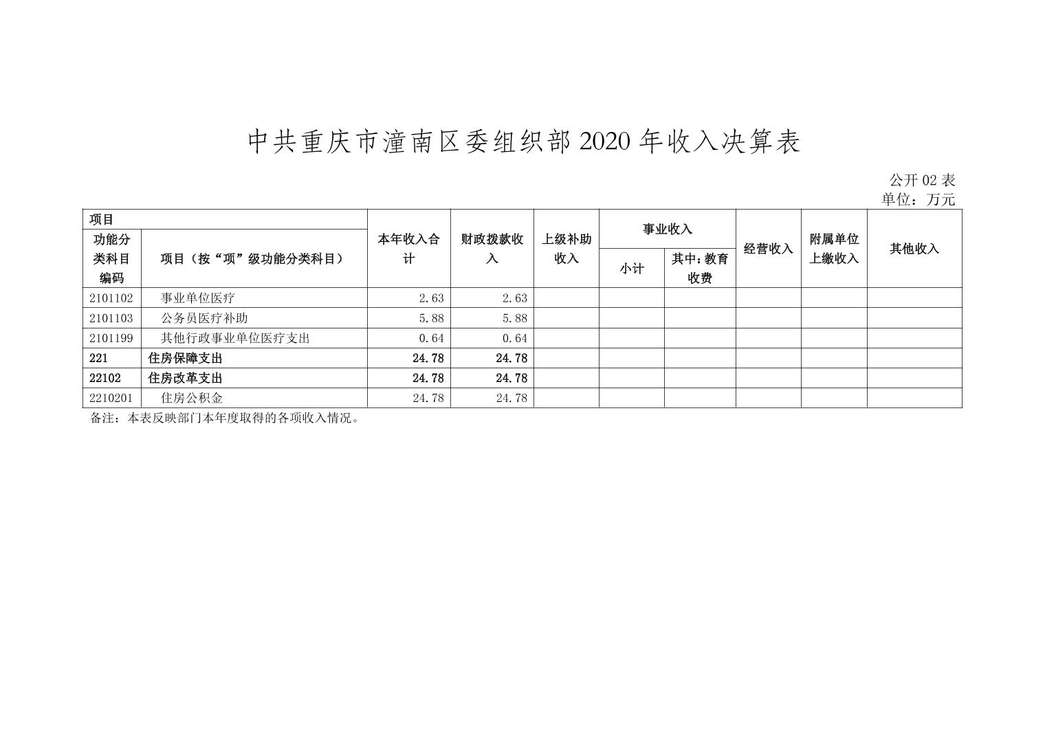 中共重庆市潼南区委组织部2020年部门决算公开