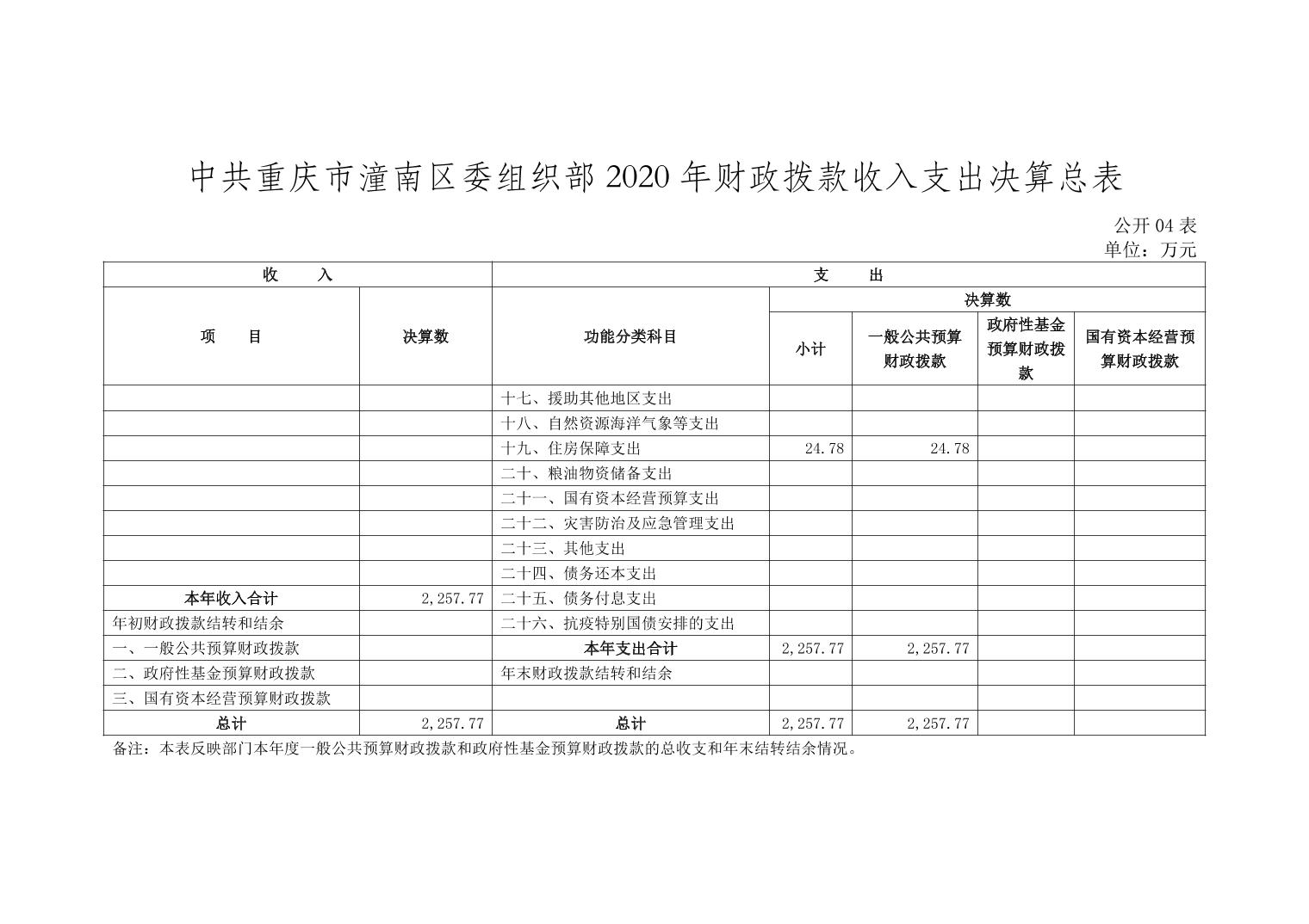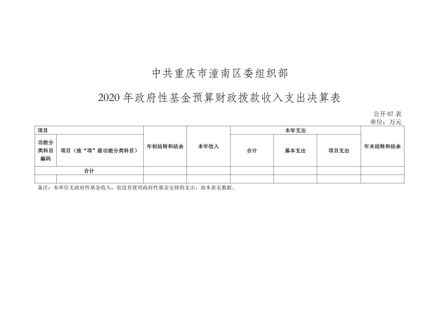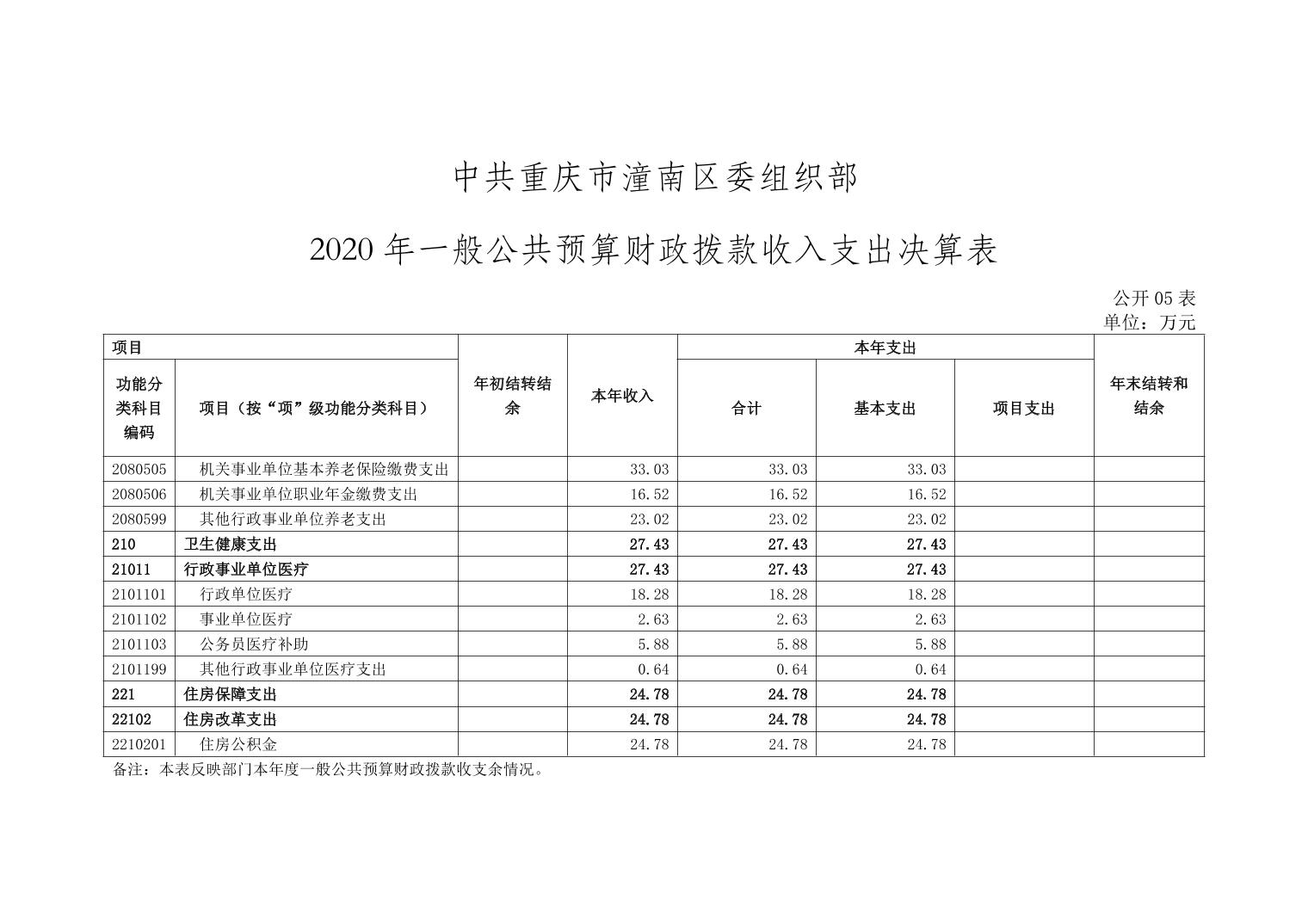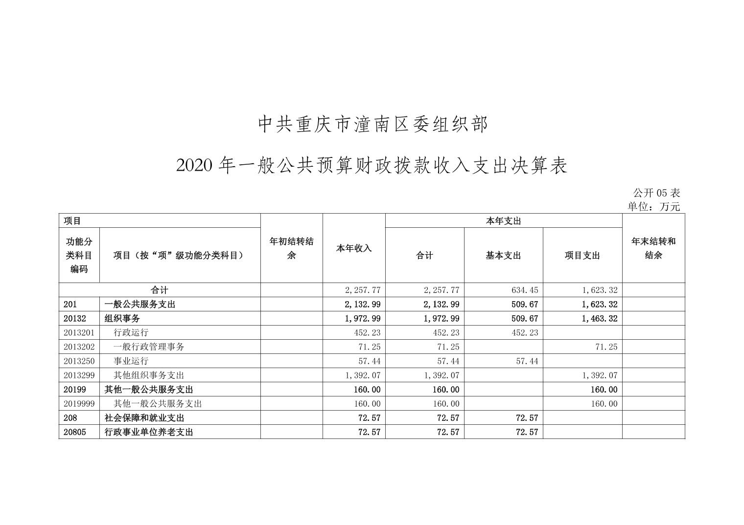 中共重庆市潼南区委组织部2020年部门决算公开