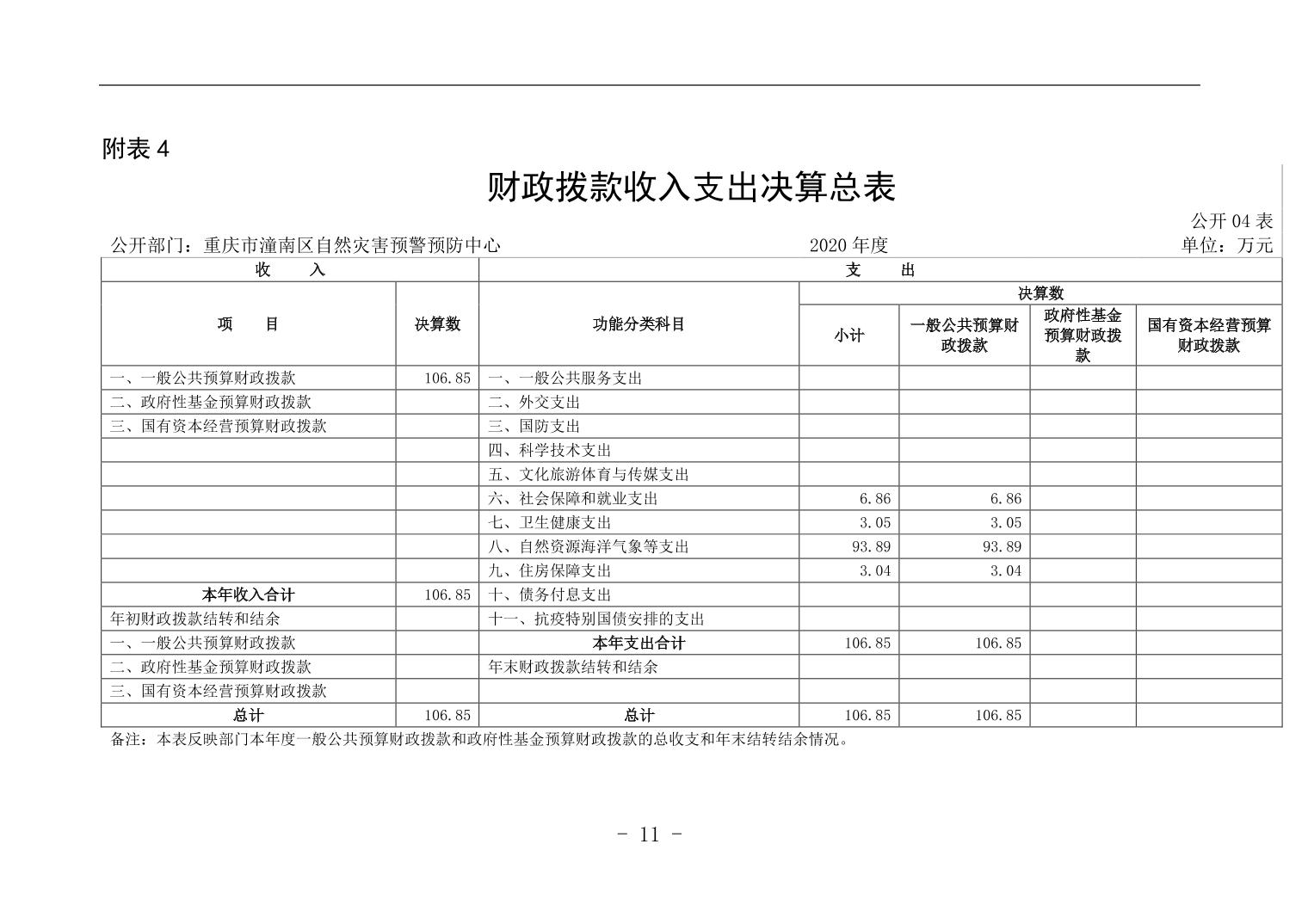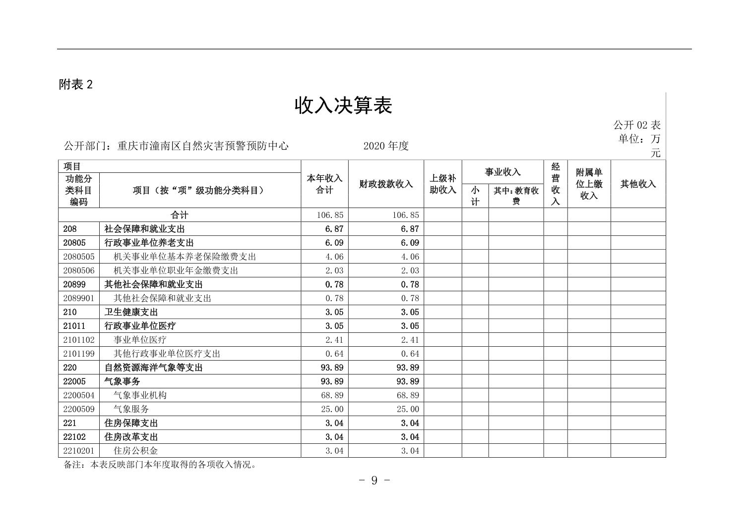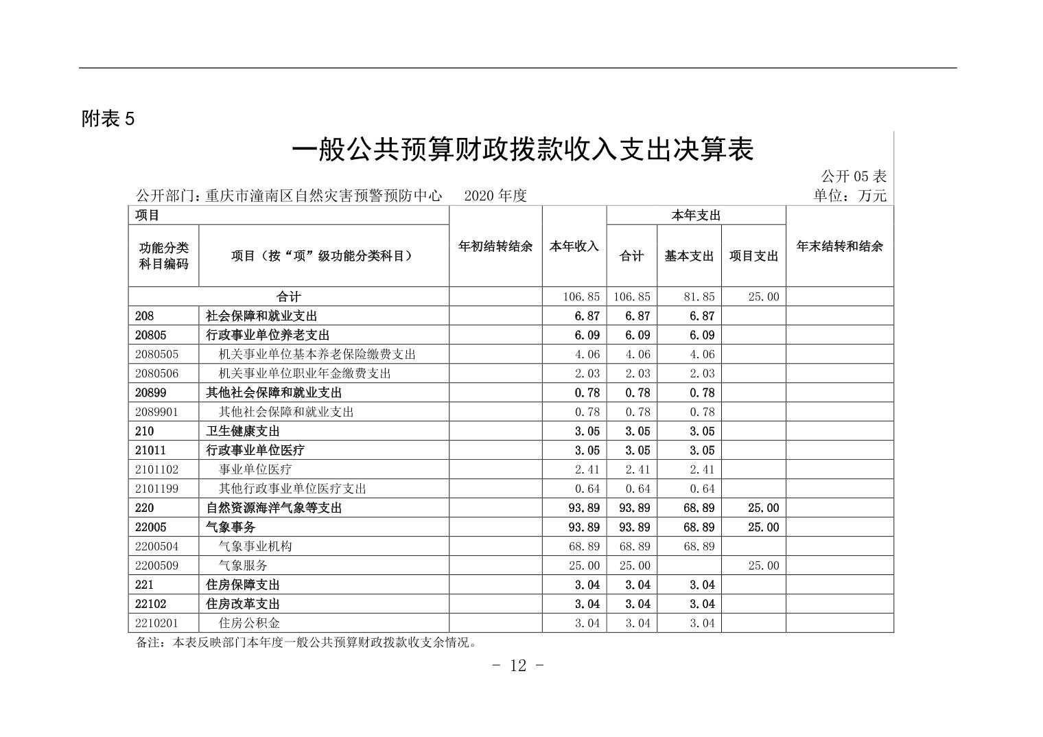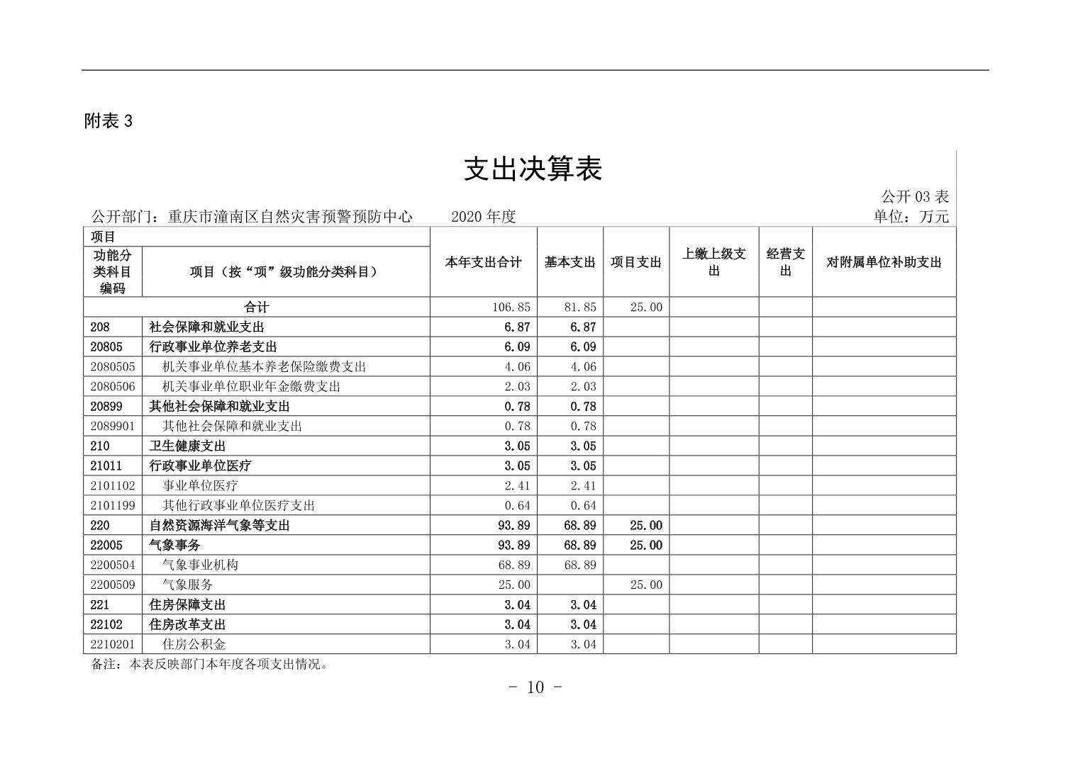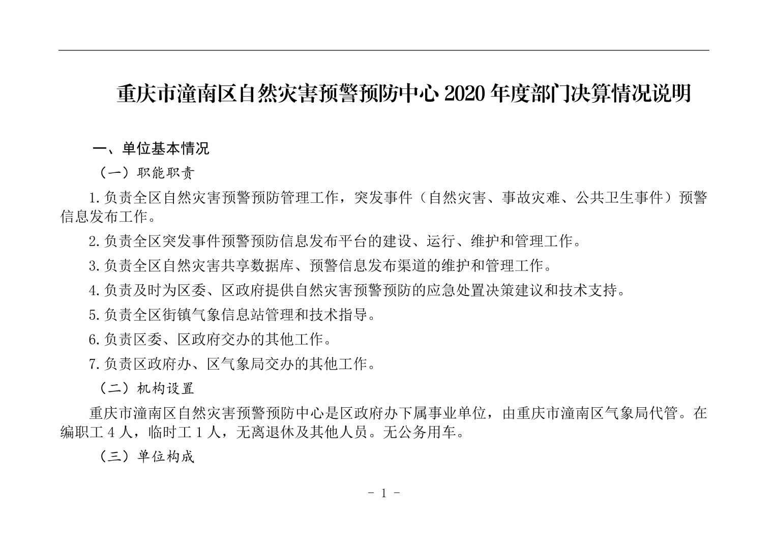 重庆市潼南区自然灾害预警预防中心2020年部门决算公开