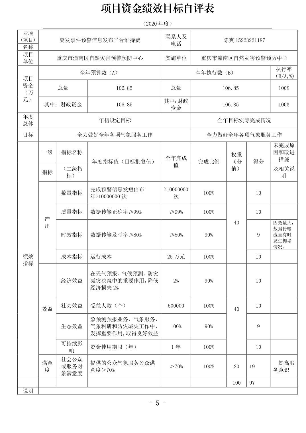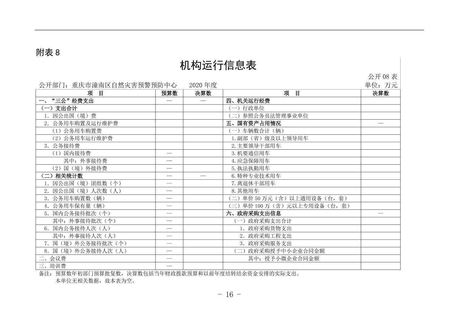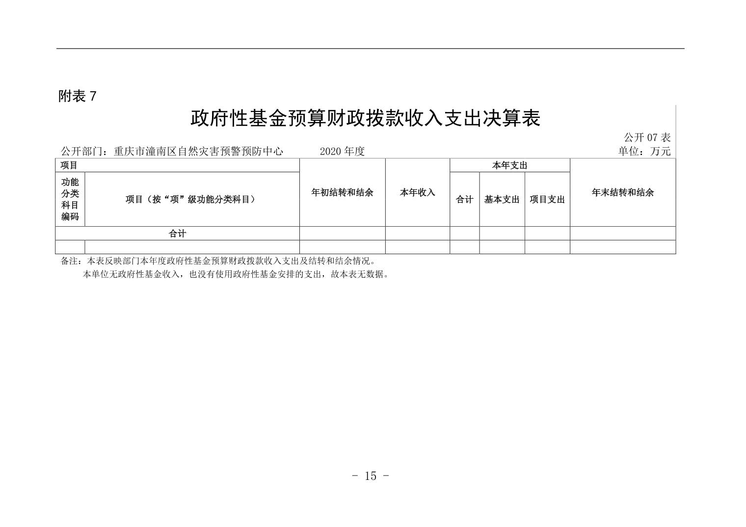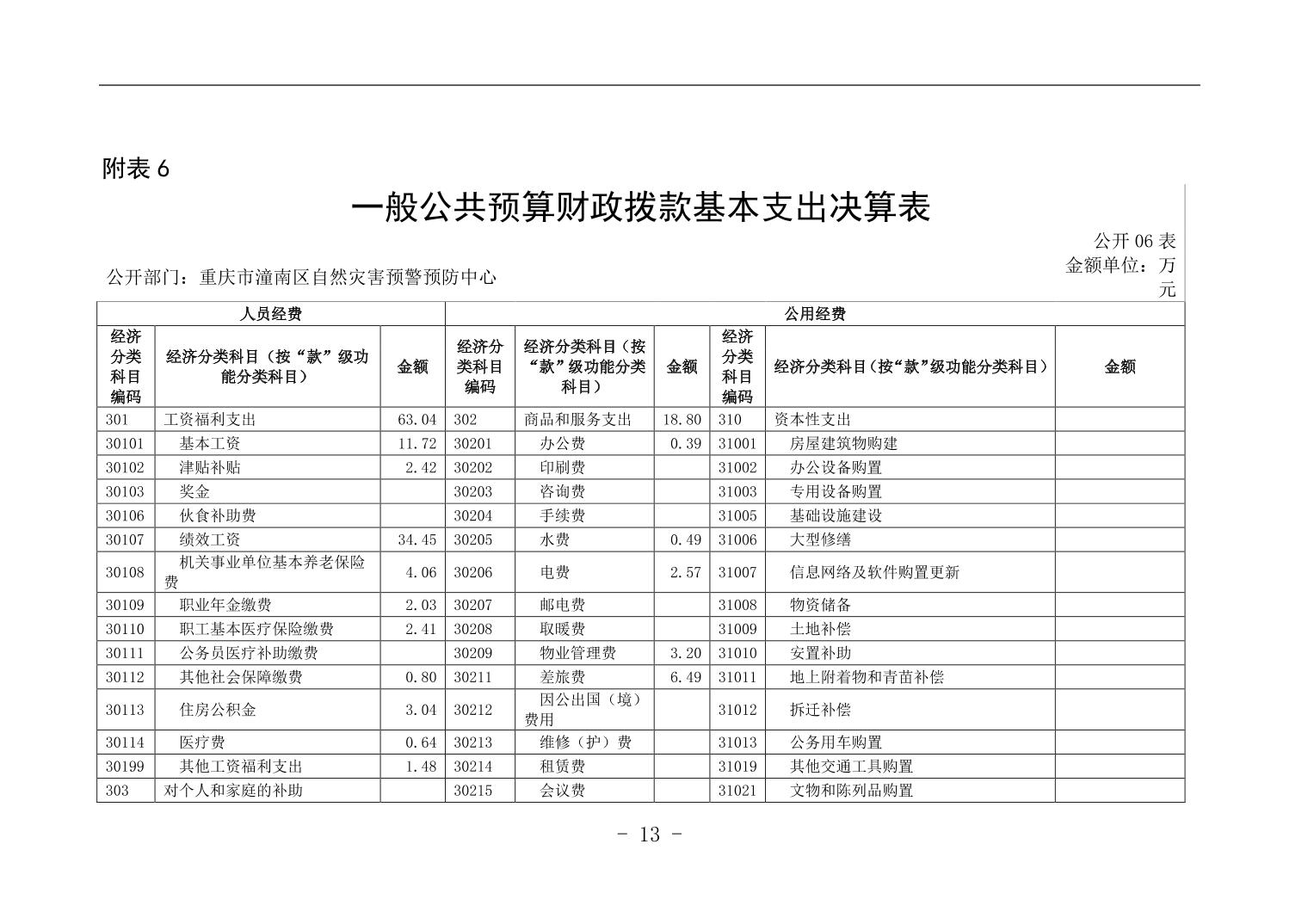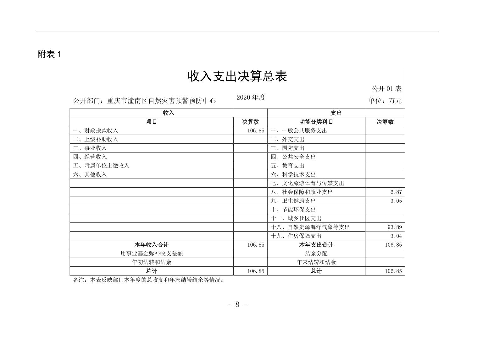 重庆市潼南区自然灾害预警预防中心2020年部门决算公开