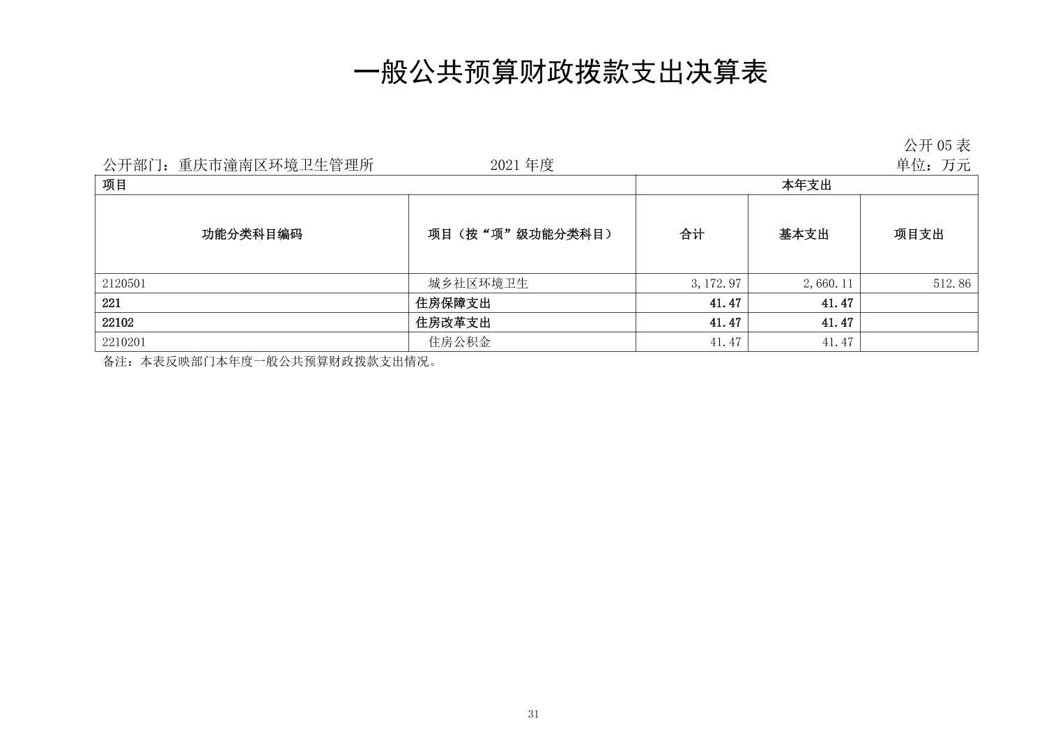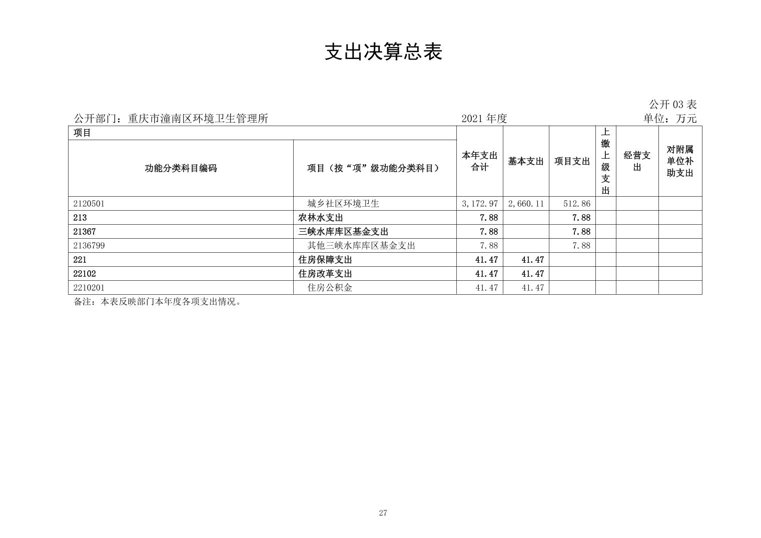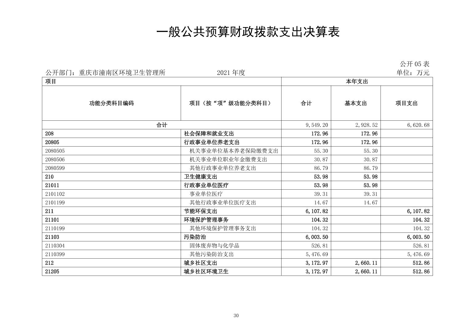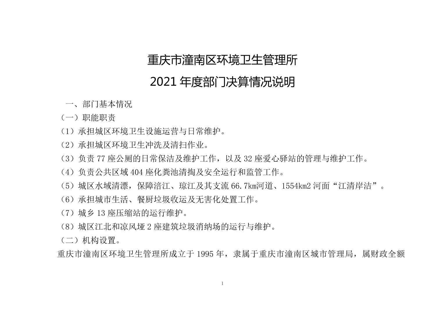 重庆市潼南区环境卫生管理所2021年度部门决算公开