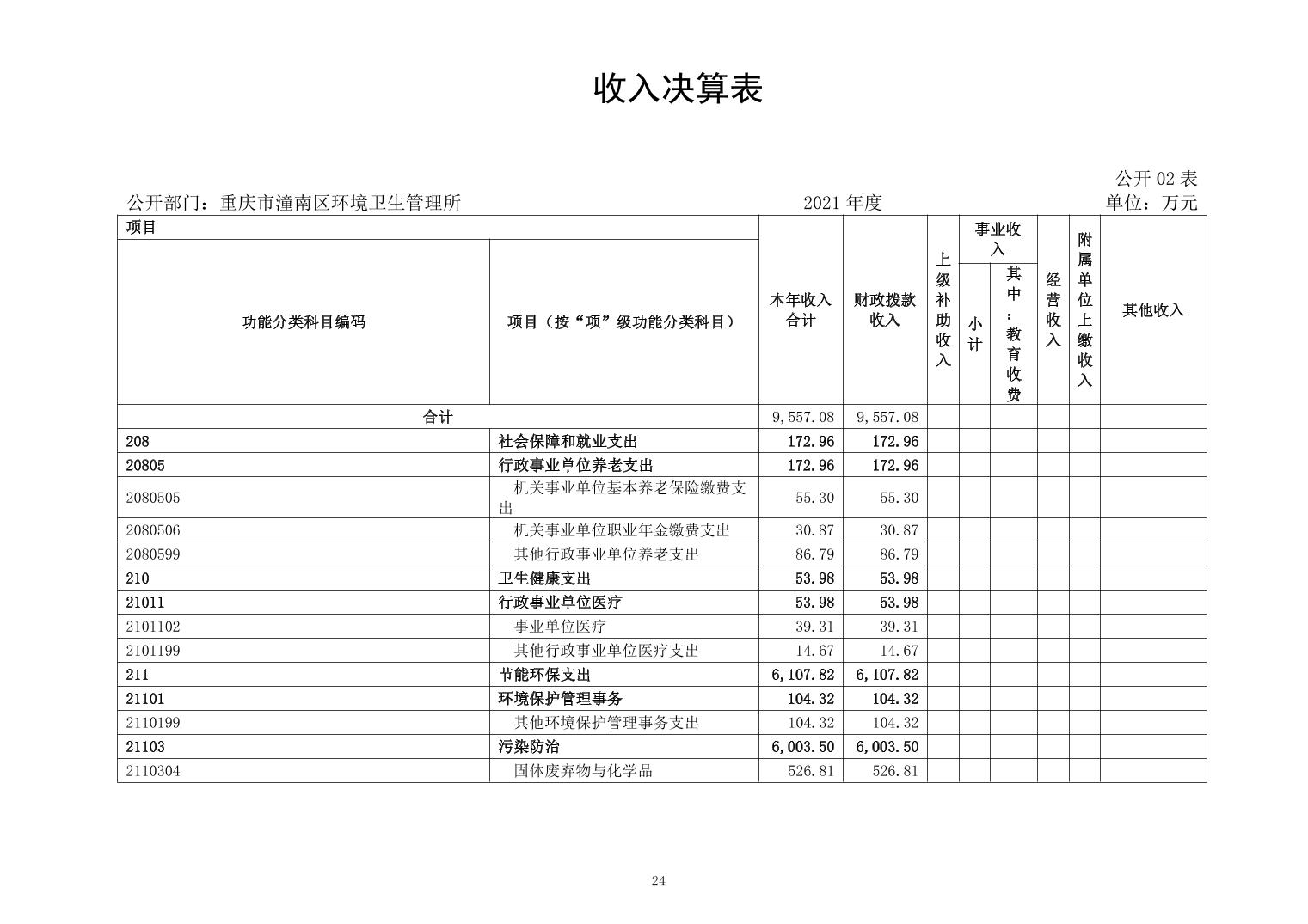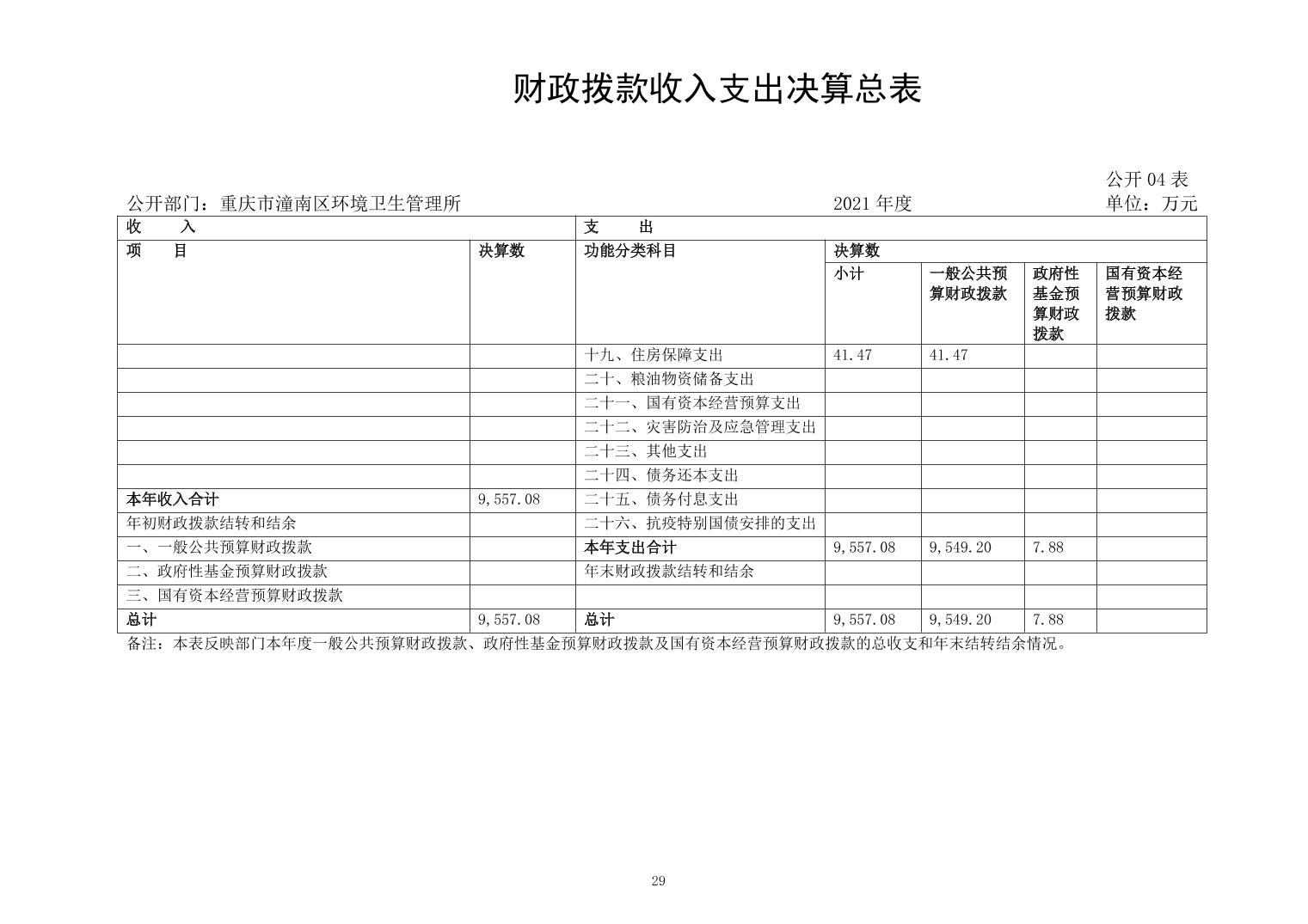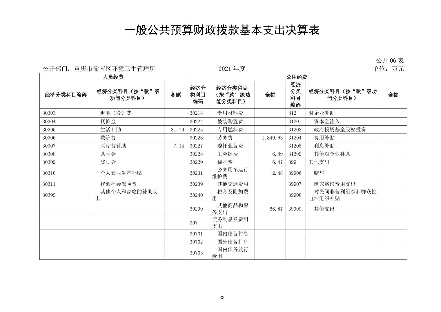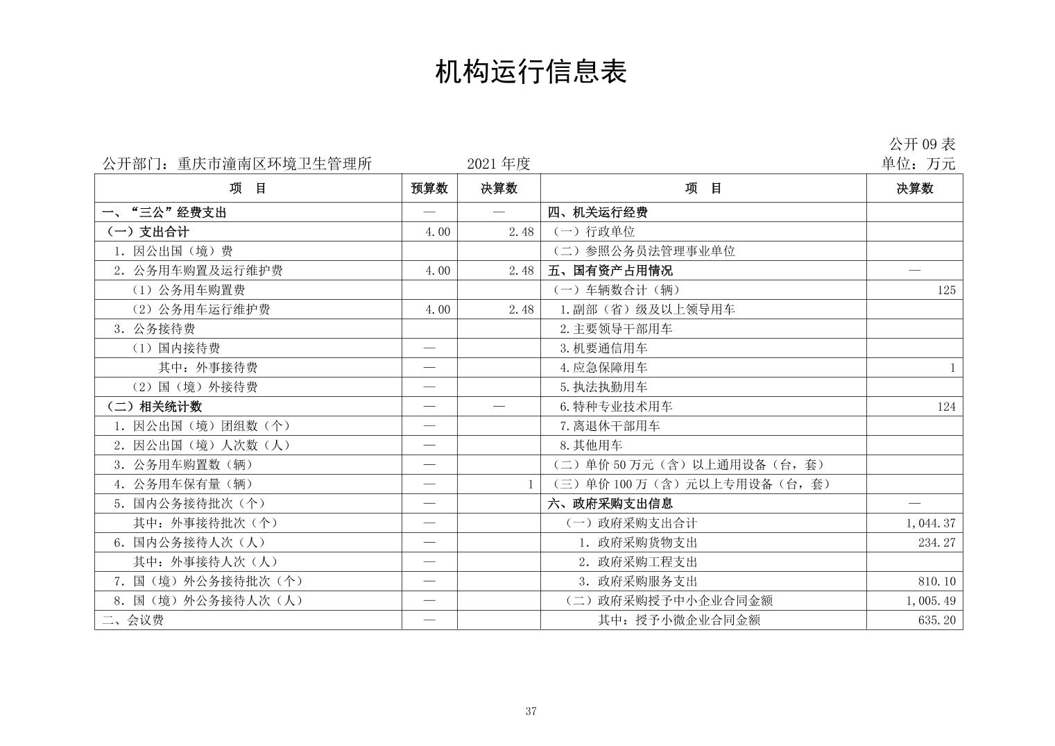 重庆市潼南区环境卫生管理所2021年度部门决算公开