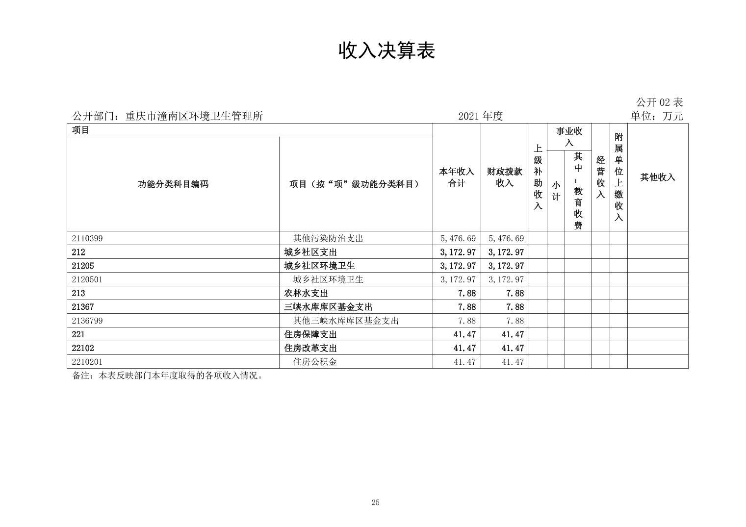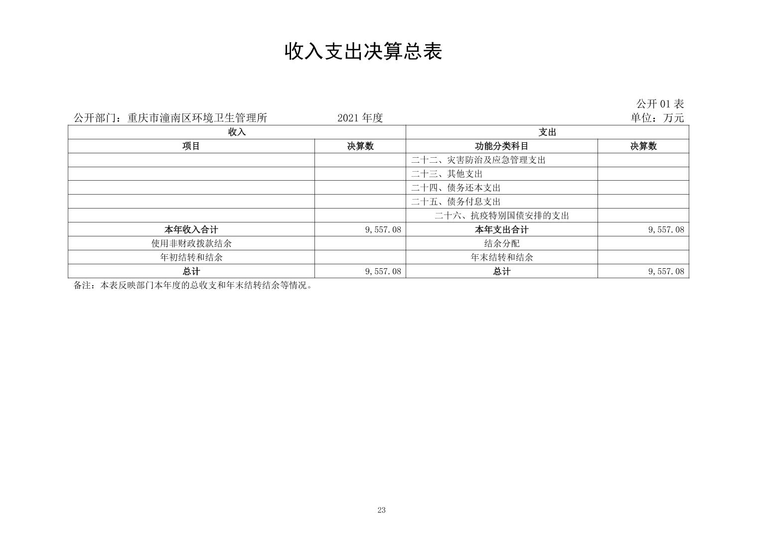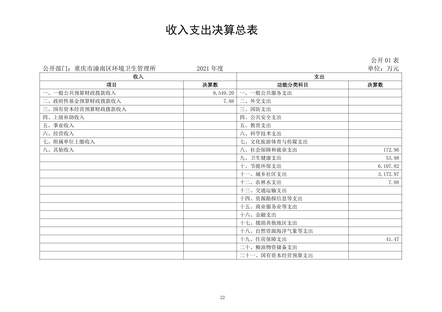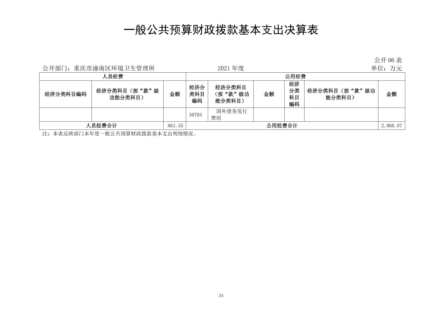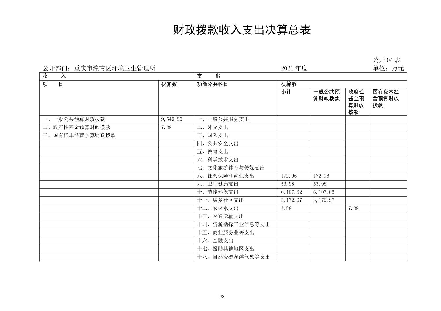 重庆市潼南区环境卫生管理所2021年度部门决算公开