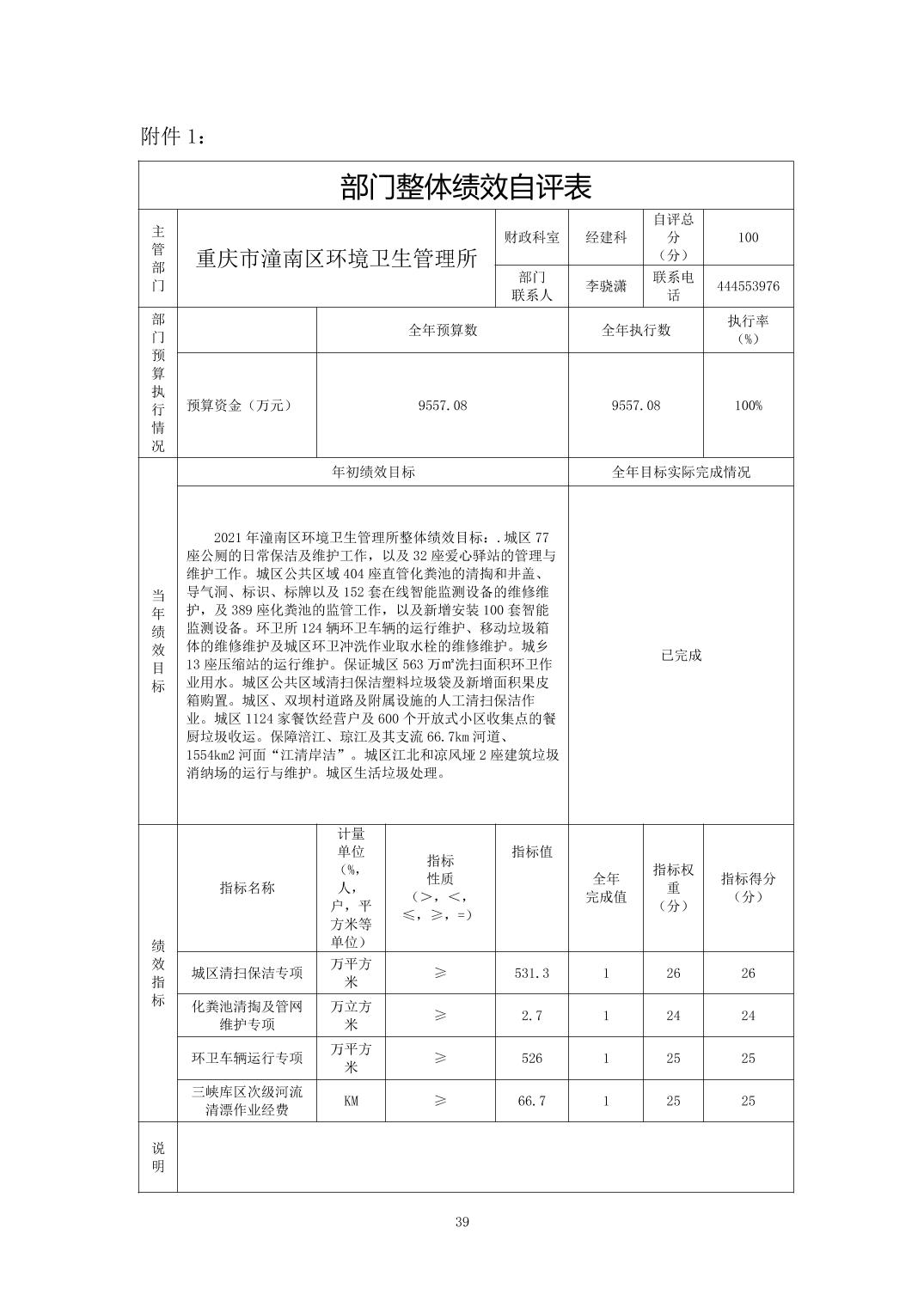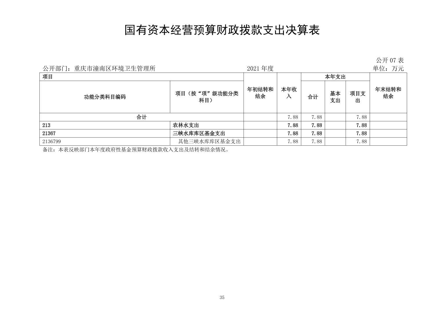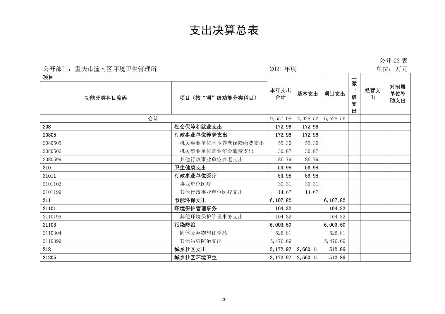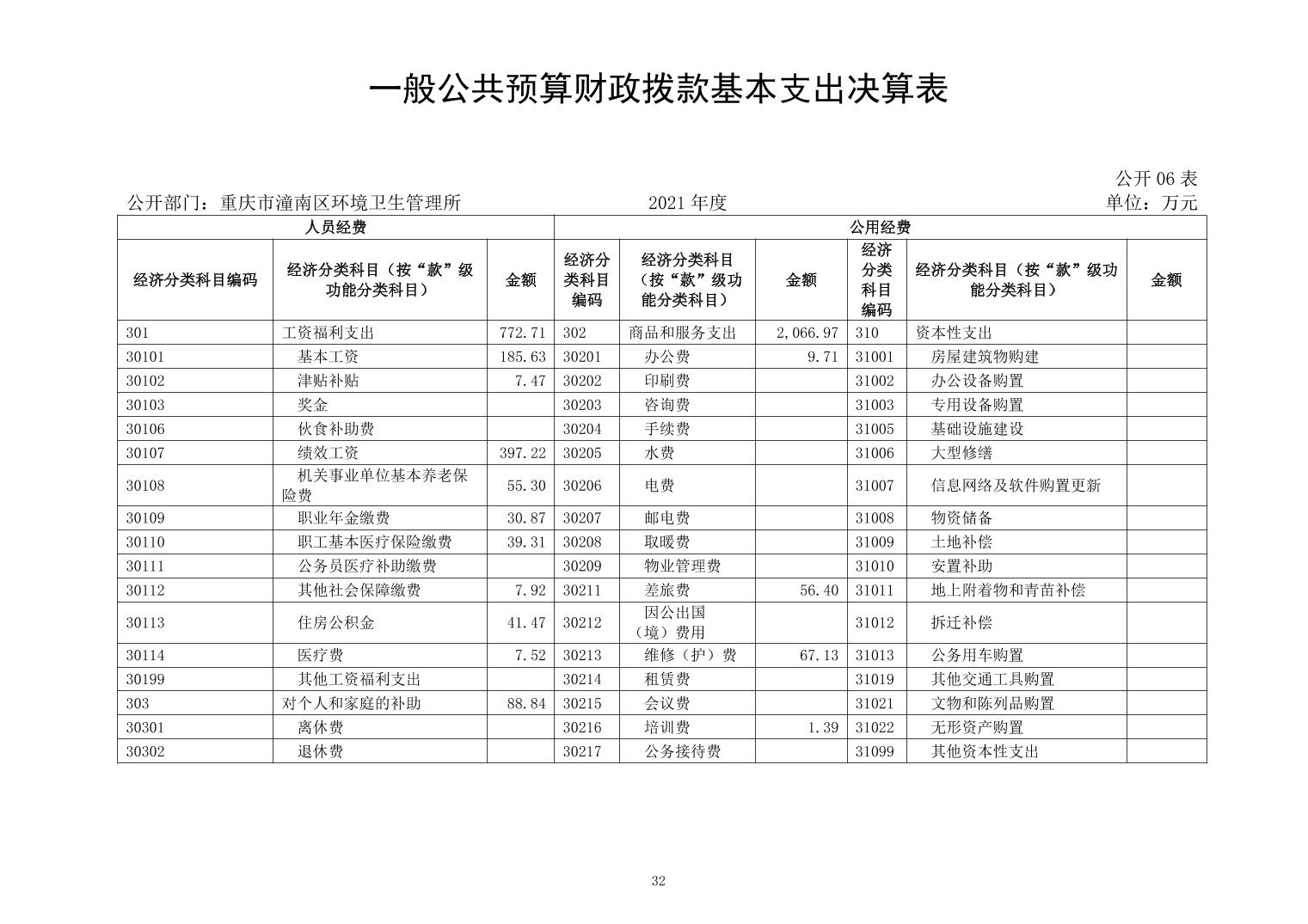 重庆市潼南区环境卫生管理所2021年度部门决算公开